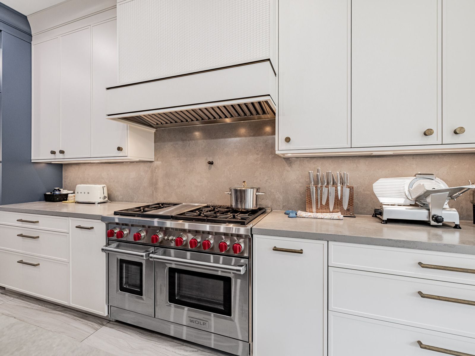 • Chef’s kitchen with high-end appliances and a bright eat-in area.