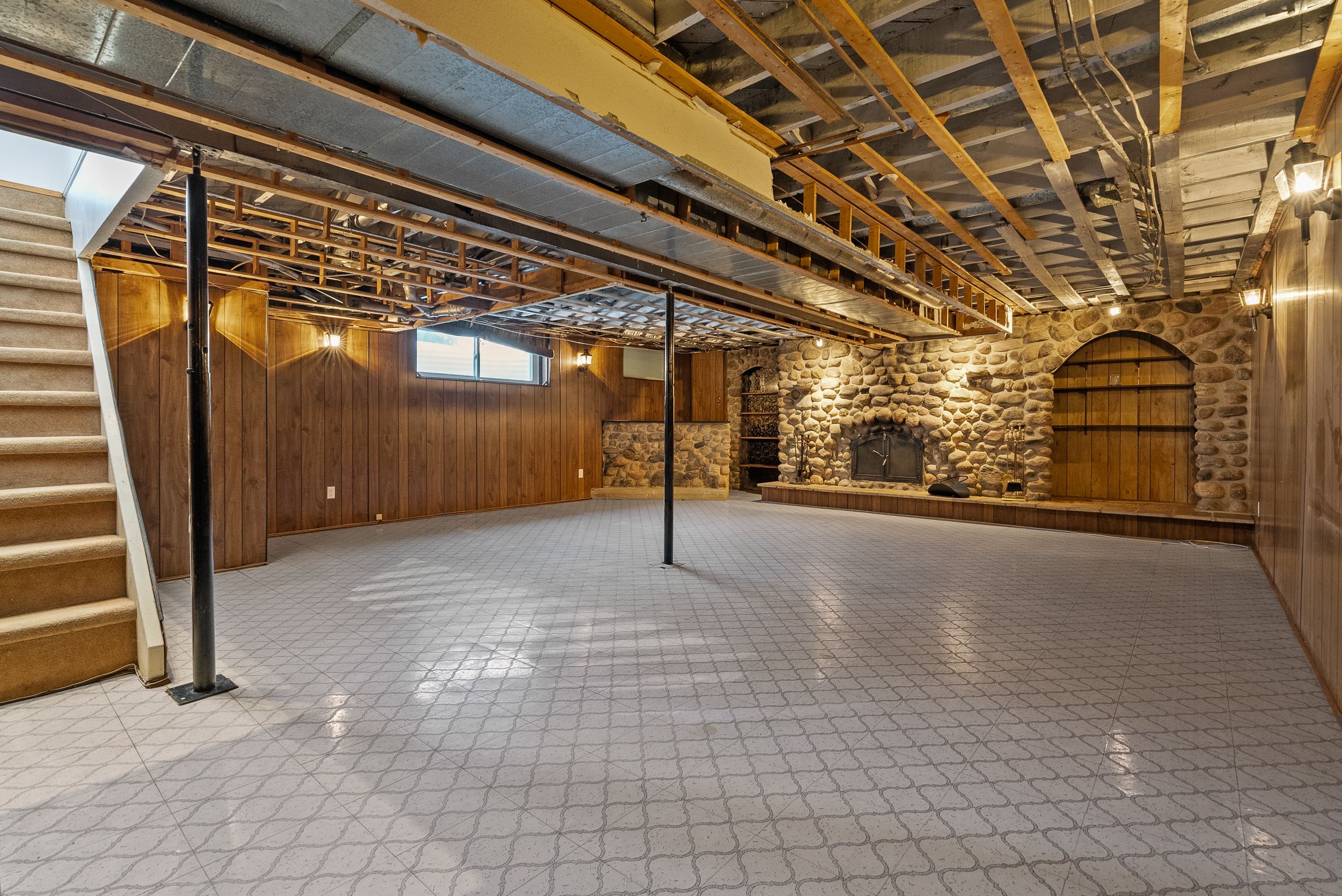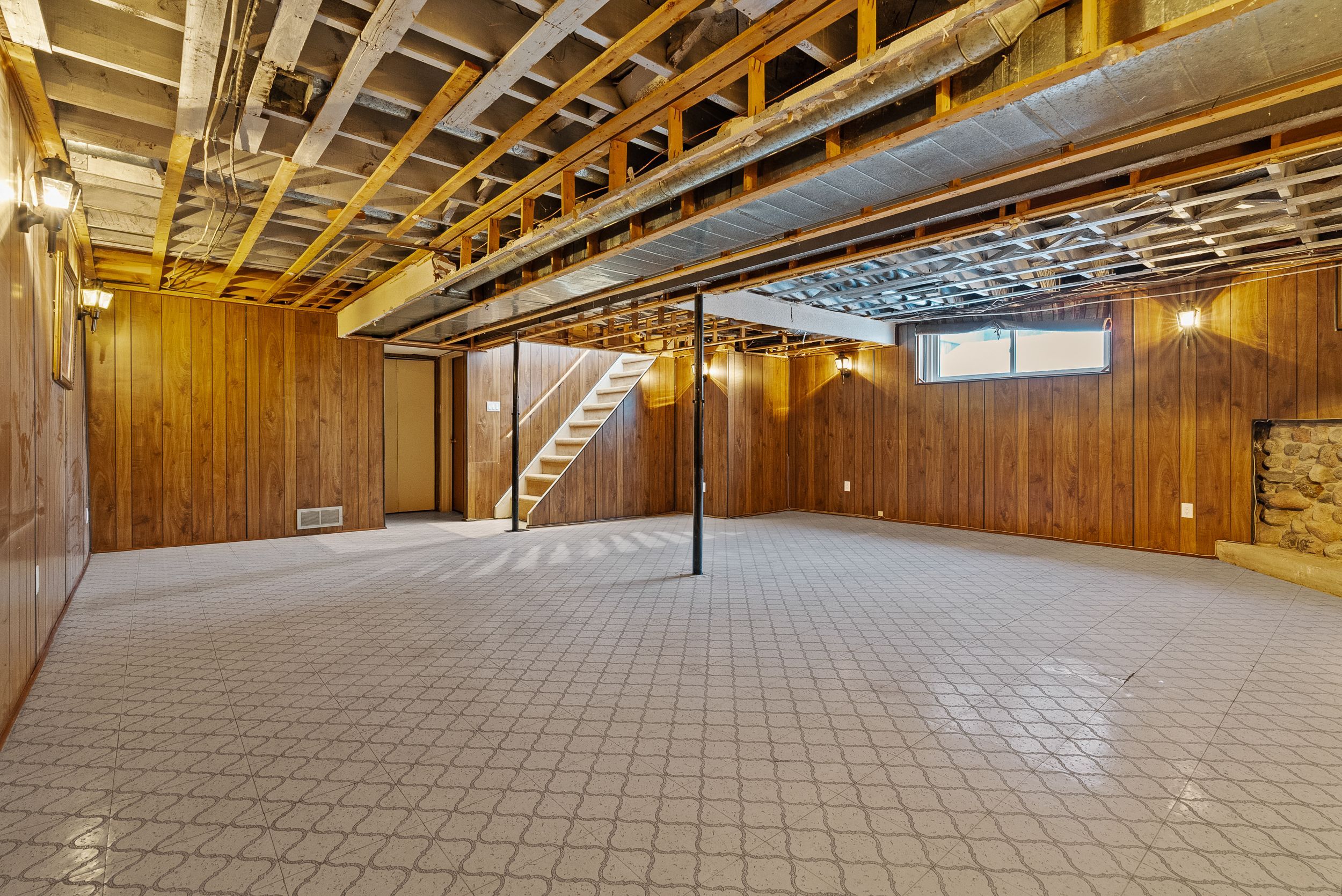 • Basement offers potential for an extra bedroom and family room with fireplace.