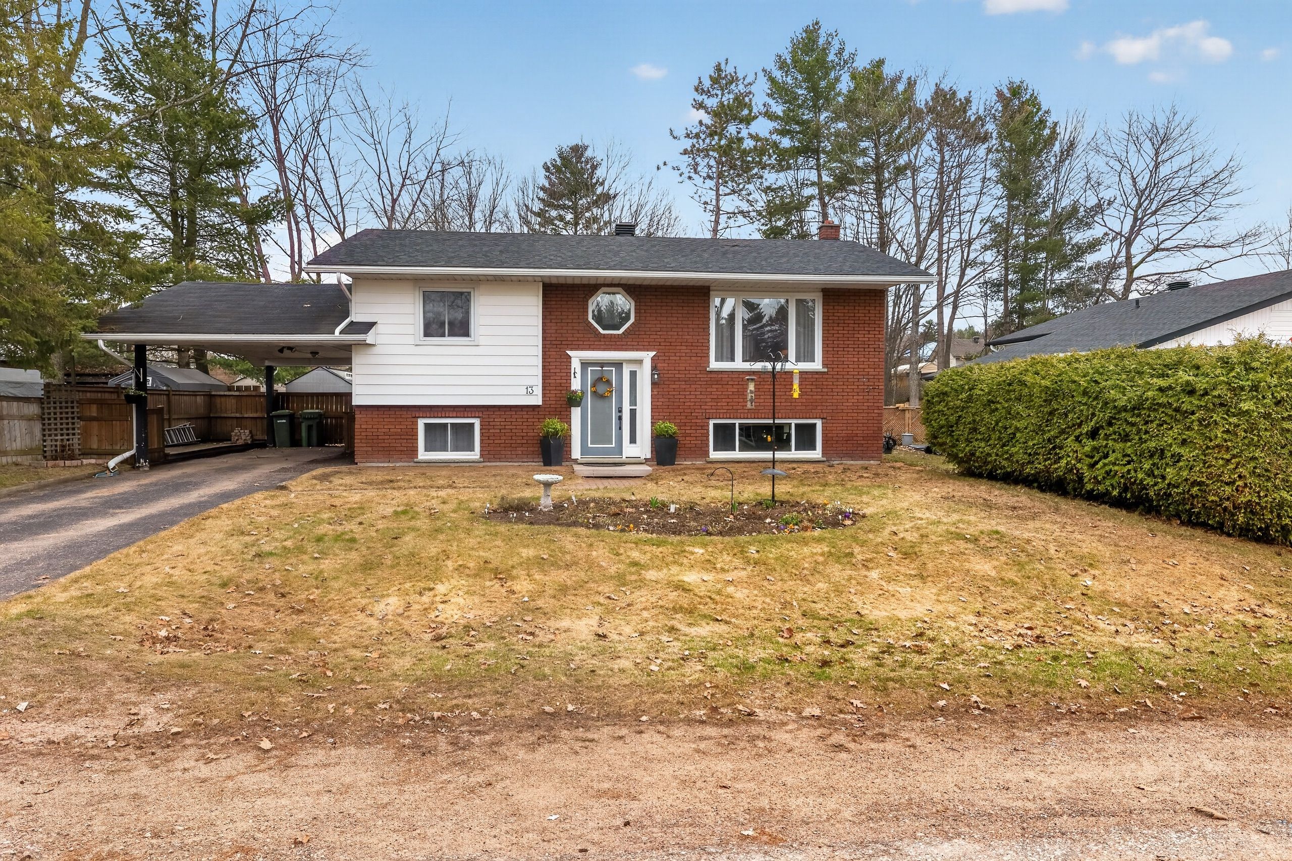 Set just steps from the sandy shoreline of petawawa point beach, 13 point crescent places you in the heart of the sought-after petawawa point lifestyle, where sunrise paddles around the islands, sandy beach days, and visits to the nearby dog beach, and casting a line for a walleye or bass at the meeting of the petawawa and ottawa rivers, are part of everyday living. All within walking distance of parks, nature trails, and the boat launch to ottawa river for miles and miles of scenic boating. Inside, this charming two bedroom, two bathroom home offers just the right balance of comfort and privacy for guests or flexible living. A formal dining area perfect for hosting family and friends, bright kitchen with loads of cabinetry and a garden door leading directly to the rear deck for easy outdoor enjoyment, upgraded contemporary light fixtures that add a fresh modern touch throughout. Relax into a primary bedroom that comfortably accommodates a king sized bed and includes a walk-in closet. Head down to a spacious lower level recroom all kept warm and inviting by the gas fireplace. The functional layout creates a natural flow between living spaces, bathrooms on both levels adding everyday convenience and the mudroom and laundry area offering practical entry from the carport that keeps life organized through every season. Set on a deep, private lot, the backyard is ready for year-round enjoyment with a welcoming fire pit area made for campfire evenings under the stars. A charming backyard hobby hut opens the door to creativity and fun, whether imagined as a children's hideaway, hobby studio, quiet reading retreat, or garden escape space. An ideal fit for empty nesters or those starting out, this is a home where comfort, lifestyle, and location come together beautifully in one of petawawa's most loved neighbourhood settings.