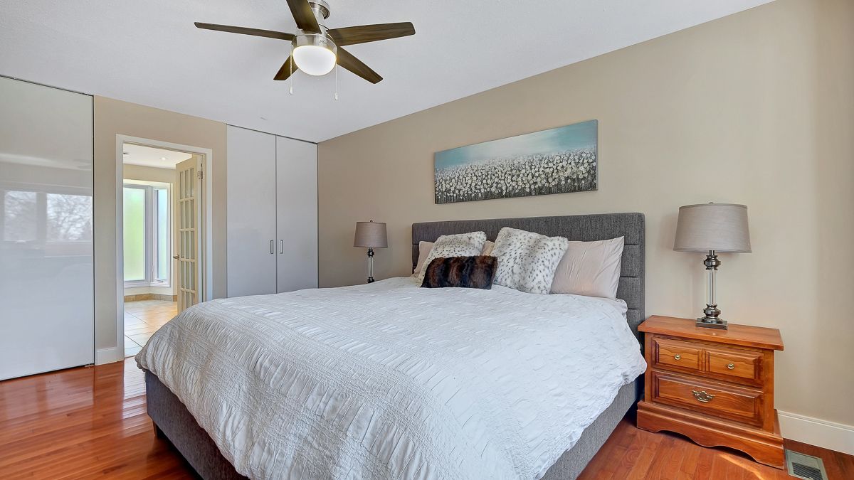 Do not let this opportunity pass you by!! Start with the ideal location at the top of a quiet court - road hockey anyone? It continues up the gorgeous interlock drive & front walkway. Welcome to this meticously maintained and updated family home offering a bright, functional layout and inviting living spaces throughout. The main floor features a spacious living room with a beautiful bright bay window, rich harwood floors continue through the elegant formal dining room. The well appointed kitchen features ample cabinetry, quartz countertops, stainless steel appliances, and a large window overlooking the backyard. A spacious family room with cozy gas fireplace also provides access to the fantastic covered composite deck in the expansive pool sized rear yard. You will love spending time here with friends and family whether chatting on the interlock patio, enjoying a soothing soak in the hot tub or perhaps a spirited game of cornhole! Mature trees and new cedar fence offer extra privacy. Upstairs, you'll find very generously sized bedrooms filled with natural light, including a serene primary suite with a large closet and access to a well-designed bathroom. Additional bedrooms offer flexibility for family, guests, or workspace needs. The lower level provides a huge recreation room ideal for movie nights or hobbies. A very spacious 4th bedroom and new 3 pc bath offers many multi generational choices. Located in a friendly neighbourhood close to parks, schools, shopping, and transit, this home truly is the whole package! Updates include: gas fireplace, hardwood floors and closet doors throughout 2019, hot tub, new windows and doors, new siding, covered porch and composite deck, shower surround and vanity and new shingles 2020, cedar fence, interlock driveway walks and patio, finished basement - rec room, bedroom and 3 pc bath and upgraded attic insulation 2021. Book your private viewing today!