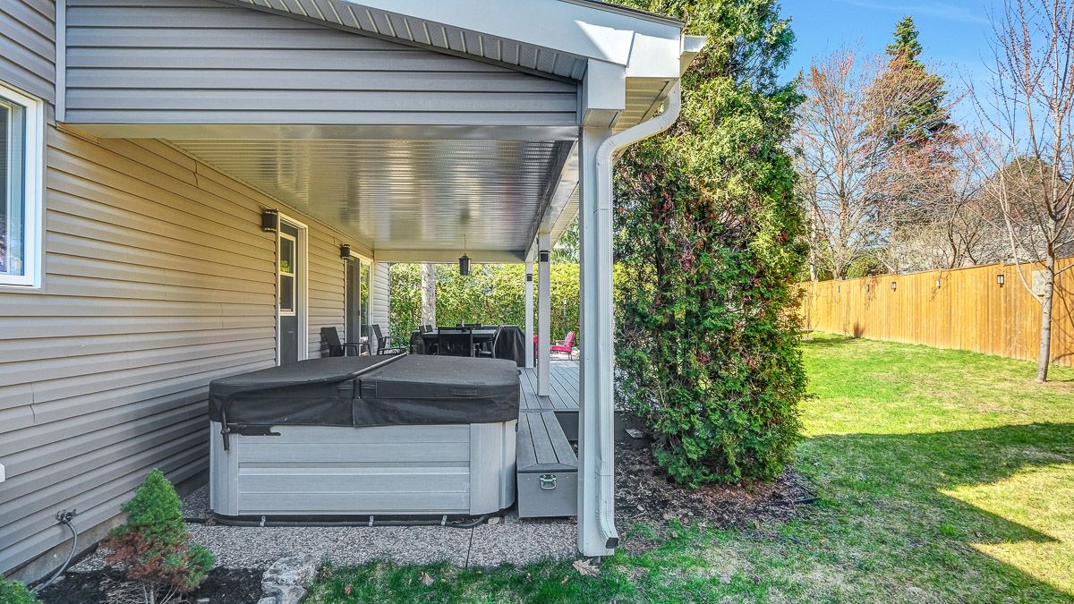 • Expansive pool-sized yard with a covered deck and hot tub for gatherings.