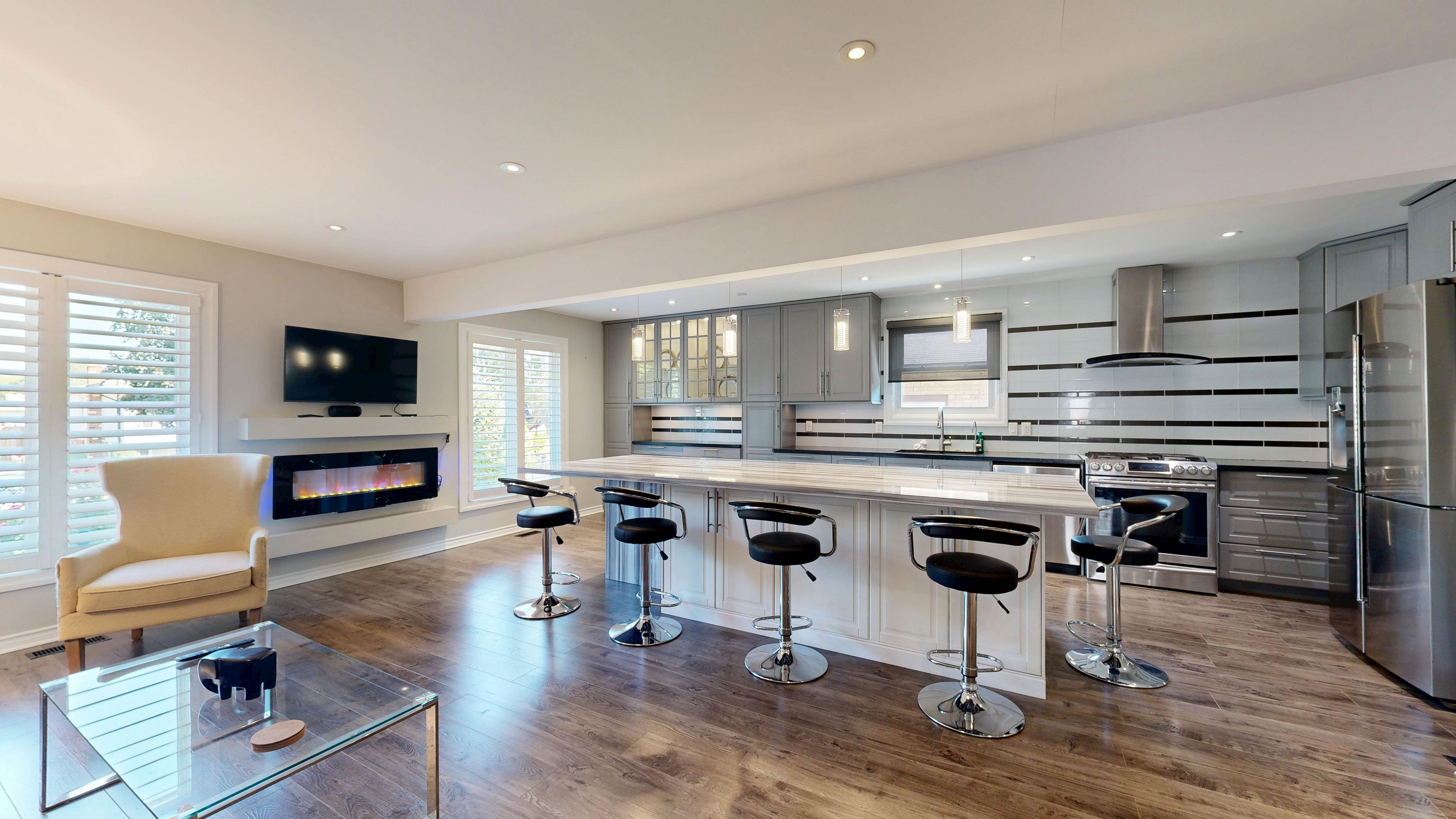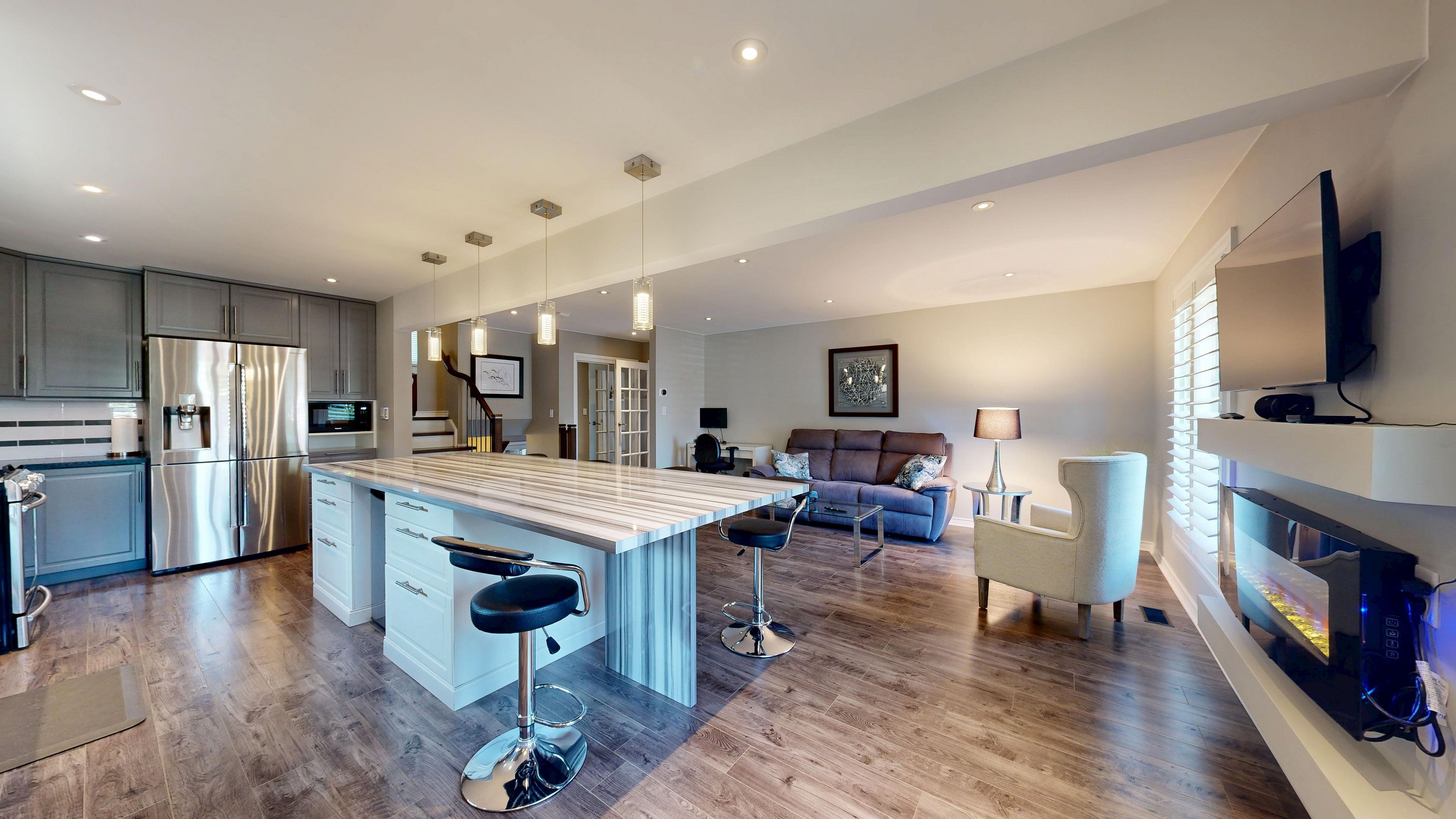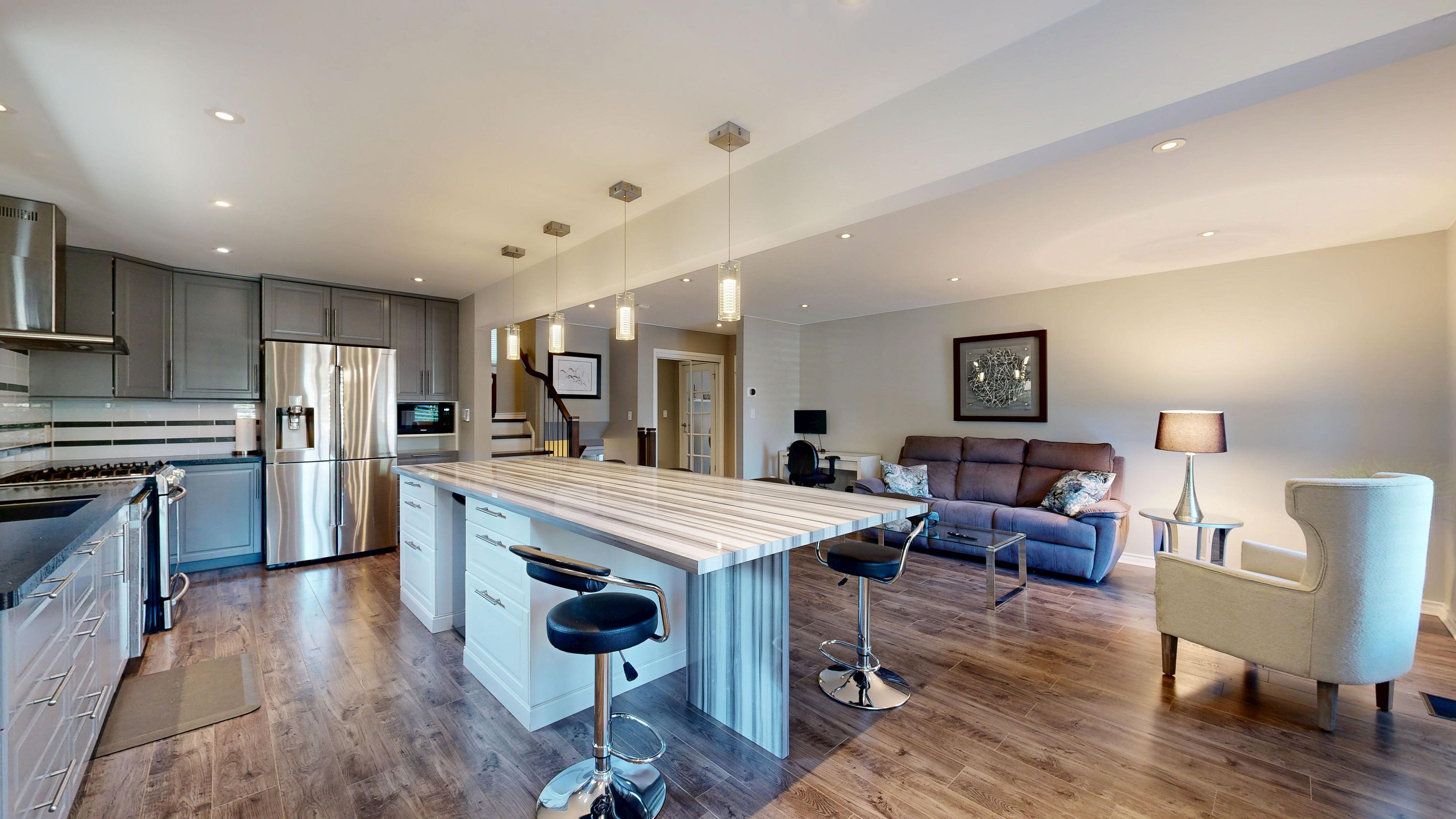 Welcome to 13 rene ln. 2262 sqft (mpac). A beautiful mature area with huge lots and close to the mall. This professionally renovated home comes with many features and is a stunning, impeccably maintained home. Move in and enjoy. Enter the home to a nice big foyer with built in desk and room for boots and things. The entrance then leads into the family room/ kitchen/ dining room that's all open concept & is perfect for entertaining. The huge chef kitchen comes with plenty of cabinetry, a huge centre island, a gas stove, b/i dishwasher, reverse osmosis water system, beautiful over the island led lighting & a chef collection 32 cubic ft fridge. Go down the few stairs to the huge living room with a cozy wood burning fireplace with energy efficient insert just a few years old. The basement is finished and has a rec room and an extra bedroom perfect for the teen retreat and even has its own separate entrance for them to sneak home. The bathrooms are gorgeous!! Enjoy the main spa like water feature in the main bath. Then there's the entertaining area in the back yard built by a professional home builder this outdoor entertaining area is the main gathering place for parties or outdoor naps. Must be seen. The back yard is huge, fully fenced and will easily fit an inground pool. The state of the art inground irrigation system keeps the grass and gardens looking beautiful all year round. Air conditioning replaced summer 2025. This home has been upgraded beautifully and is a wonderful family home. Come see for yourself. Even the driveway is just a few years old. Cement edged garden to keep the weeds out and bring beauty in the front. Even the inside of the garage is awesome!! This home is a must see home to fully understand how truly beautiful it is. Love where you live!