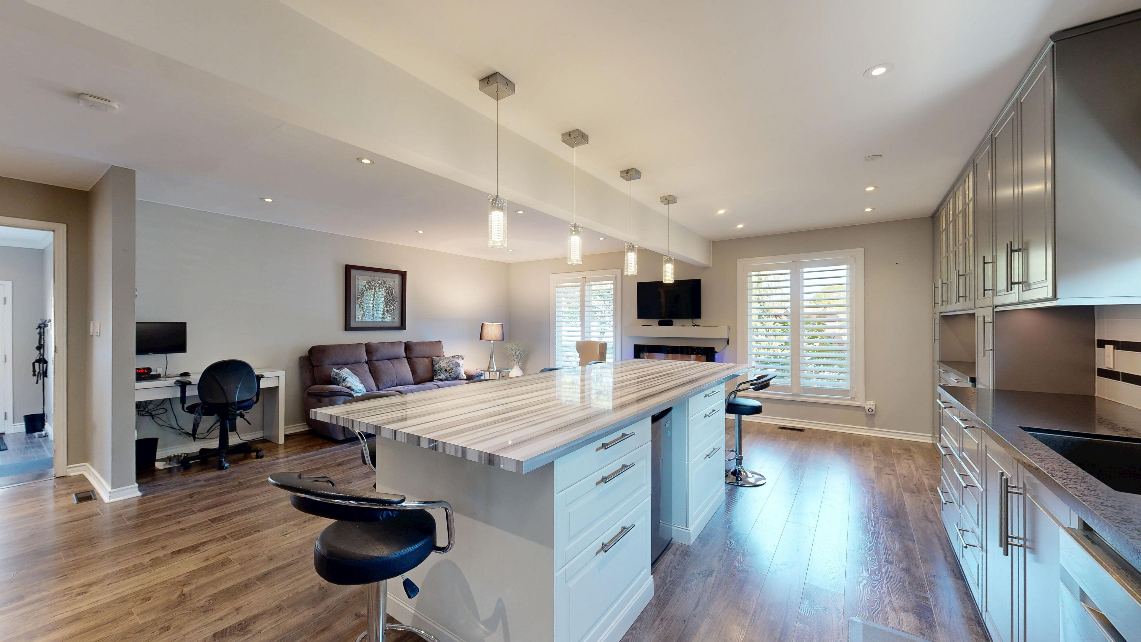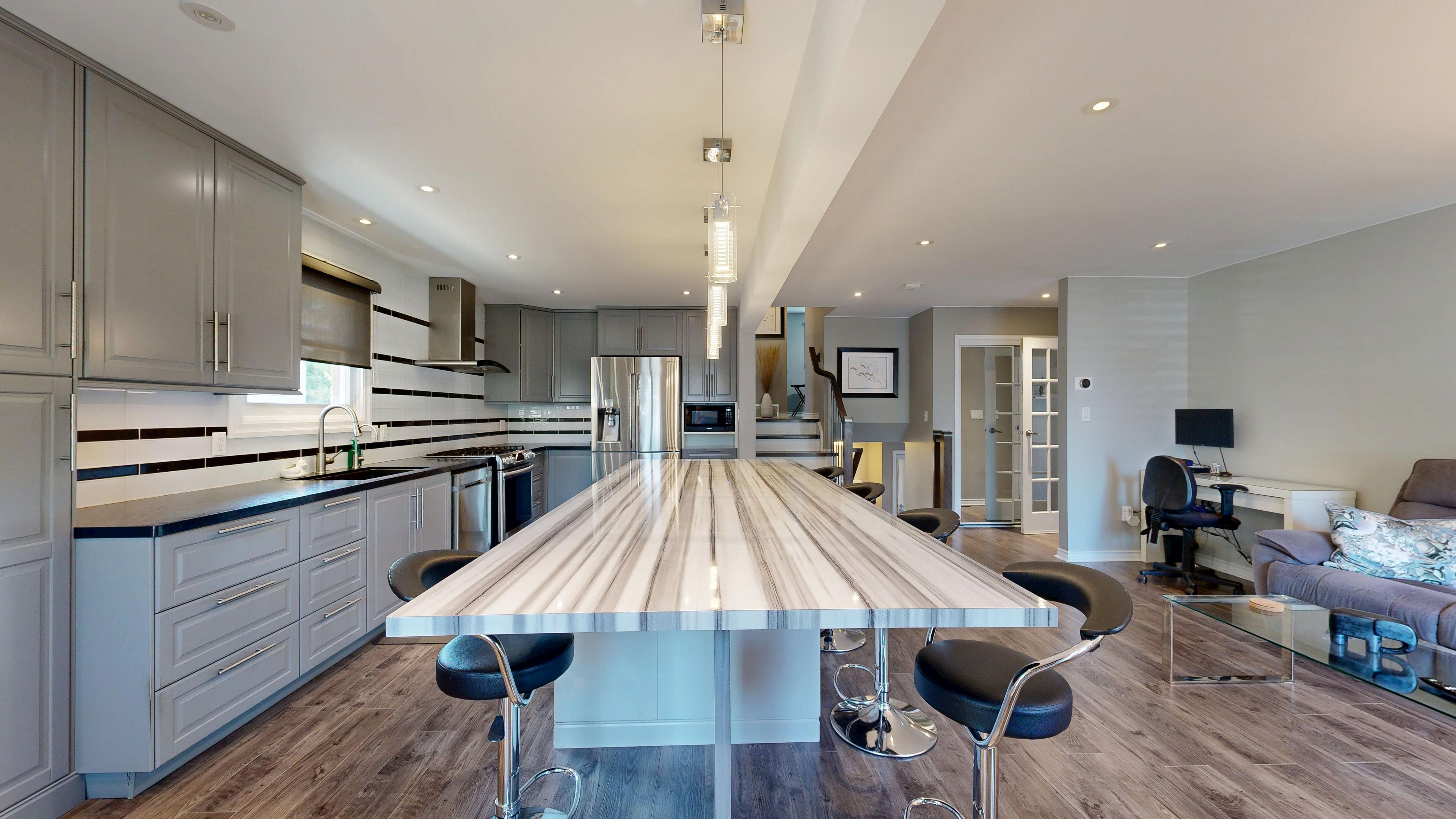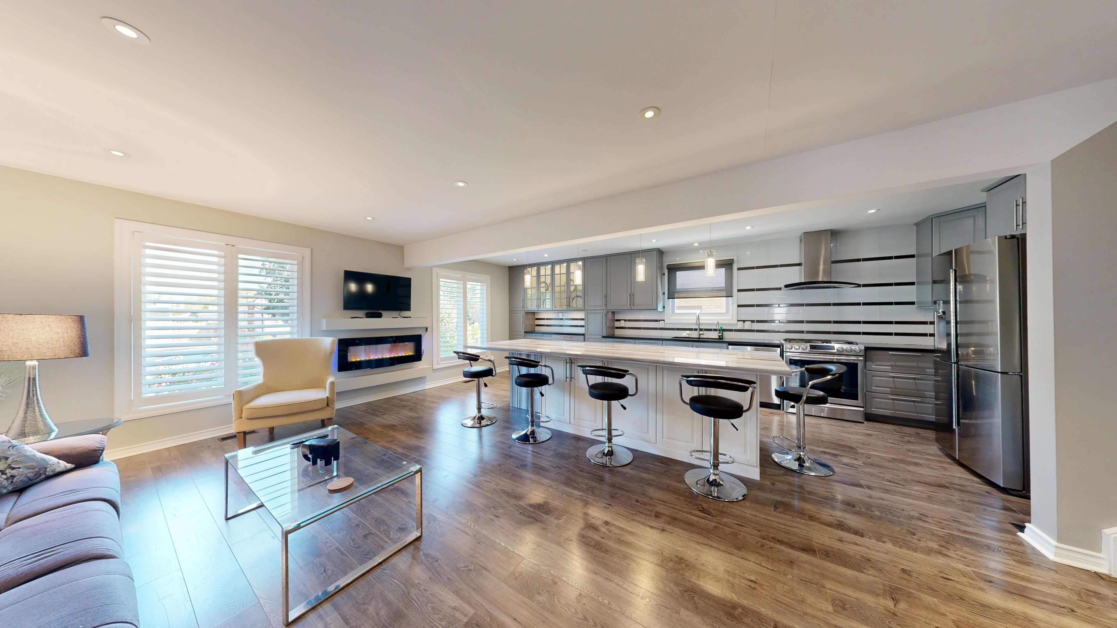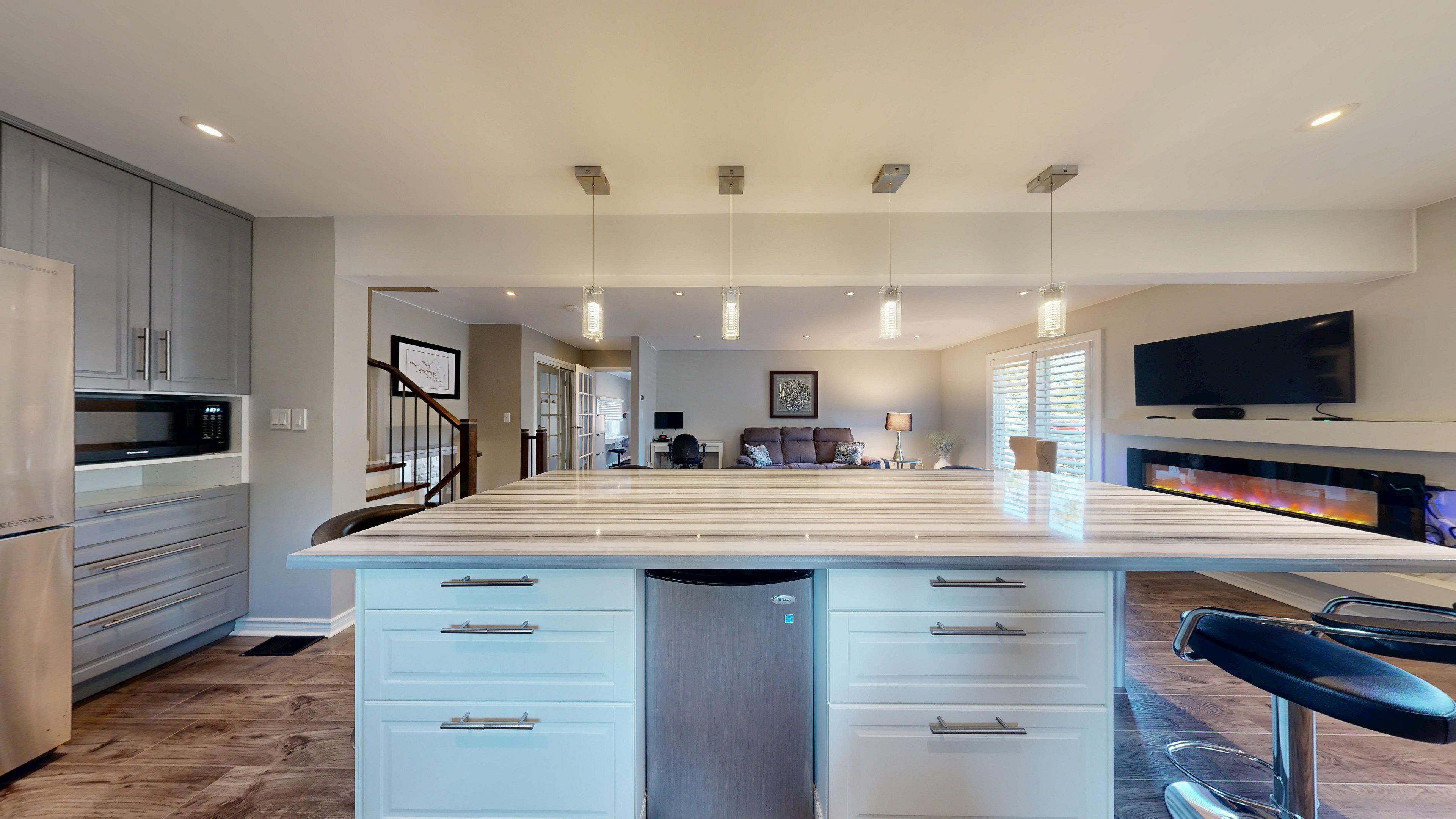 Welcome to 13 rene ln. 2262 sqft (mpac). A beautiful mature area with huge lots and close to the mall. This professionally renovated home comes with many features and is a stunning, impeccably maintained home. Move in and enjoy. Enter the home to a nice big foyer with built in desk and room for boots and things. The entrance then leads into the family room/ kitchen/ dining room that's all open concept & is perfect for entertaining. The huge chef kitchen comes with plenty of cabinetry, a huge centre island, a gas stove, b/i dishwasher, reverse osmosis water system, beautiful over the island led lighting & a chef collection 32 cubic ft fridge. Go down the few stairs to the huge living room with a cozy wood burning fireplace with energy efficient insert just a few years old. The basement is finished and has a rec room and an extra bedroom perfect for the teen retreat and even has its own separate entrance for them to sneak home. The bathrooms are gorgeous!! Enjoy the main spa like water feature in the main bath. Then there's the entertaining area in the back yard built by a professional home builder this outdoor entertaining area is the main gathering place for parties or outdoor naps. Must be seen. The back yard is huge, fully fenced and will easily fit an inground pool. The state of the art inground irrigation system keeps the grass and gardens looking beautiful all year round. Air conditioning replaced summer 2025. This home has been upgraded beautifully and is a wonderful family home. Come see for yourself. Even the driveway is just a few years old. Cement edged garden to keep the weeds out and bring beauty in the front. Even the inside of the garage is awesome!! This home is a must see home to fully understand how truly beautiful it is. Love where you live!