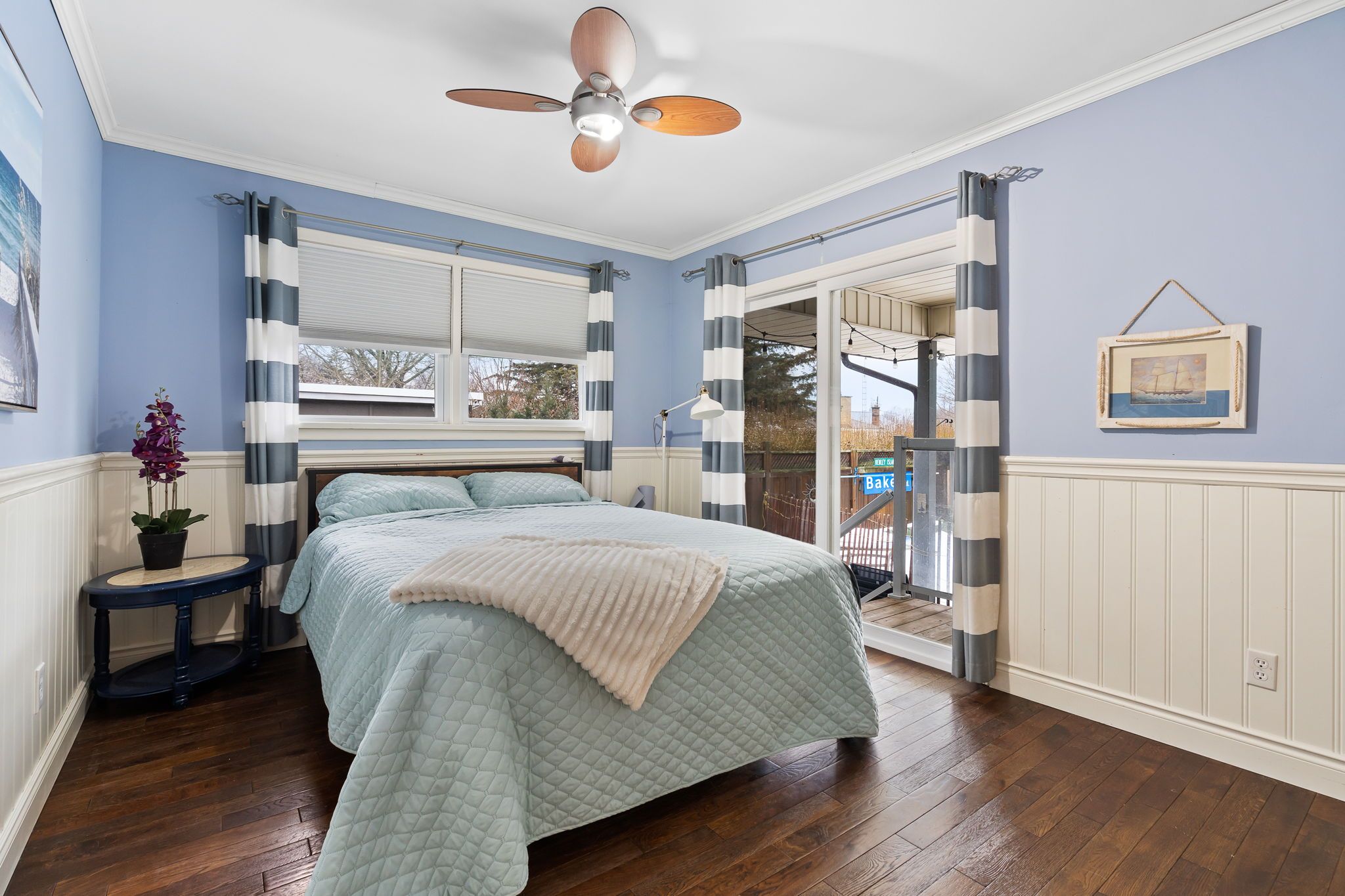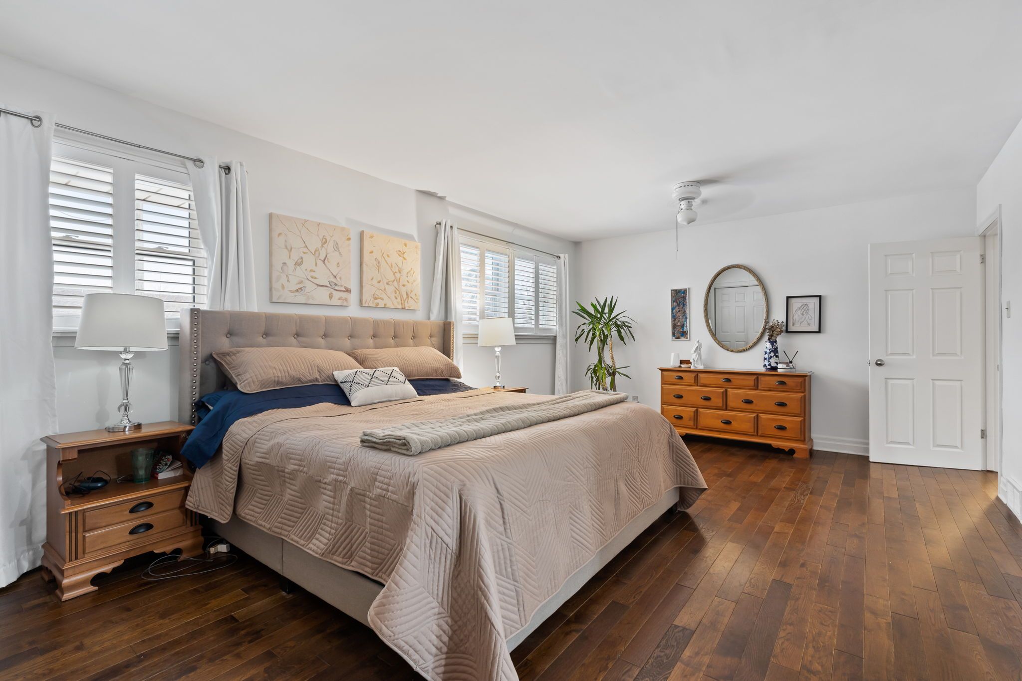 • Bright interior with hardwood floors and large windows for natural light.