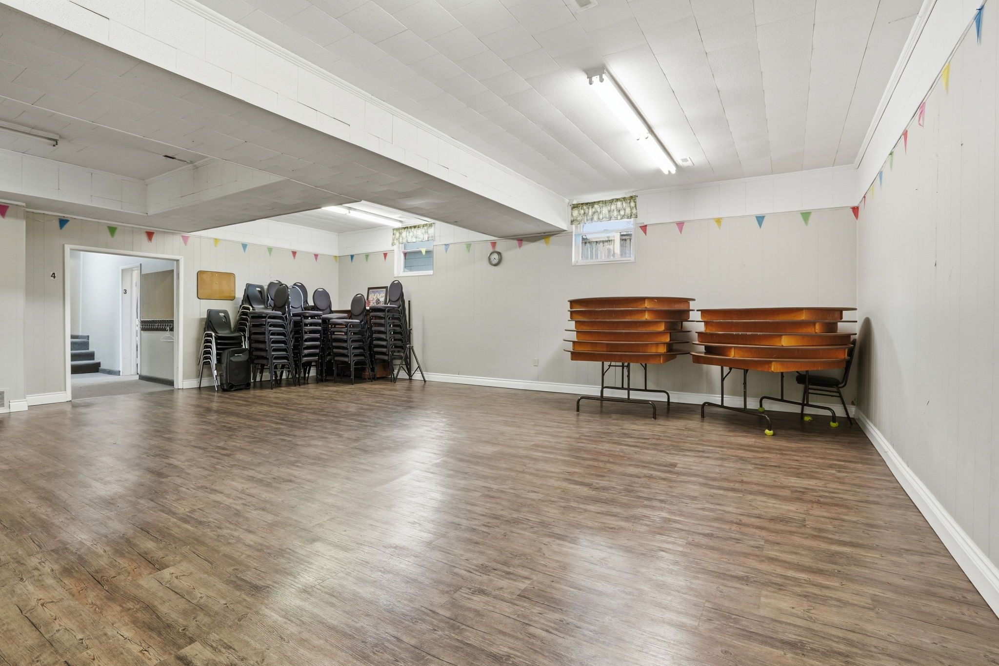 Permissible uses allow for a wide variety of commercial applications, including office space, community-oriented uses, and the potential for multiple commercial rental configurations, creating a unique opportunity for both investors and end users. Beautifully maintained, solid concrete block church located in hagersville's established northeast neighbourhood, just minutes to parks, arena, and downtown amenities, with convenient access to hamilton, brantford, and highway 403. Set on a 66 x 132 ft serviced lot with some private parking and ample street parking. The bright main level features a spacious sanctuary with hardwood flooring and impressive ceiling height, along with additional meeting space, a boardroom, and an accessible washroom. The finished lower level adds even more flexibility with a fellowship hall, full kitchen, multiple meeting rooms, office space, and additional washrooms. Well maintained, this is a rare and versatile property with excellent potential for a range of future uses.