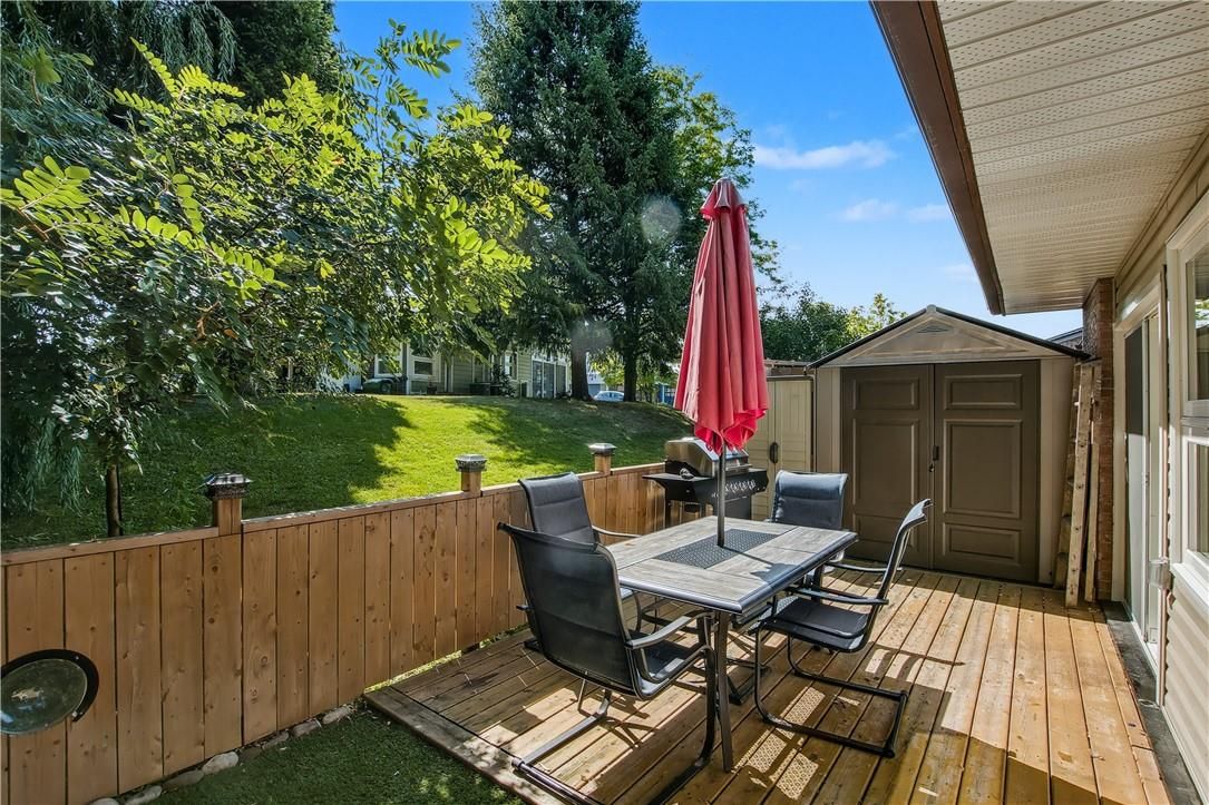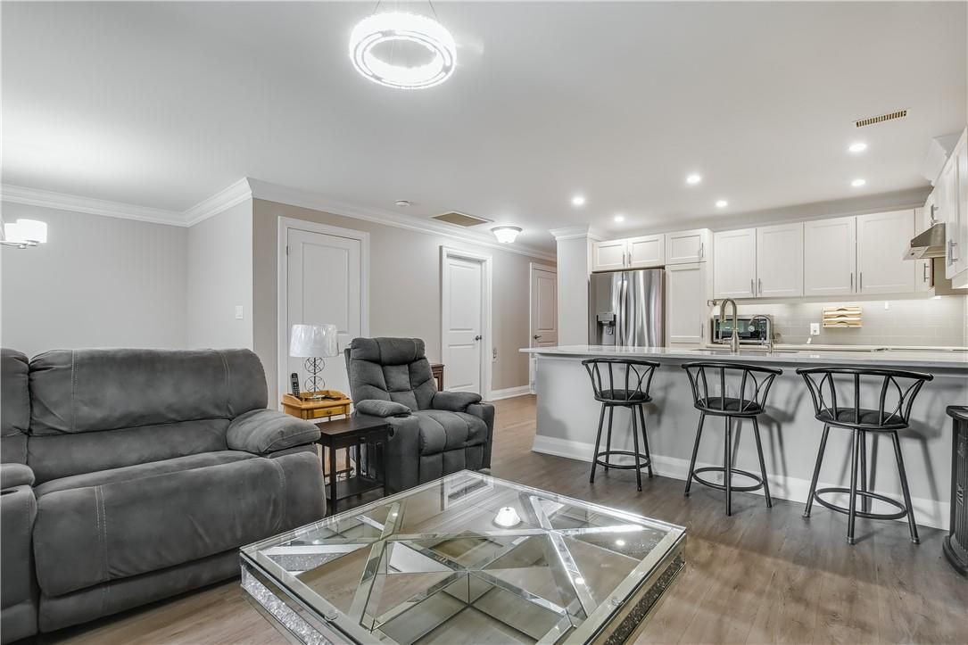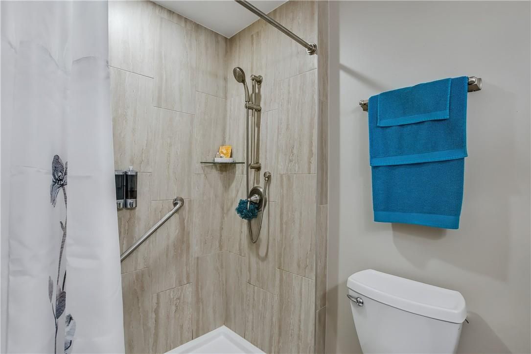 Welcome to st. Elizabeth village - hamilton's premier gated 55+ community! This beautifully renovated 960 sq. Ft. Bungalow offers stylish, carefree one-floor living with no stairs. Inside, you'll find a thoughtfully designed 1-bedroom, 1-bathroom layout featuring a modern bathroom with a walk-in shower-perfect for ease of use and mobility. The open-concept kitchen flows seamlessly into the spacious living and dining area, complete with a large peninsula that seats at least four. It's an ideal setup for entertaining or enjoying your morning coffee with friends. Set beside one of the community's tranquil ponds, this home combines peaceful surroundings with unbeatable convenience. You're just a short stroll from the village's incredible amenities: a heated indoor pool, gym, saunas, hot tub, golf simulator, woodworking shop, stained glass studio, doctor's office, pharmacy, massage clinic, public transit access, and more! Plus, you're only a 5-minute drive to grocery stores, shopping, and restaurants. Move-in ready and perfectly located, this home is a rare opportunity to enjoy the best of maintenance-free living in a community that has it all. Don't miss your chance!