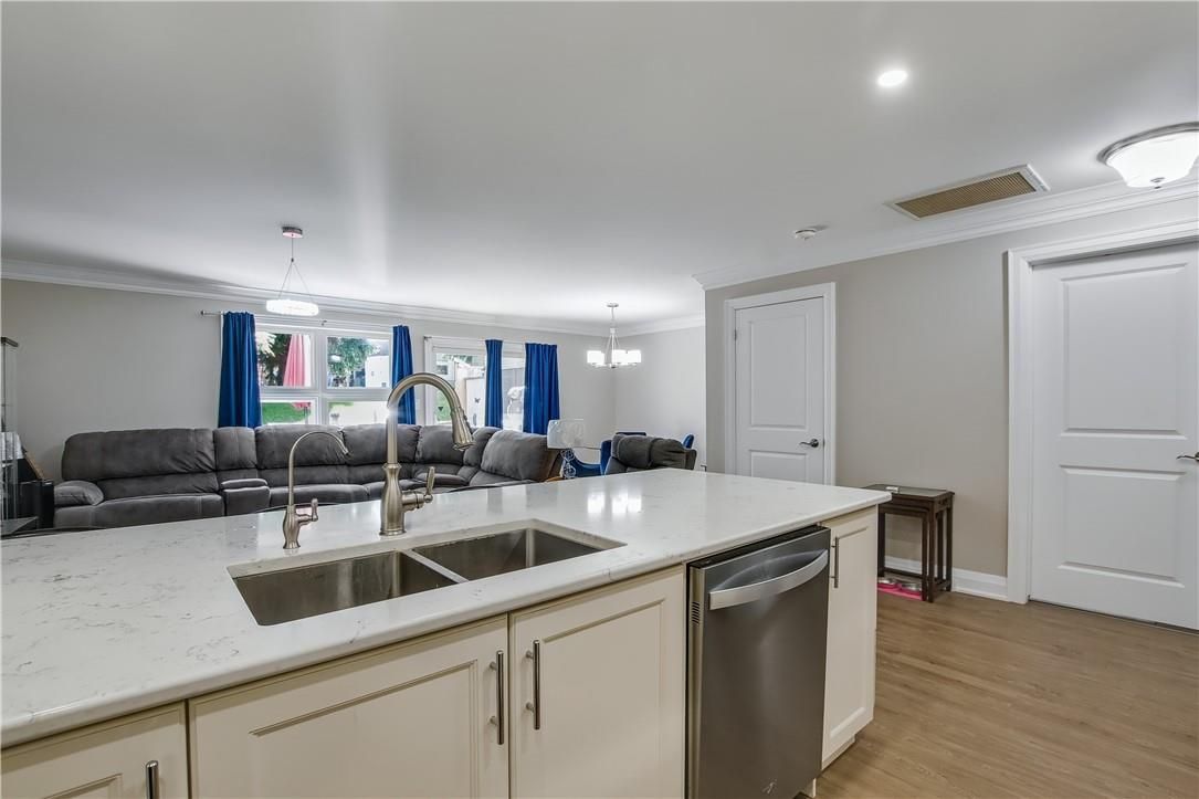 • Open-concept kitchen flows into a spacious living and dining area.