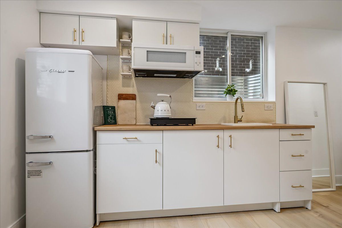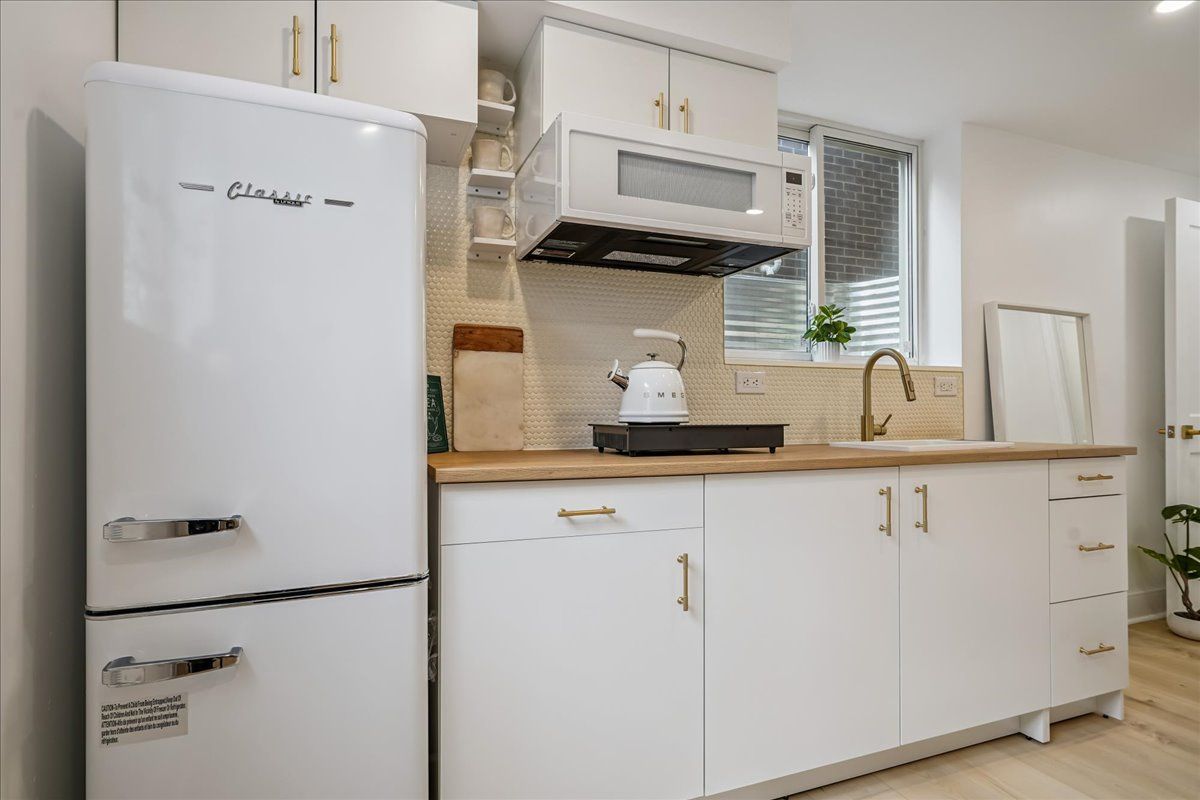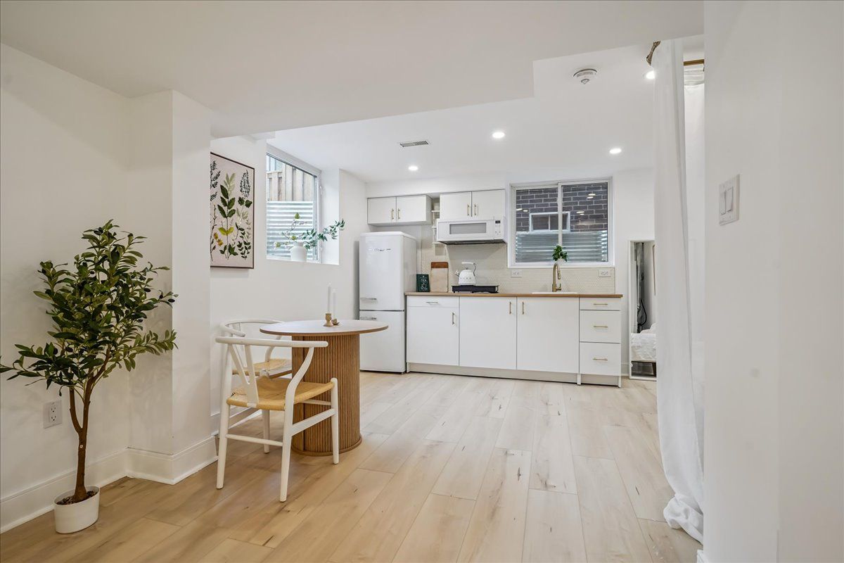 • Private separate entrance and in-suite laundry add convenience.
