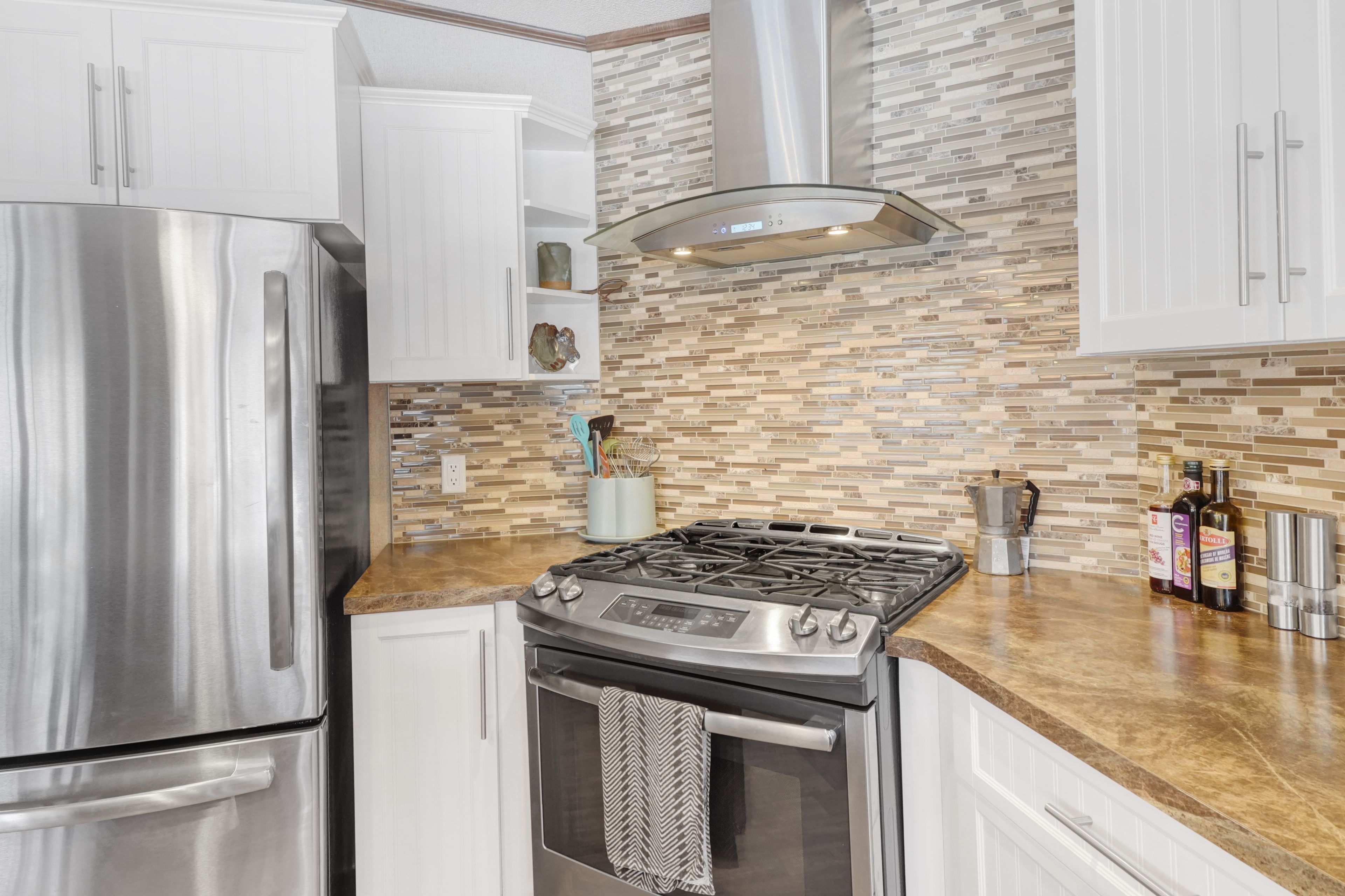• Well-equipped kitchen with modern appliances and large island.