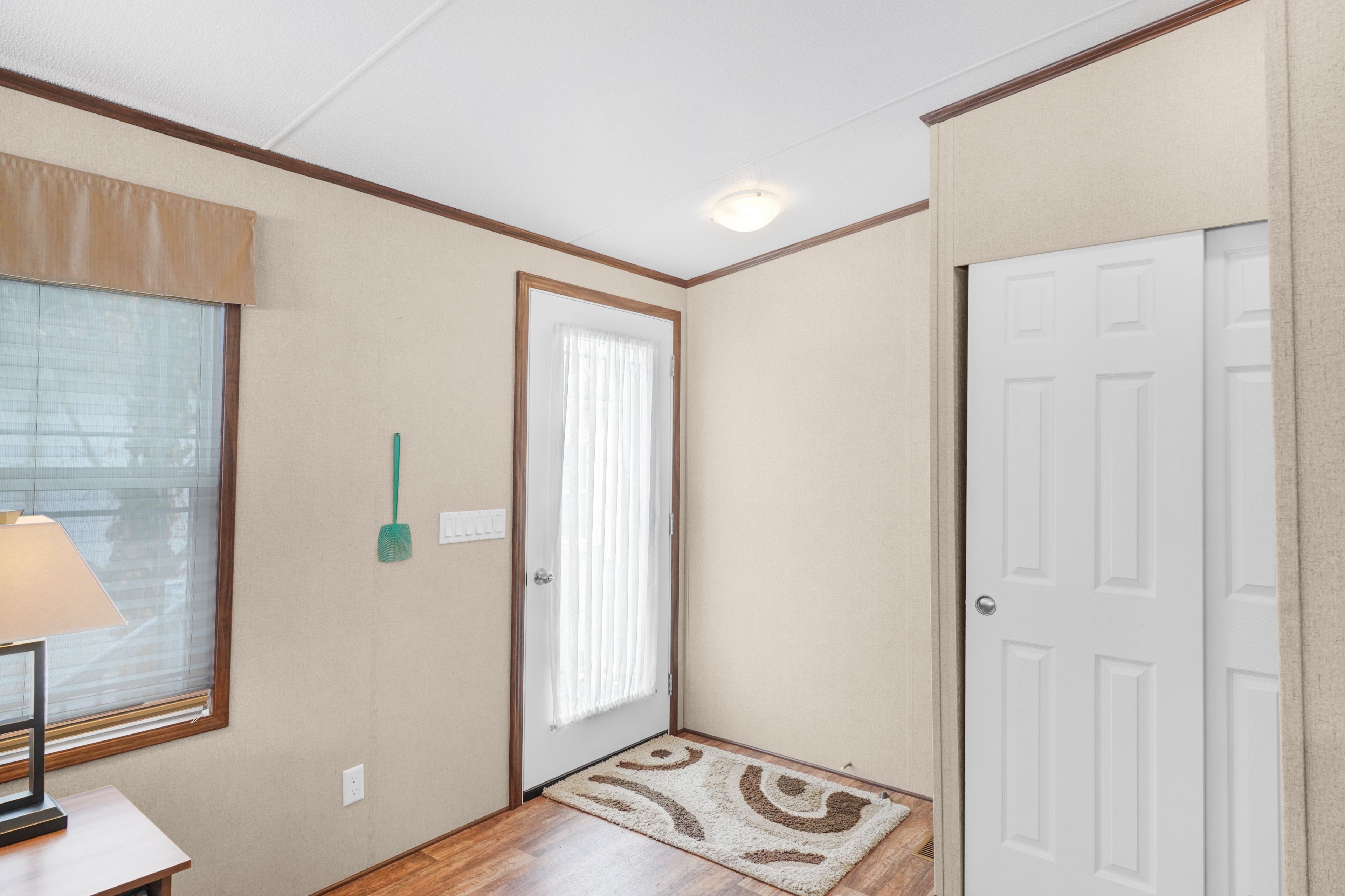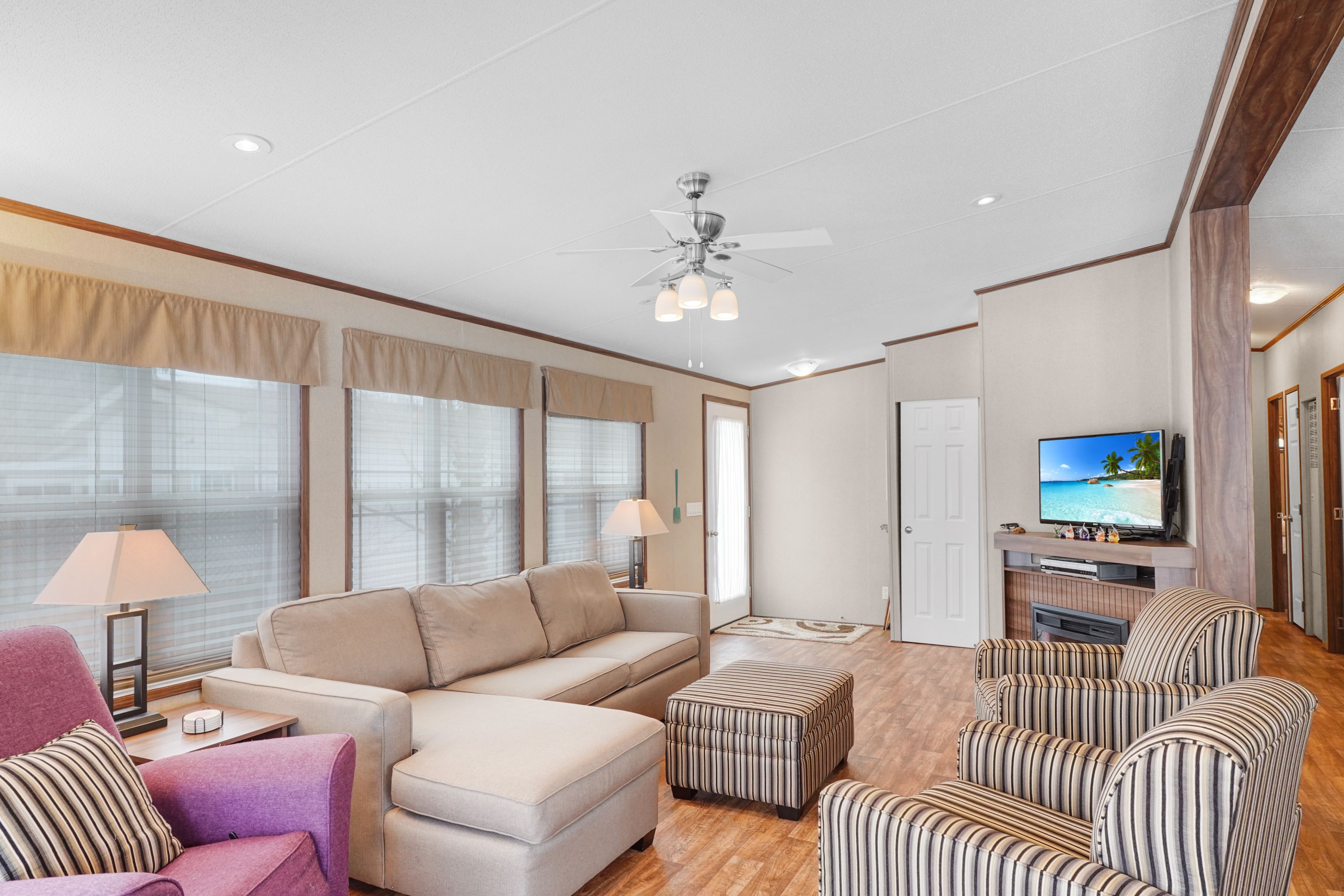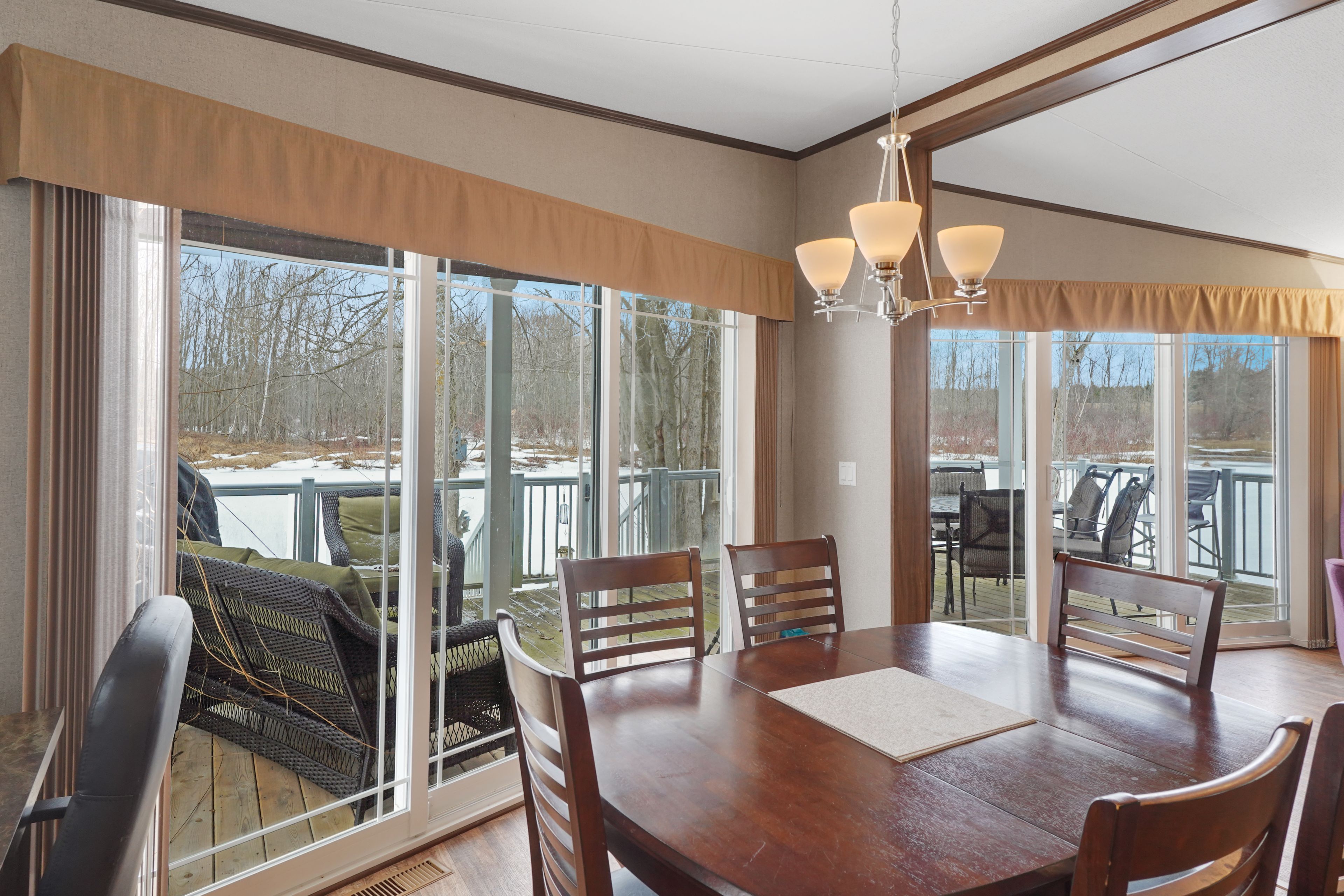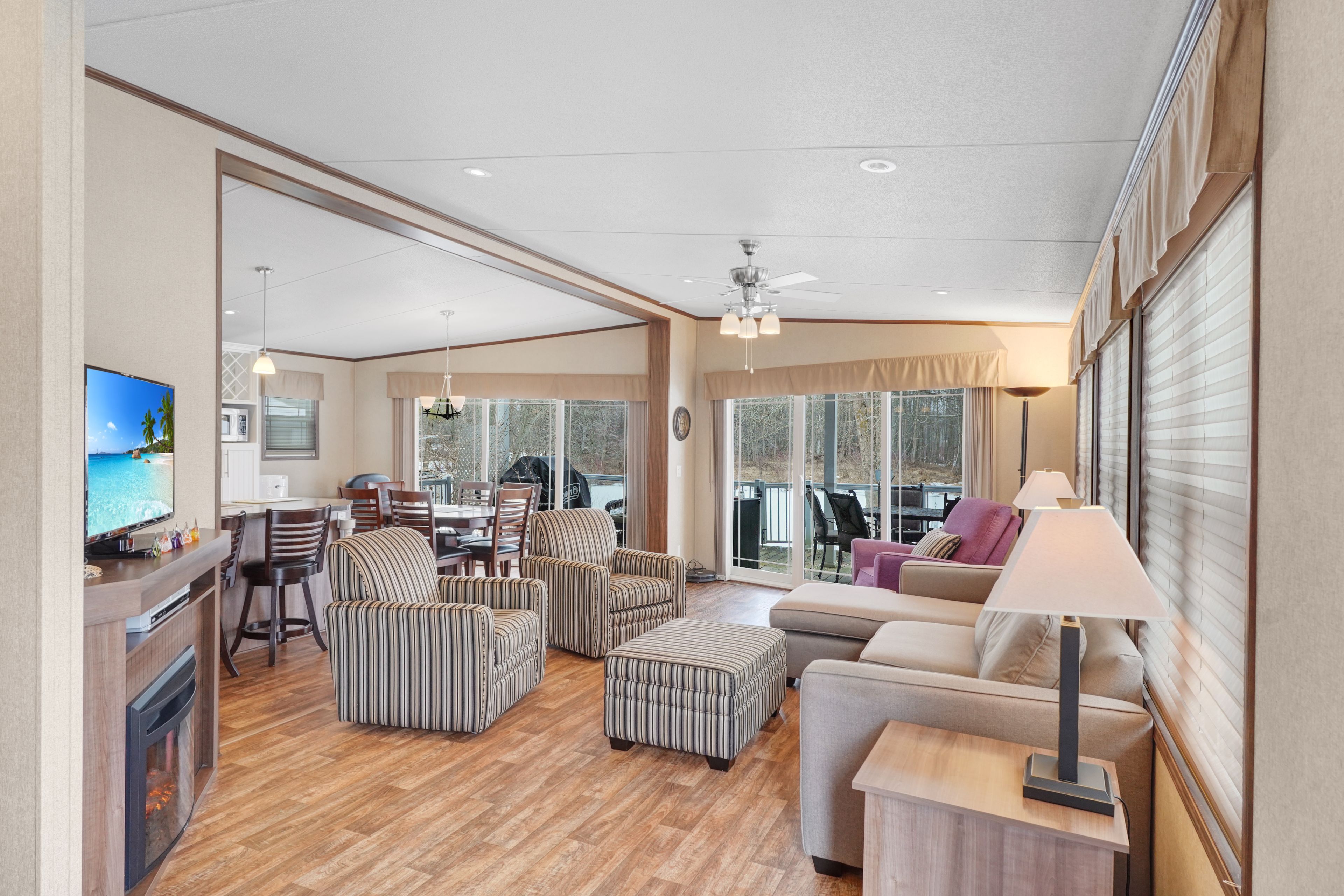 • Bright living area with full-width sliding glass doors and deck.
