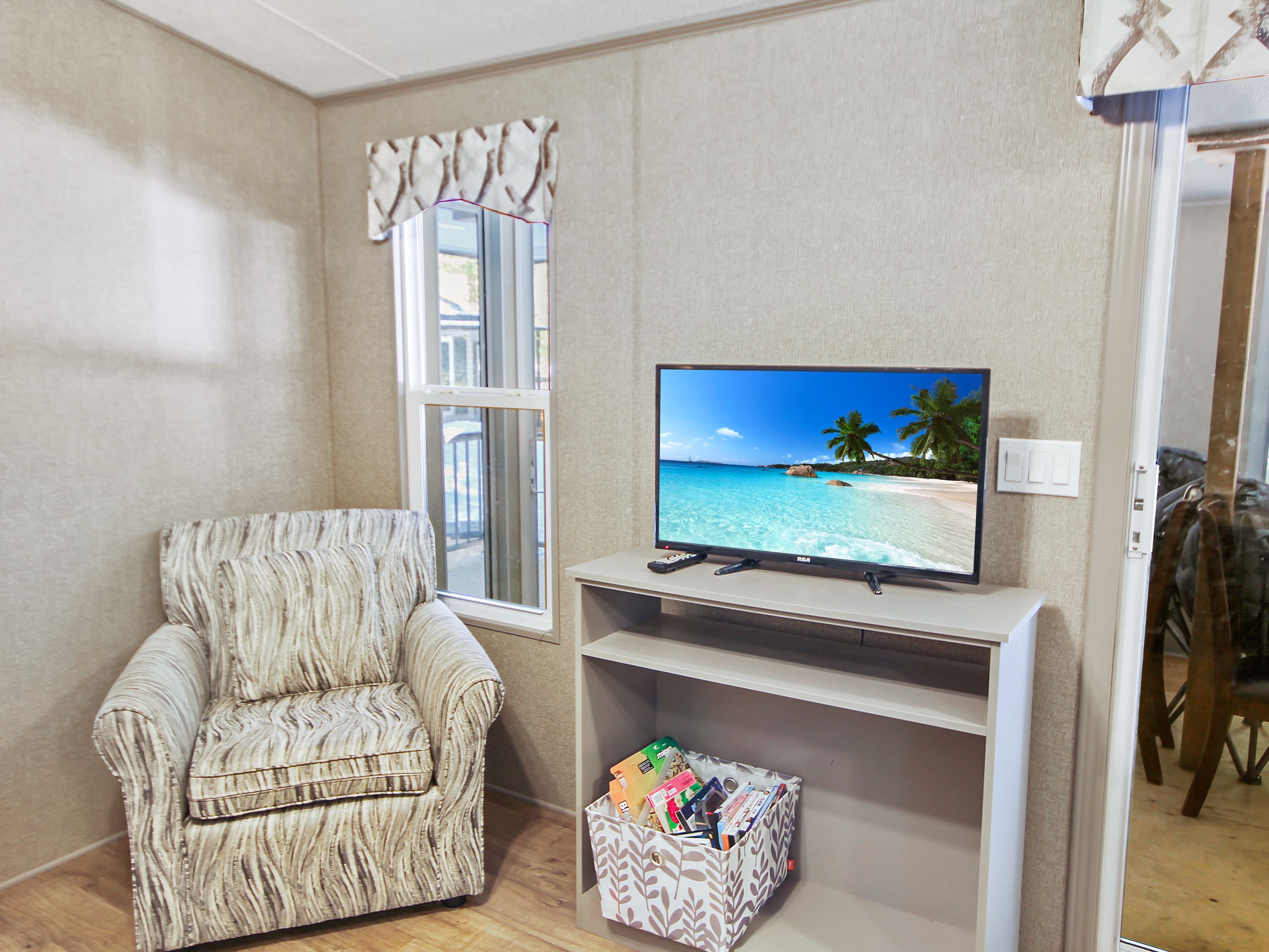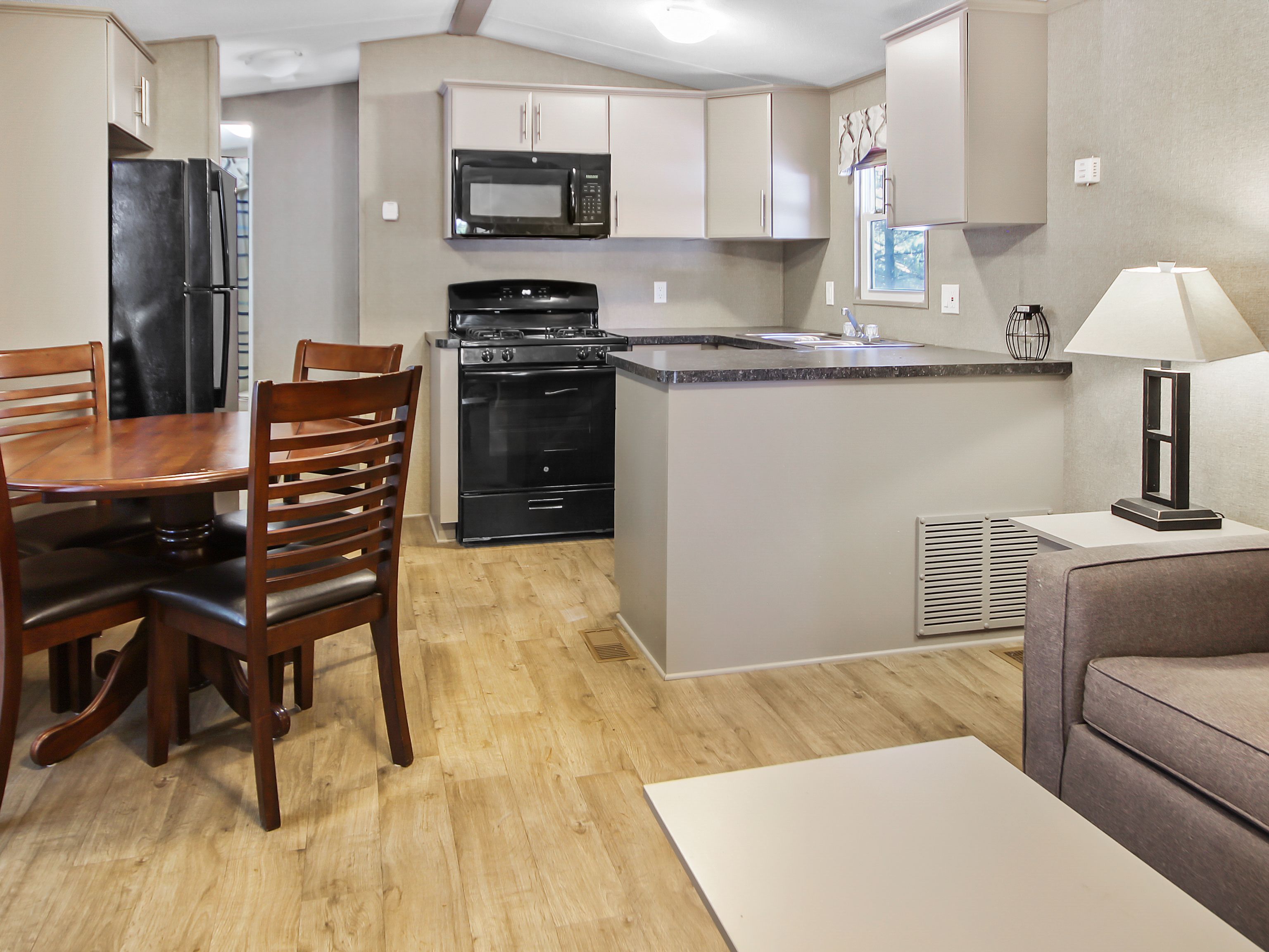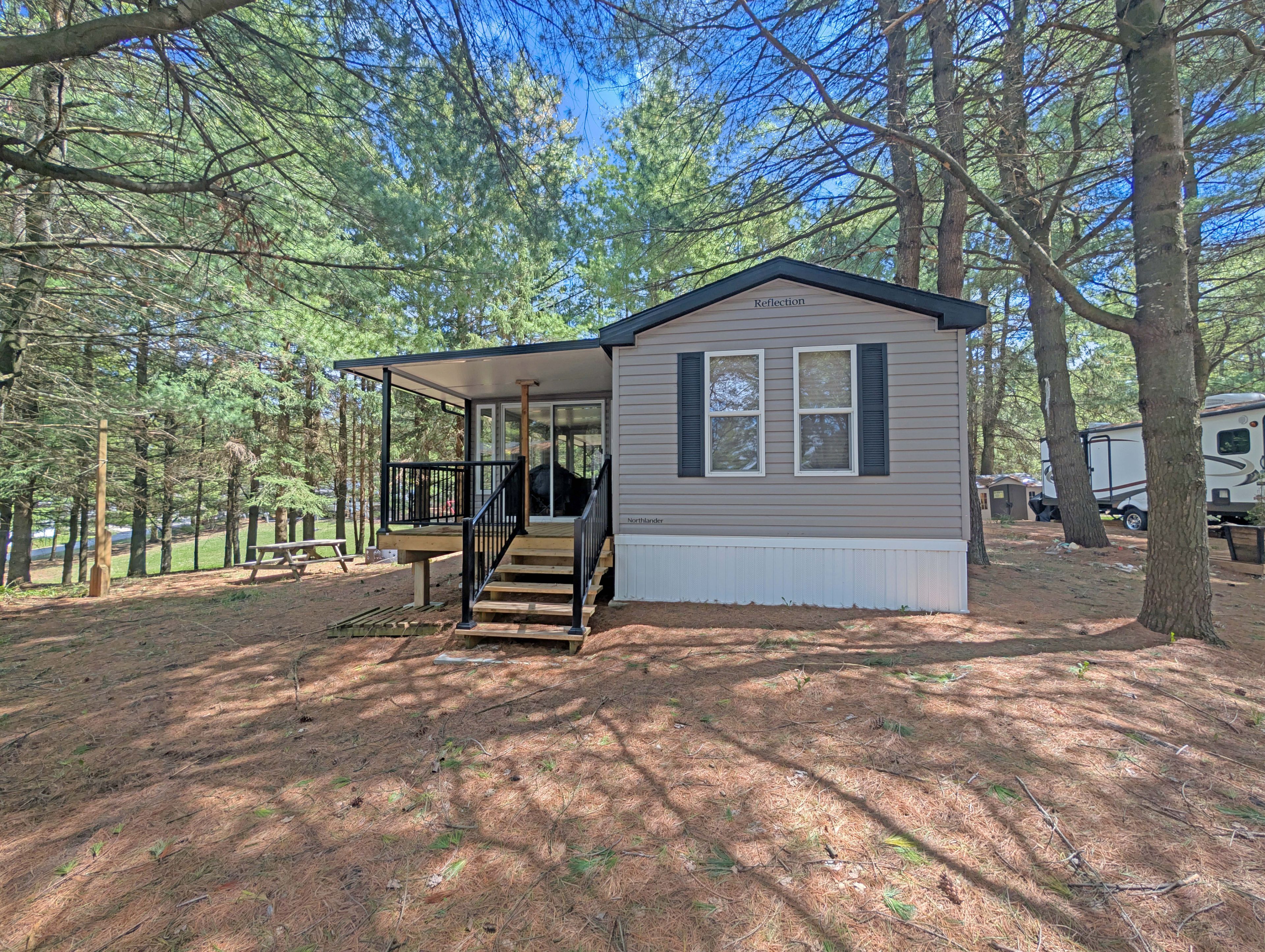 • Well-maintained 2018 park model in a peaceful, wooded setting.