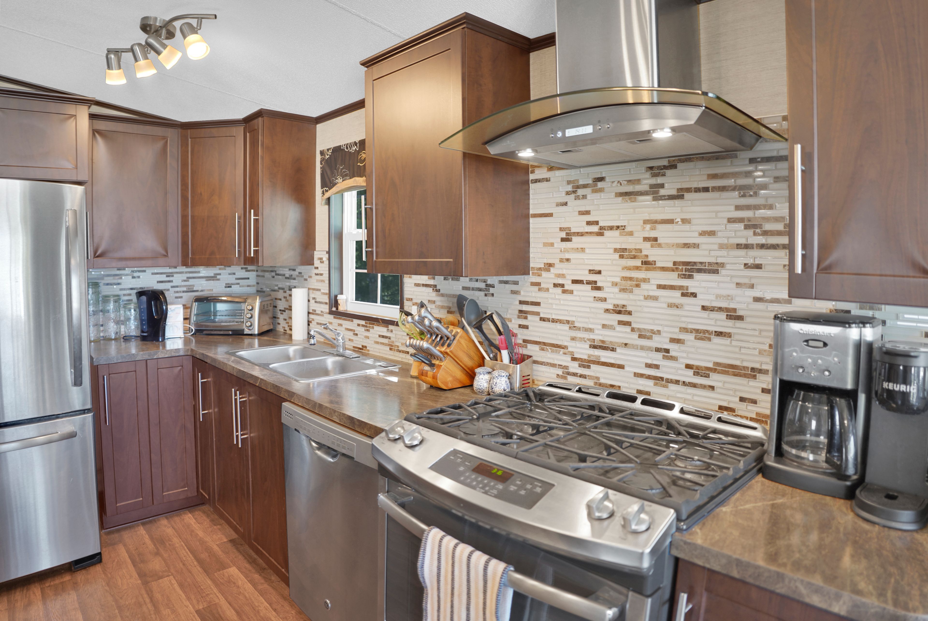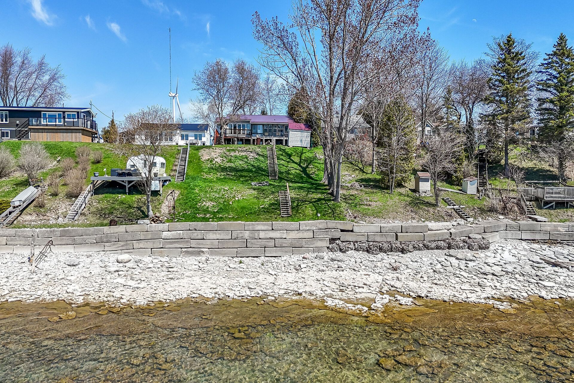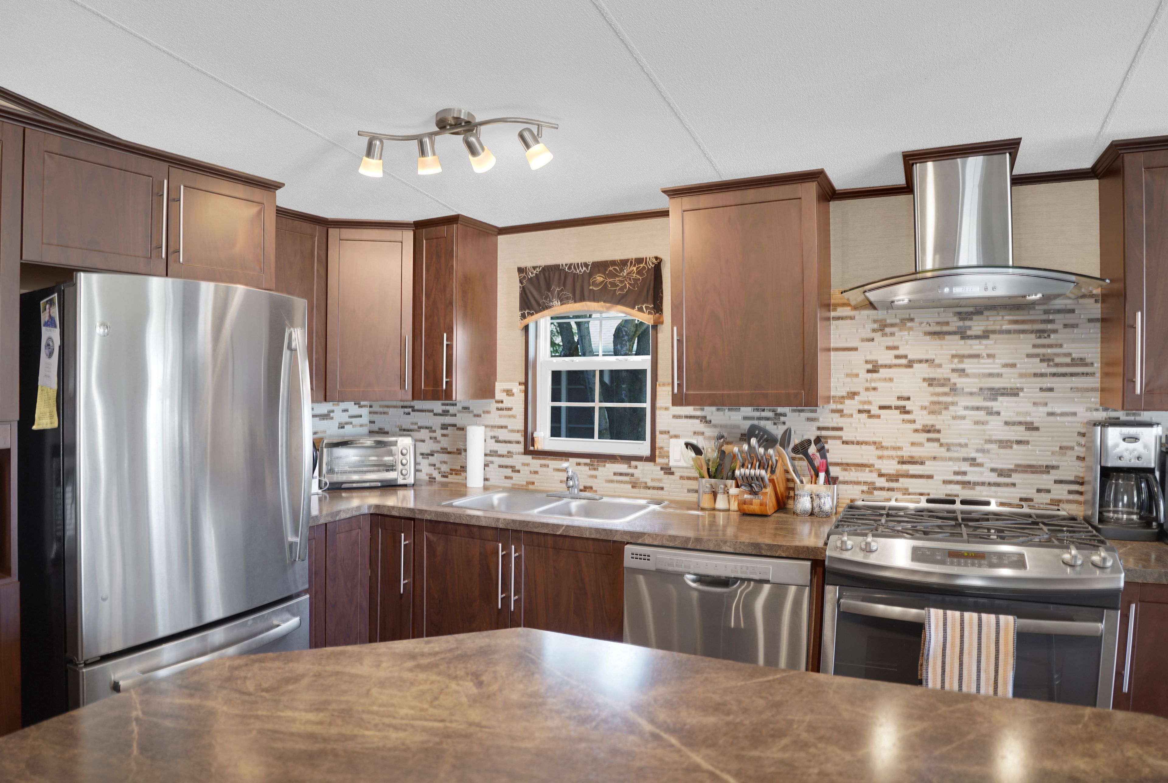 This well maintained two bedroom, one and a half bathroom northlander escape at fisherman's cove offers comfortable, turnkey living in one of bruce county's most popular lakeside communities. The spacious living room features hardwood floors, built in electric fireplace, with a practical mudroom entry complete with built in bench, coat hooks, and shoe storage. The kitchen impresses with dark shaker cabinets, mosaic tile backsplash, stainless steel propane range, dishwasher, french door refrigerator, and a large centre island with seating. The adjacent dining area includes sliding door access to the covered front deck, perfect for summer evenings outdoors. The primary bedroom offers a mounted tv, mirrored sliding closet doors, and a private ensuite. The second bedroom features a built in murphy bed, ideal for guests or flexible daytime use. A second full bathroom serves all your guests. Outside, a covered deck, concrete driveway, and mature trees complete the package. Fisherman's cove is a seasonal park, making this an affordable way to enjoy summer, just minutes from kincardine's beaches, shops, and amenities.