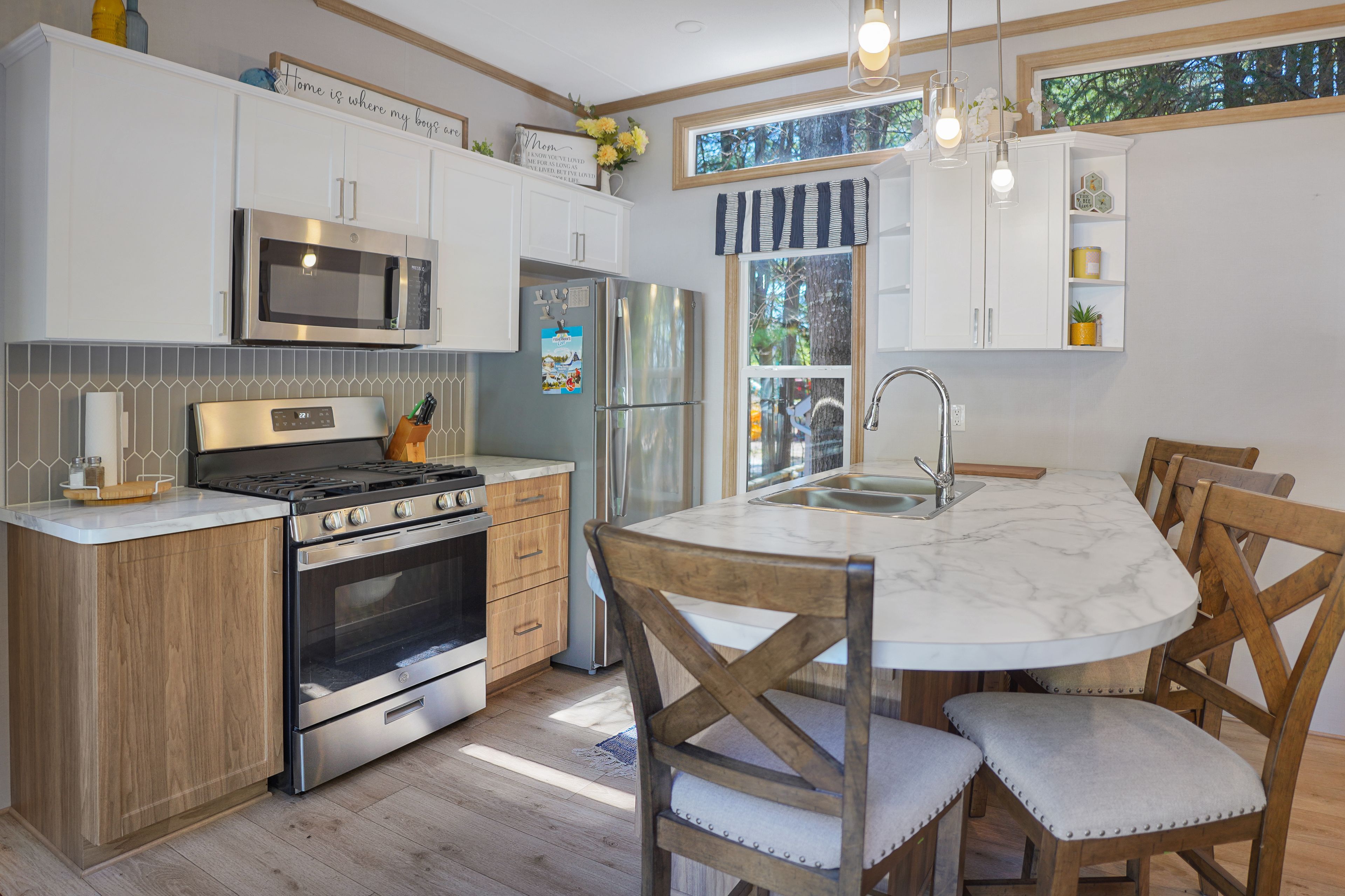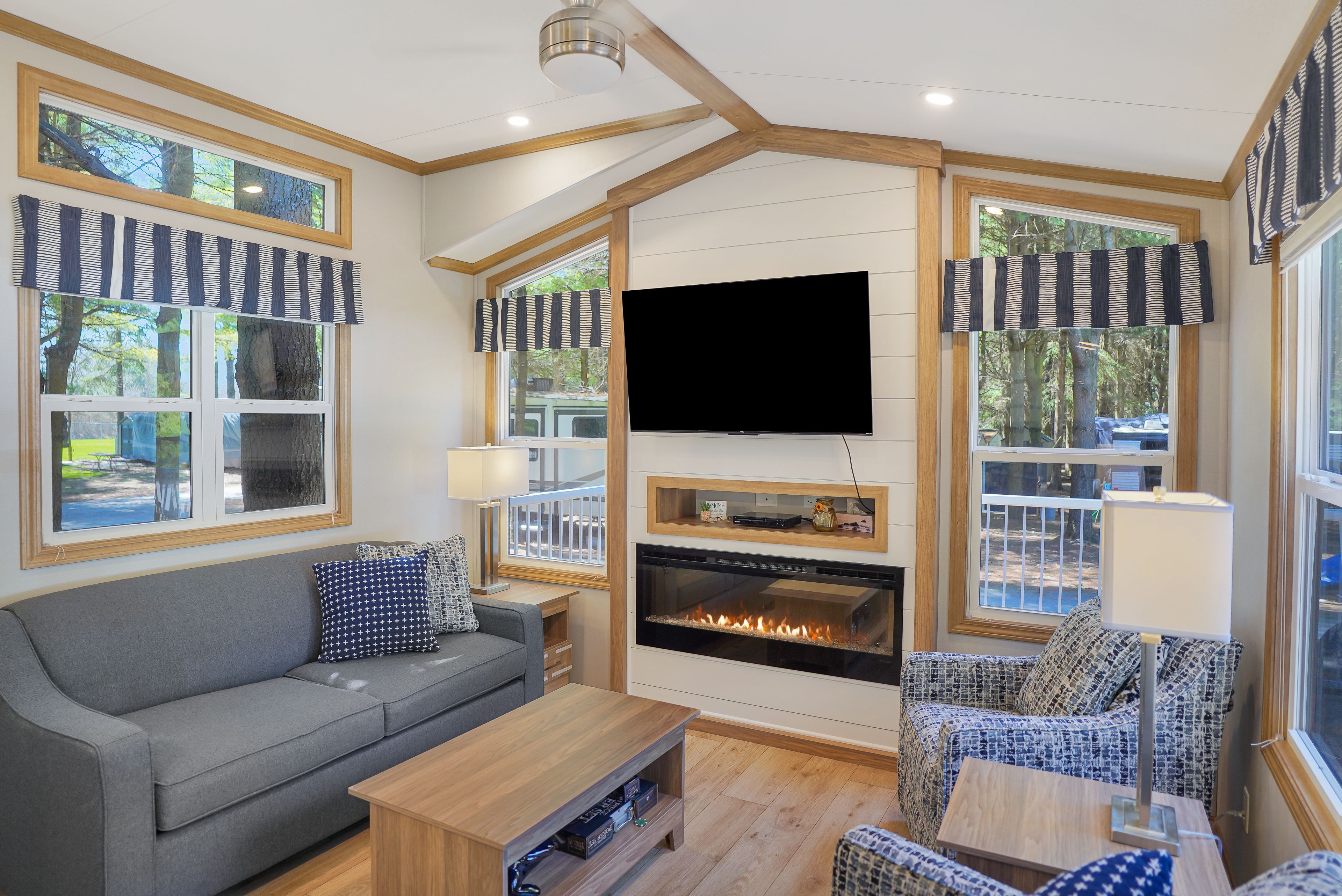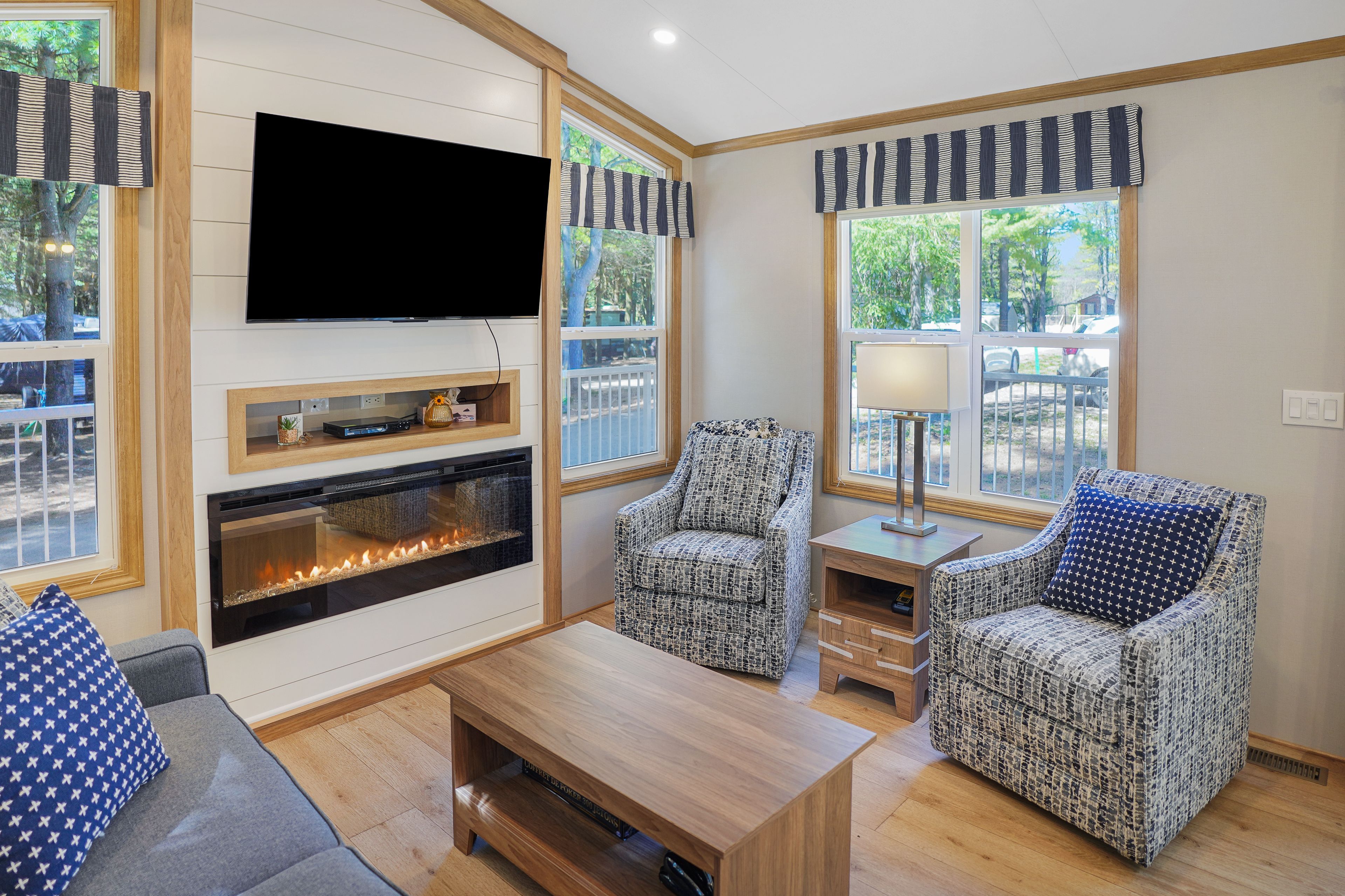 • Modern 2023 park model nestled in a private, treed setting.