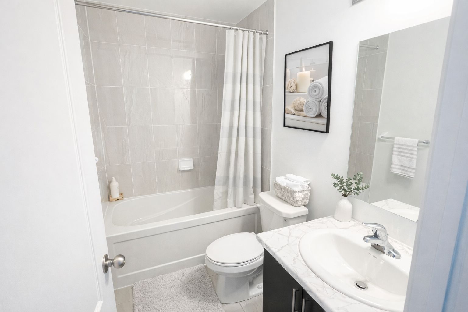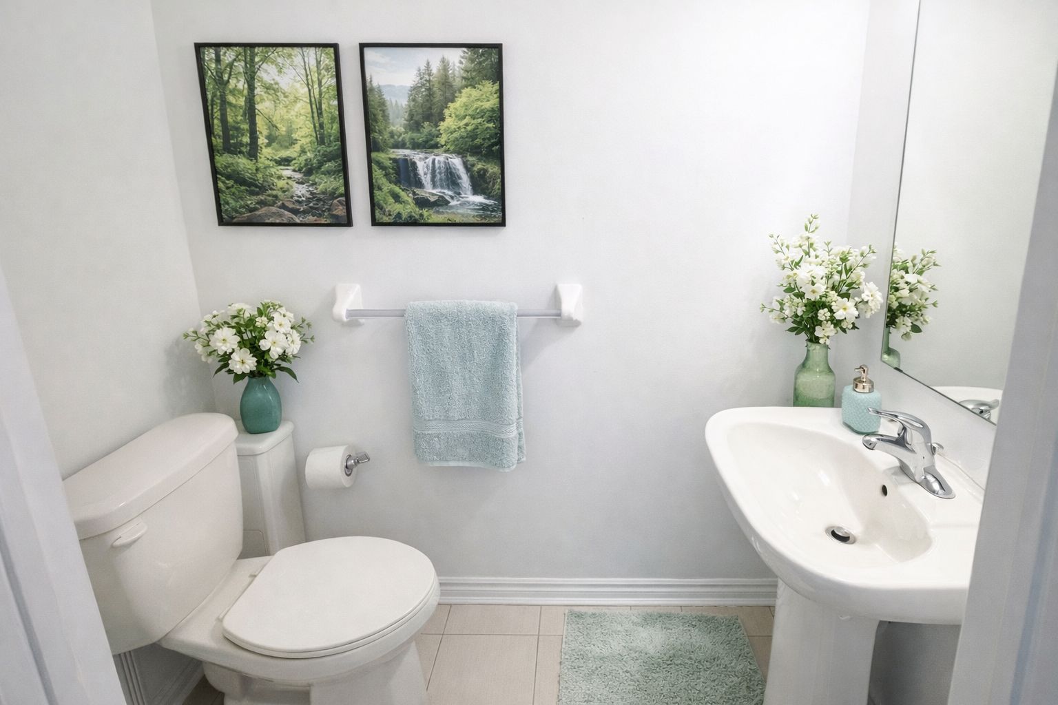 • Elegant oak stairs and upgraded bathrooms throughout the home.