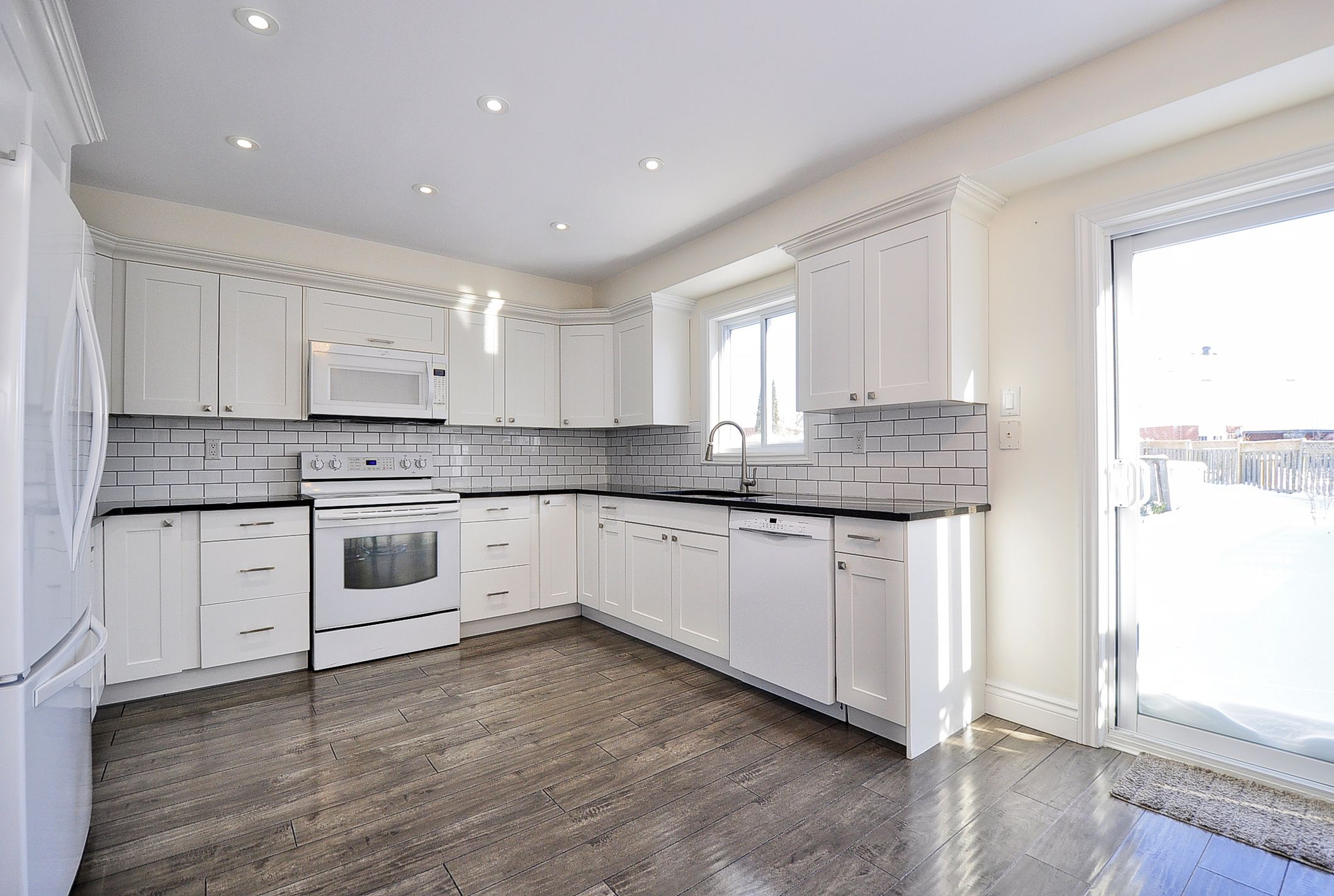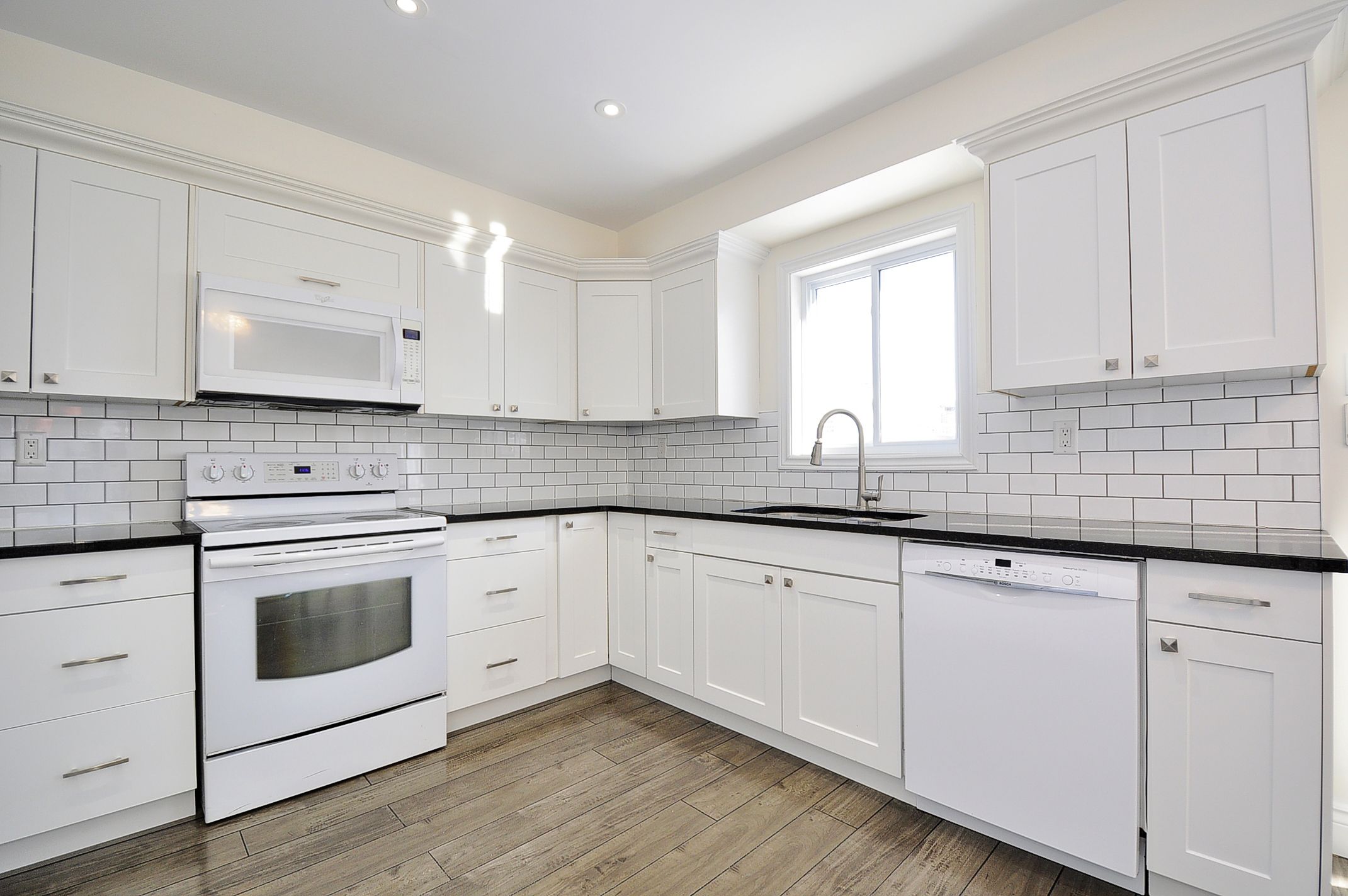 • Spacious living room and updated eat-in kitchen with granite countertops.