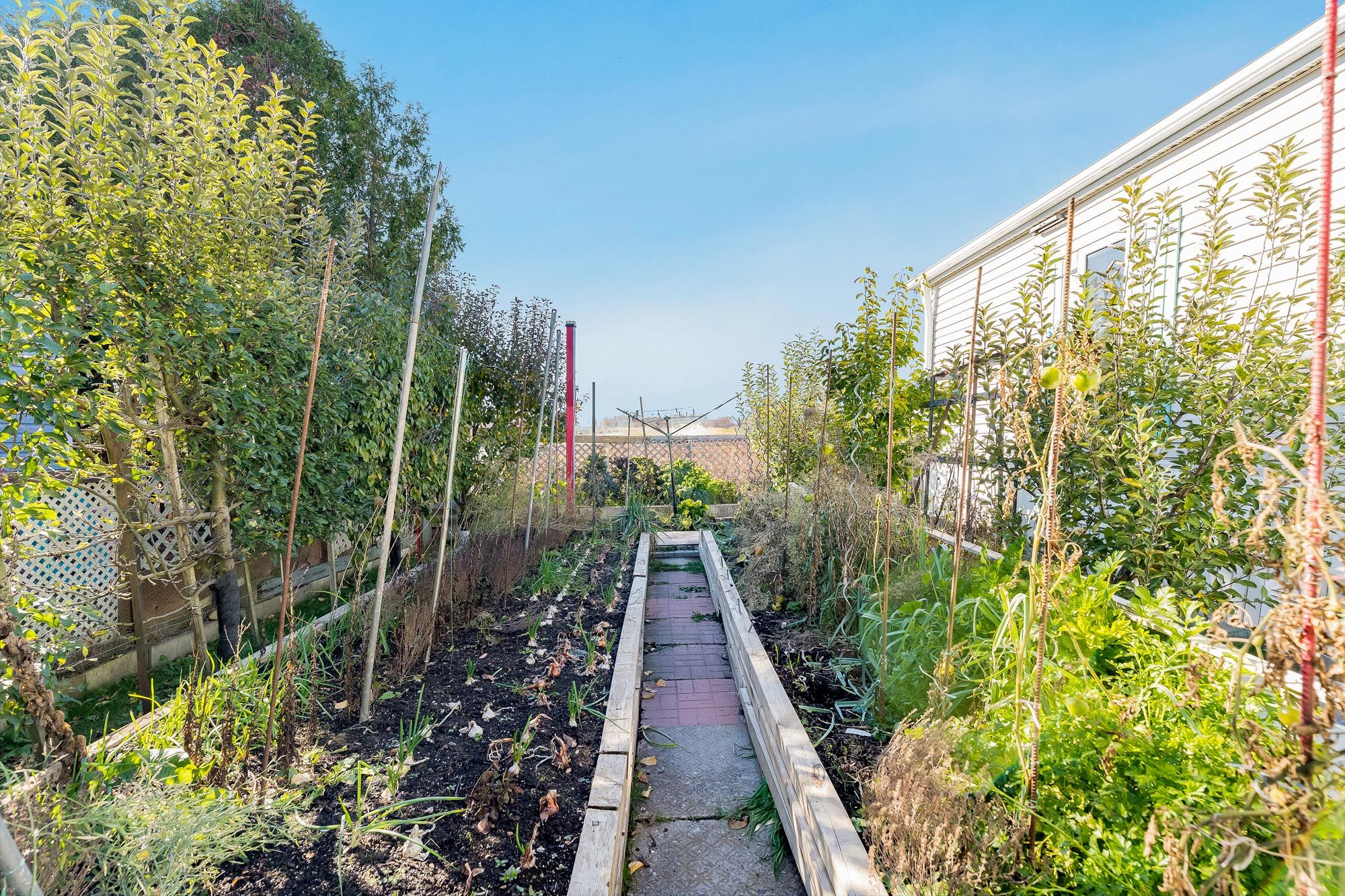 • Backyard haven with fruit trees and thriving vegetable gardens for fresh harvests.
