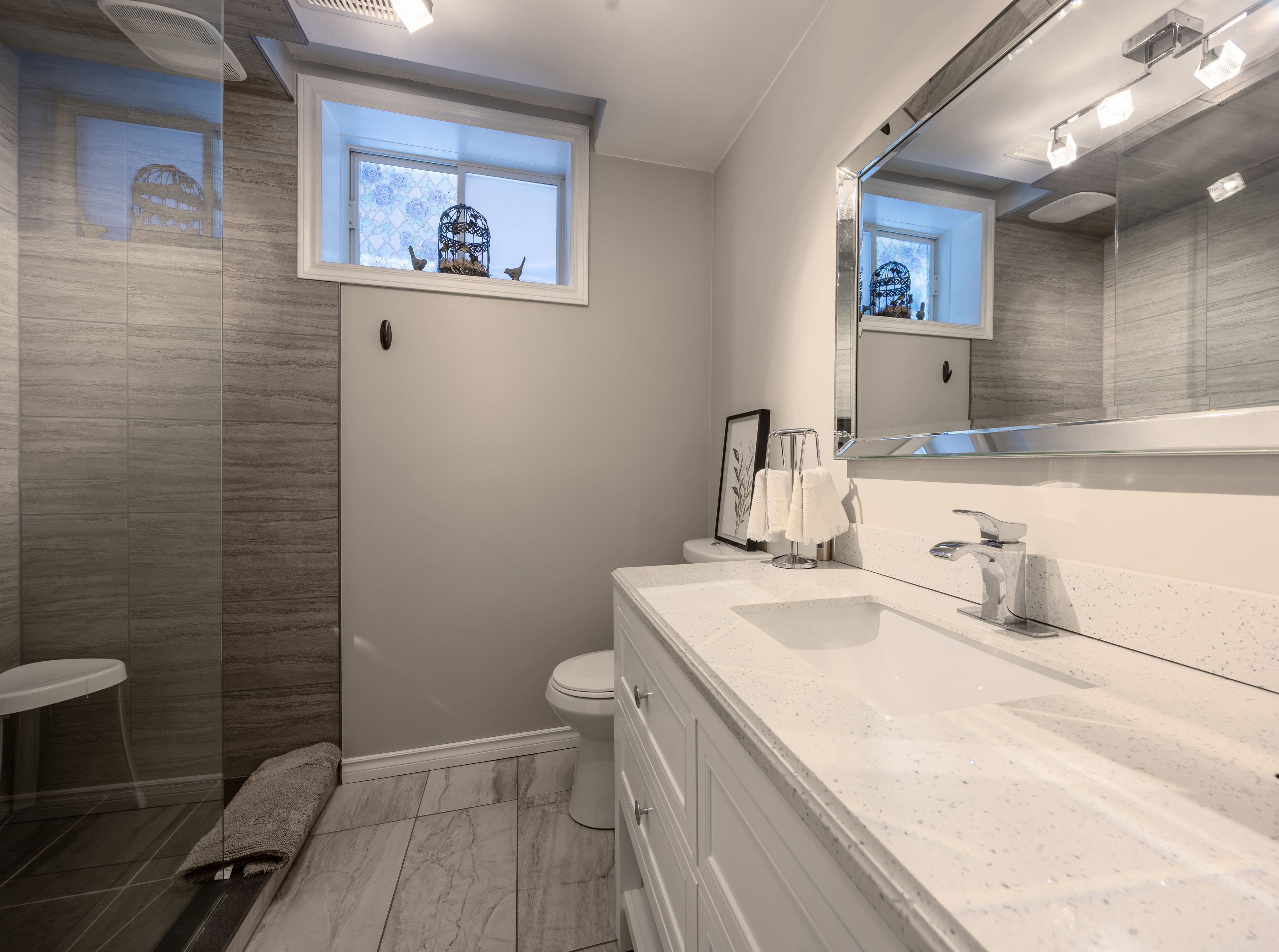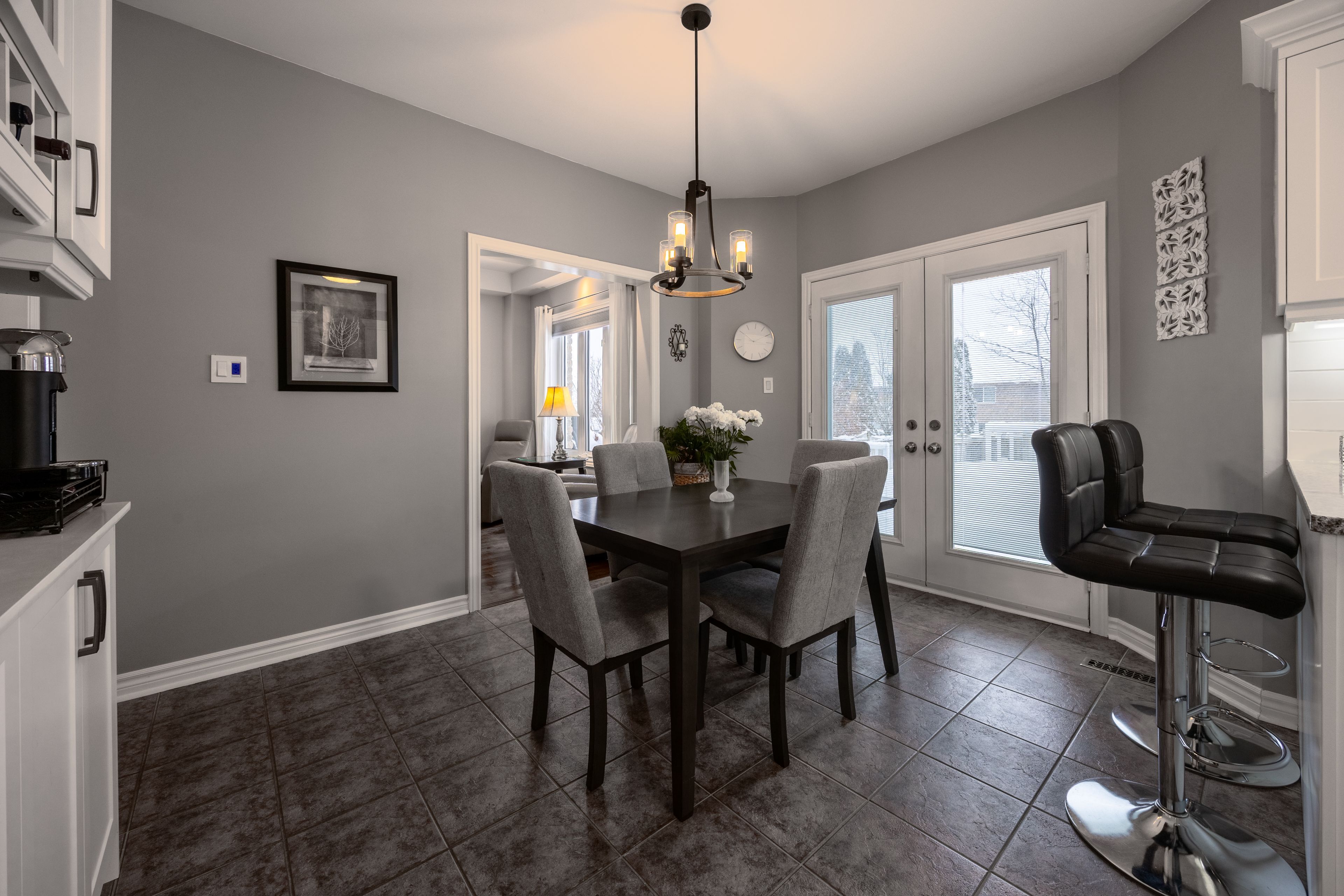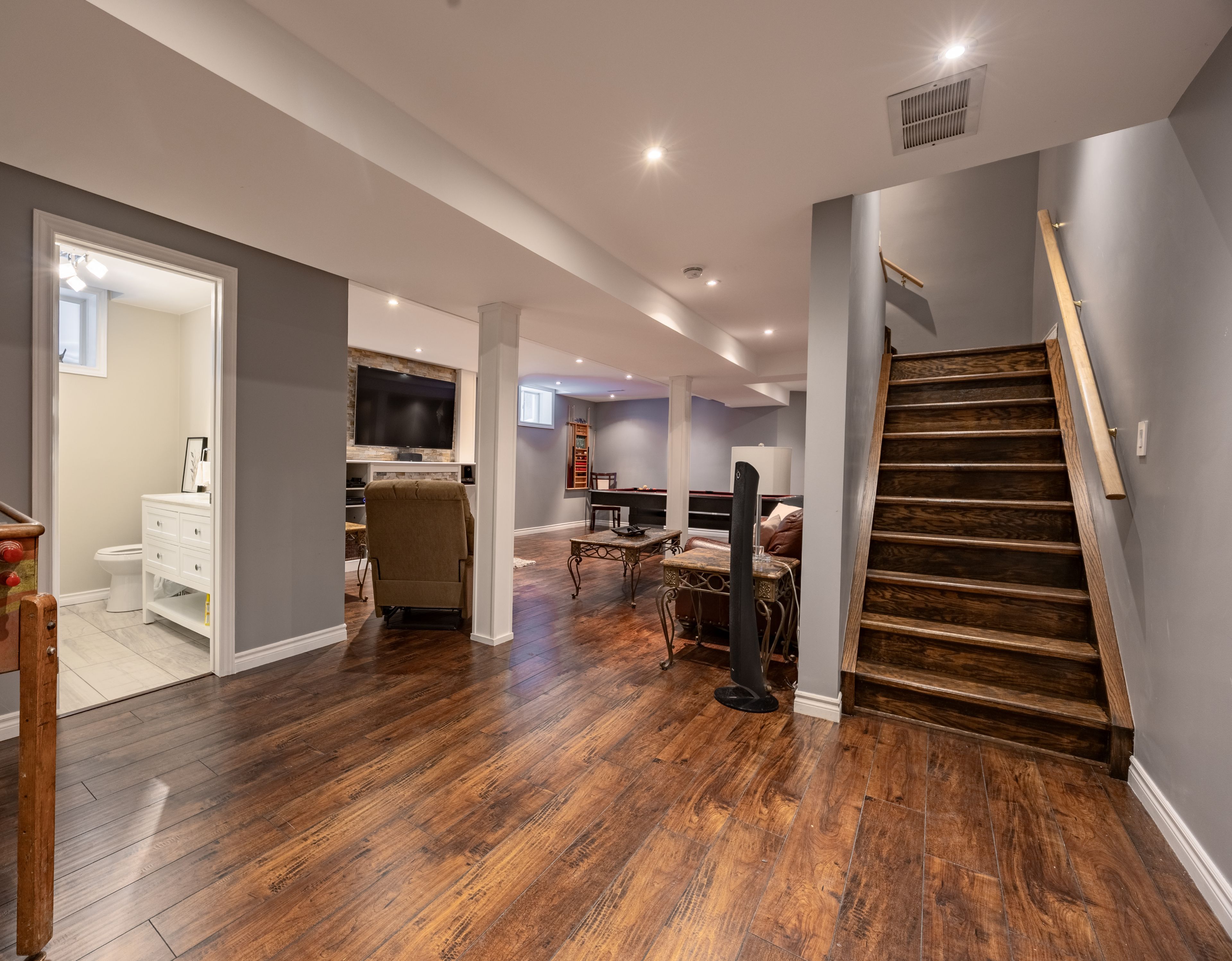 Located at the end of a quiet cul-de-sac in north barrie, this beautifully maintained 4-bedroom home offers a peaceful, family-friendly setting with numerous modern upgrades throughout. Conveniently located just minutes from schools, parks, cineplex, georgian college, royal vicoria hospital, and quick highway access, this home delivers both comfort and accessibility. The spacious primary bedroom is a true retreat, featuring a walk-in shower, double vanity, heated floors, and an oversized walk-in closet. A second full bathroom on the same level, also equipped with a double sink, is perfect for a growing family. The home boasts partially upgraded windows and a modern kitchen (2022) complete with under-cabinet lighting that enhances brightness and functionality. The welcoming family room features a cozy fireplace, ideal for relaxing evenings, while the bright dining room provides an excellent space for family gatherings and entertaining. The finished basement offers exceptional versatility, including an additional bedroom with a generously sized closet-perfect for a home office, gym, guest suite, or extra living space. A large recreation room provides ample room for entertaining or kids' activities and features a second fireplace and a walk-in shower. Additional highlights include a manual sprinkler irrigation system, thoughtful modern upgrades throughout, and attention to detail in every corner. Step outside to enjoy summer evenings with a built-in barbecue and gazebo, creating the perfect setting for outdoor entertaining and family time.