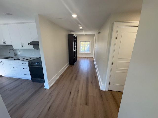 • Modern finishes including laminate flooring and quartz counters throughout.