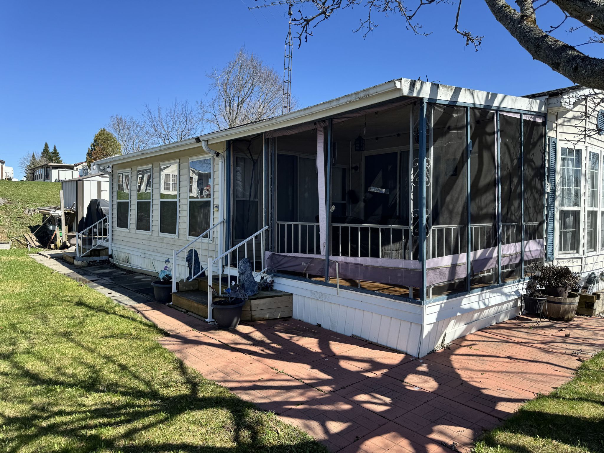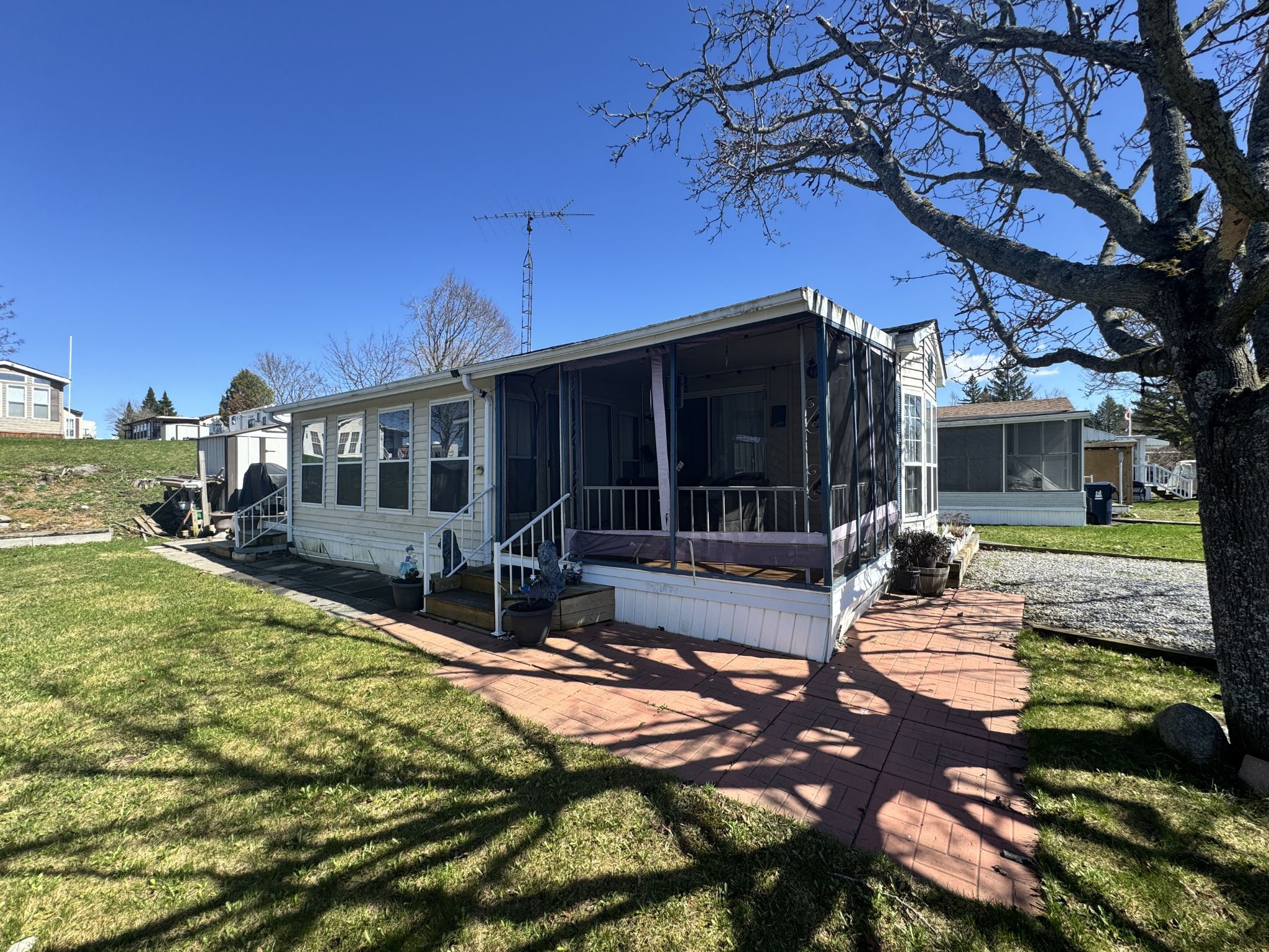 Tucked away in the peaceful waterfront community of shady acres trailer park in keene, this charming 3-season trailer offers a perfect escape to nature with all the comforts of home. Featuring a main bedroom, a full 4-piece bathroom, and an open-concept kitchen, dining, and living area, it's designed for both relaxation and functionality. A spacious addition has been thoughtfully converted into a second bedroom, ideal for guests or extra storage. Enjoy morning coffee on the screened in deck or gather around the fire pit in the evening. Shady acres offers fantastic amenities including a family and adult pool, office, boat launch, and scenic walking trails. Nightly park surveillance provides added safety and security. Located along the beautiful trent-severn waterway, outdoor enthusiasts can take full advantage of boating, fishing, and water front leisure just steps away. Whether you're looking for a seasonal family retreat or a peaceful summer getaway, this trailer blends comfort, convenience, and the natural beauty of lakeside living.