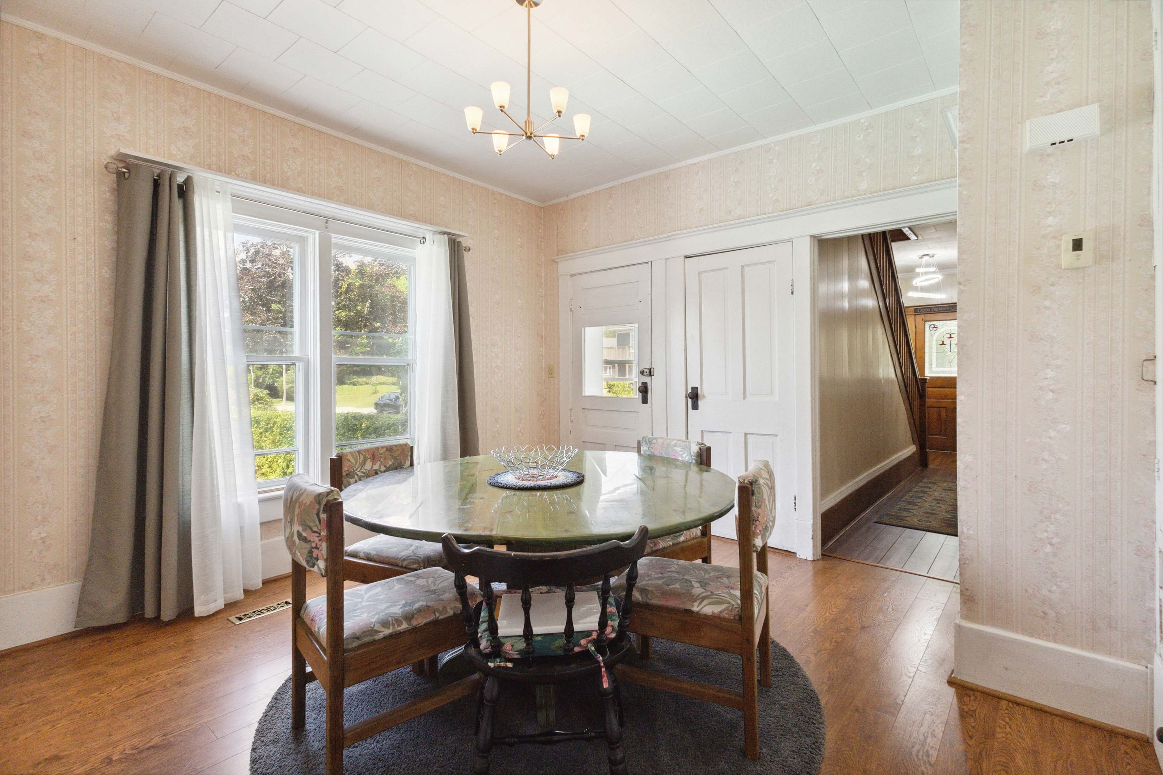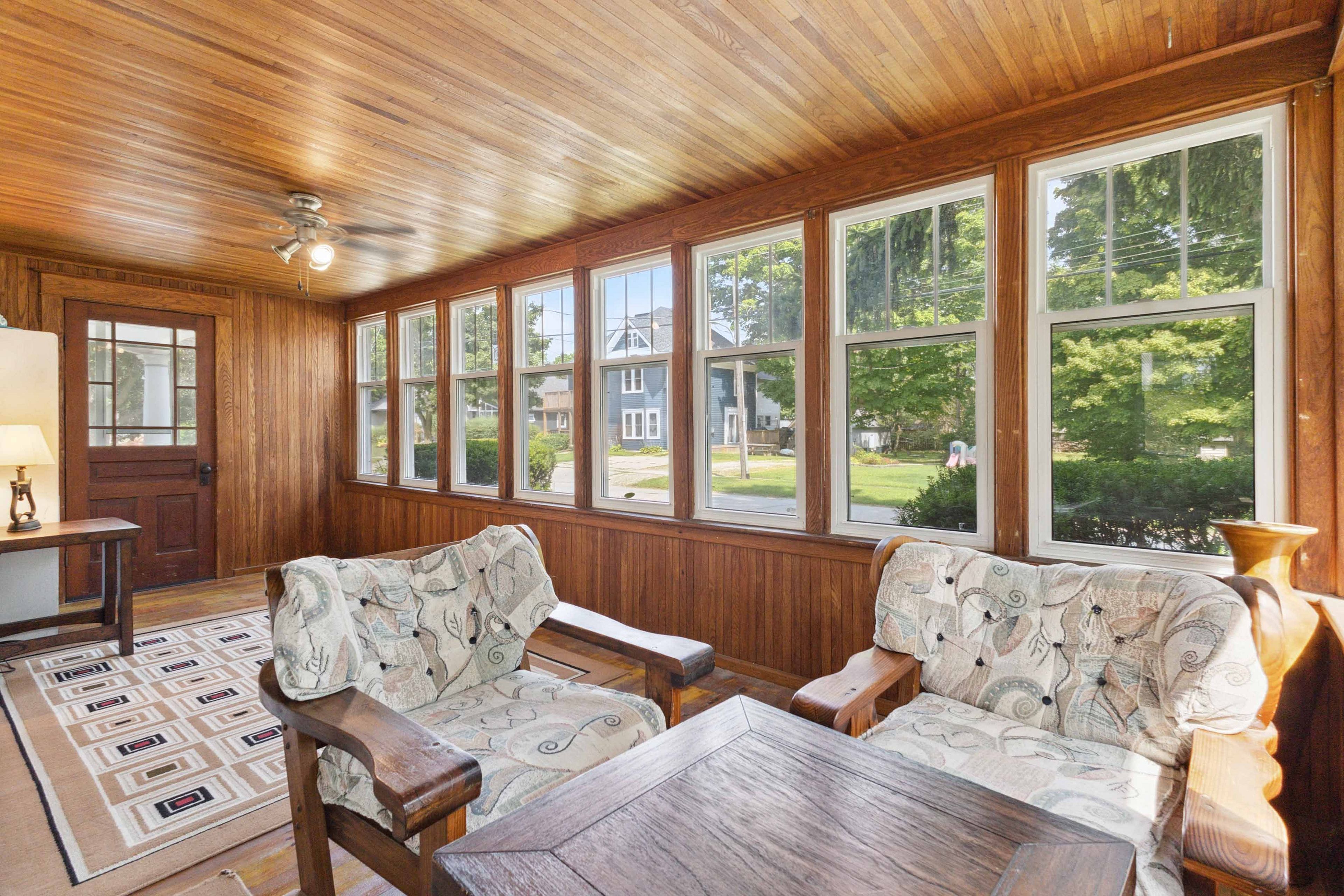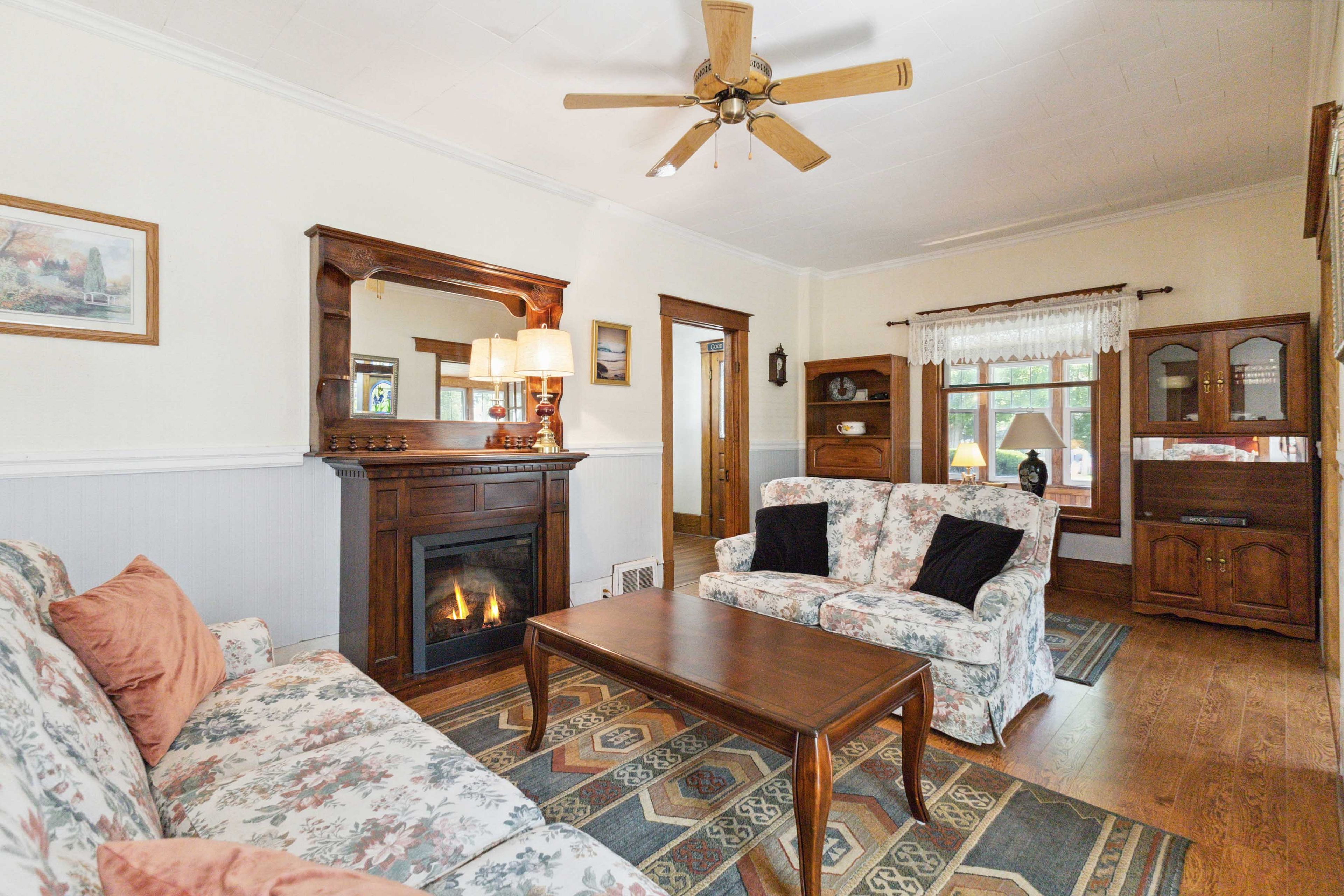 • Rich character with original wood trim, built-ins, and stunning stained-glass details.