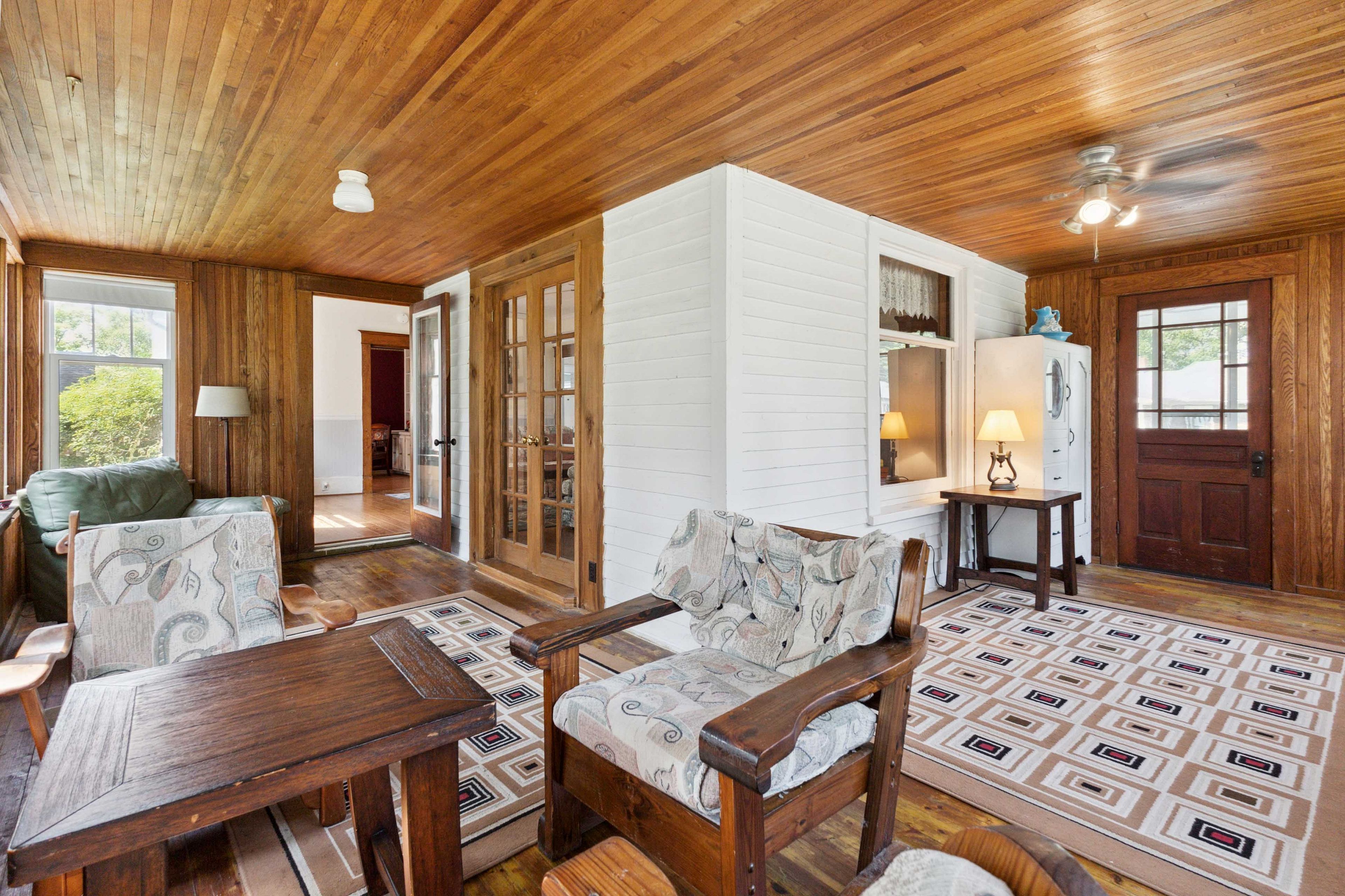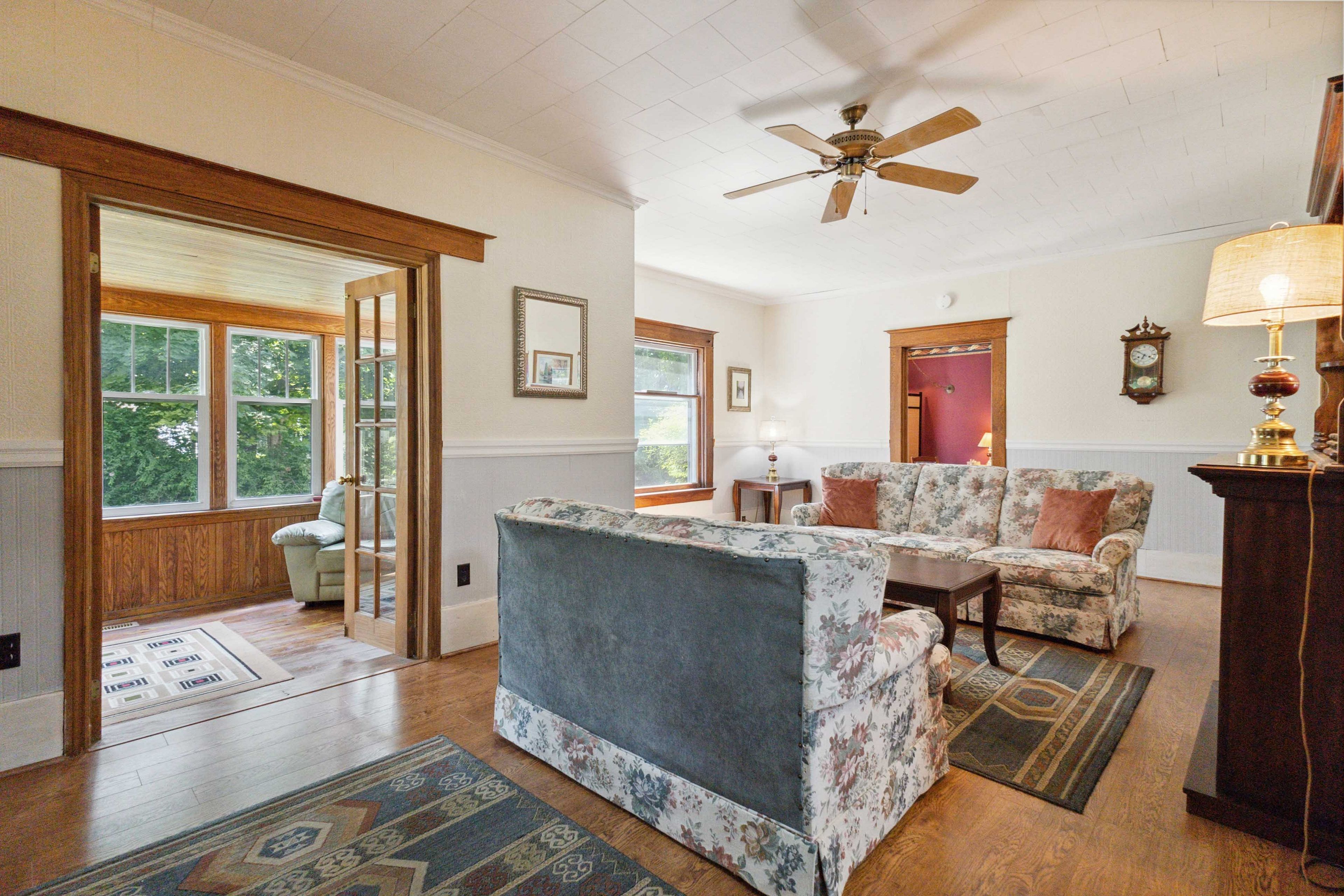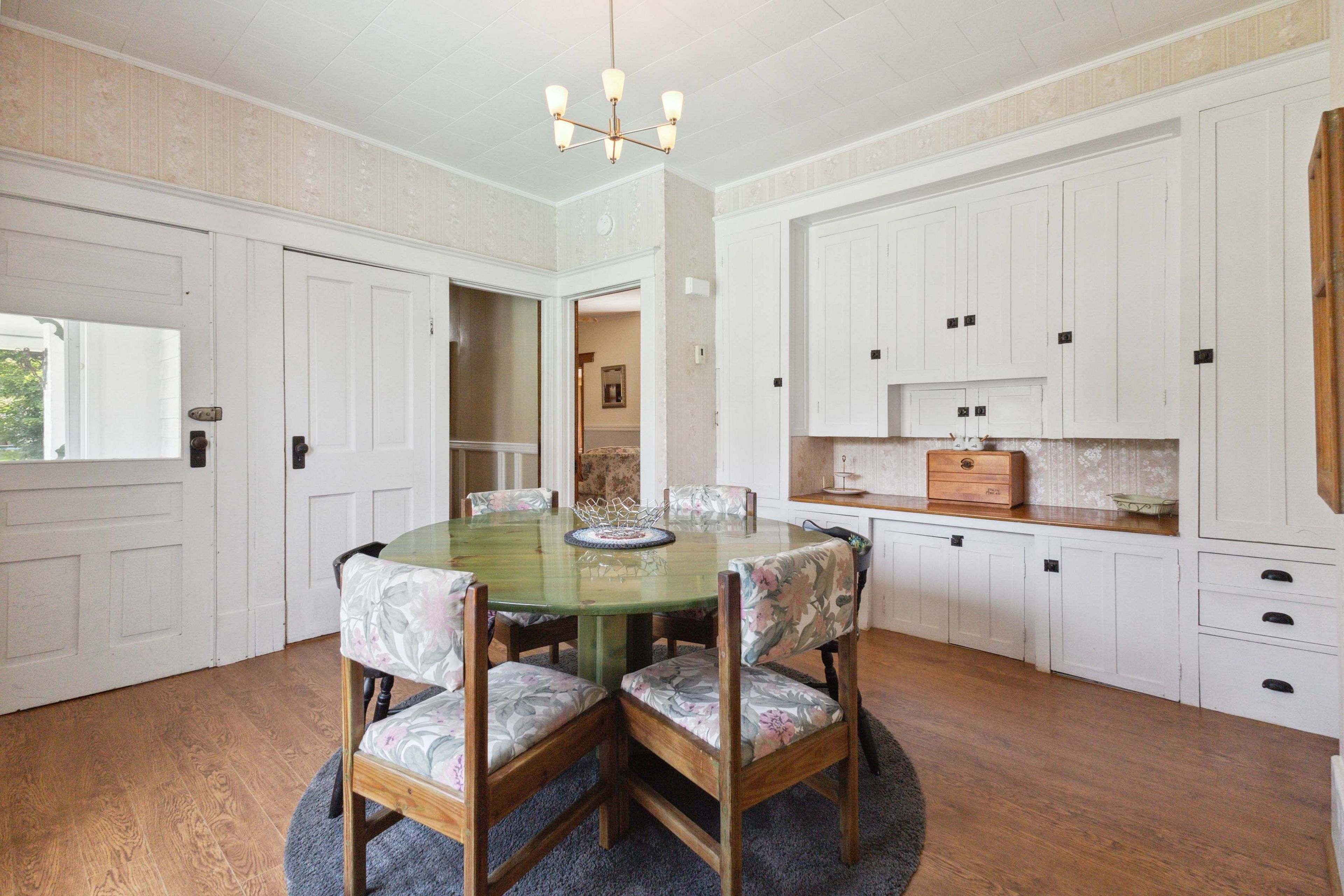 • Rich character with original wood trim, built-ins, and stunning stained-glass details.
