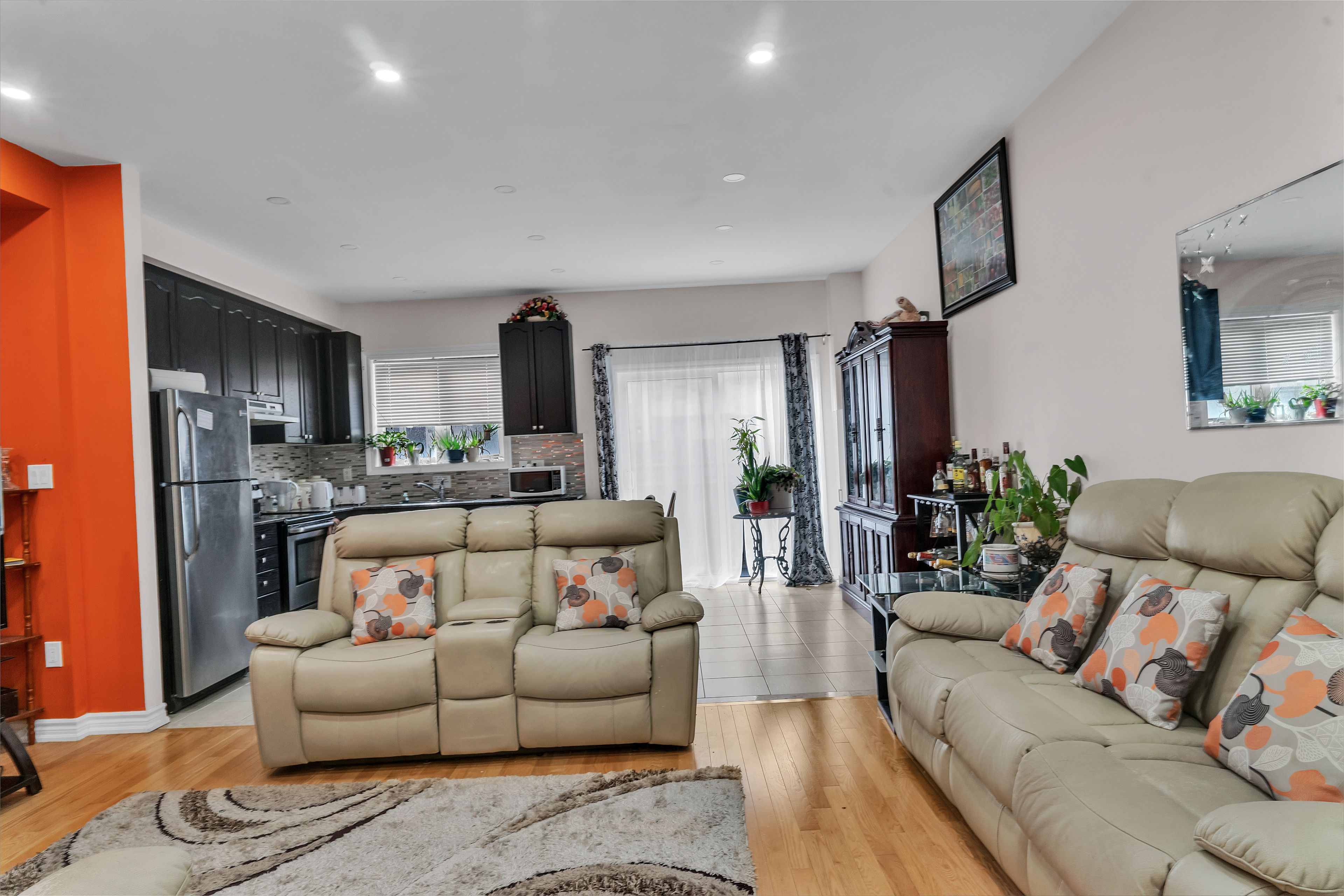 • Open concept layout with hardwood flooring throughout both levels.
