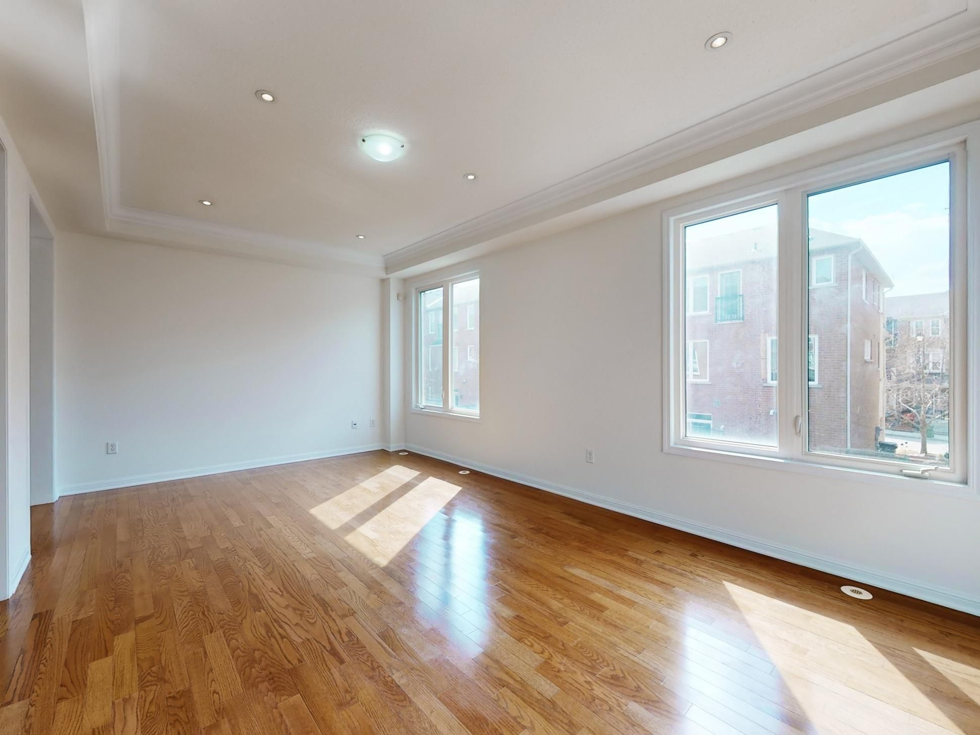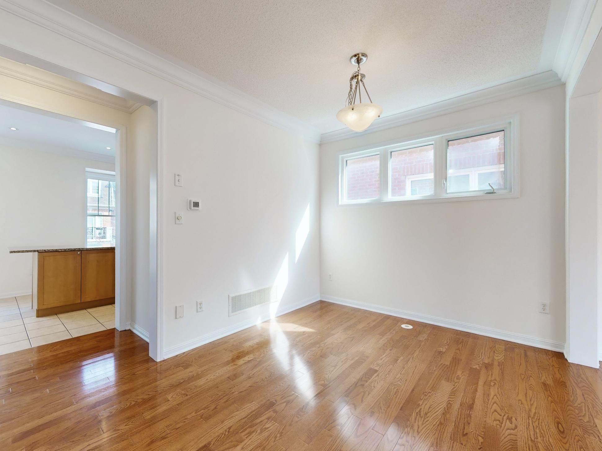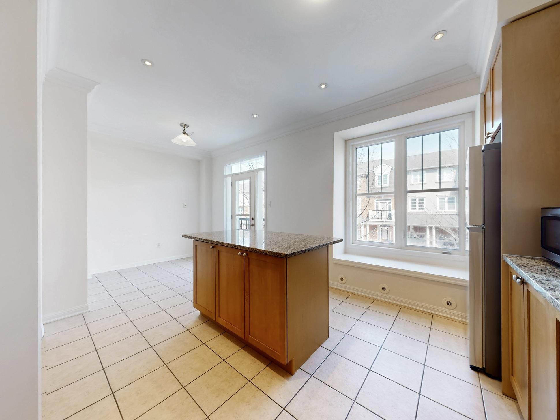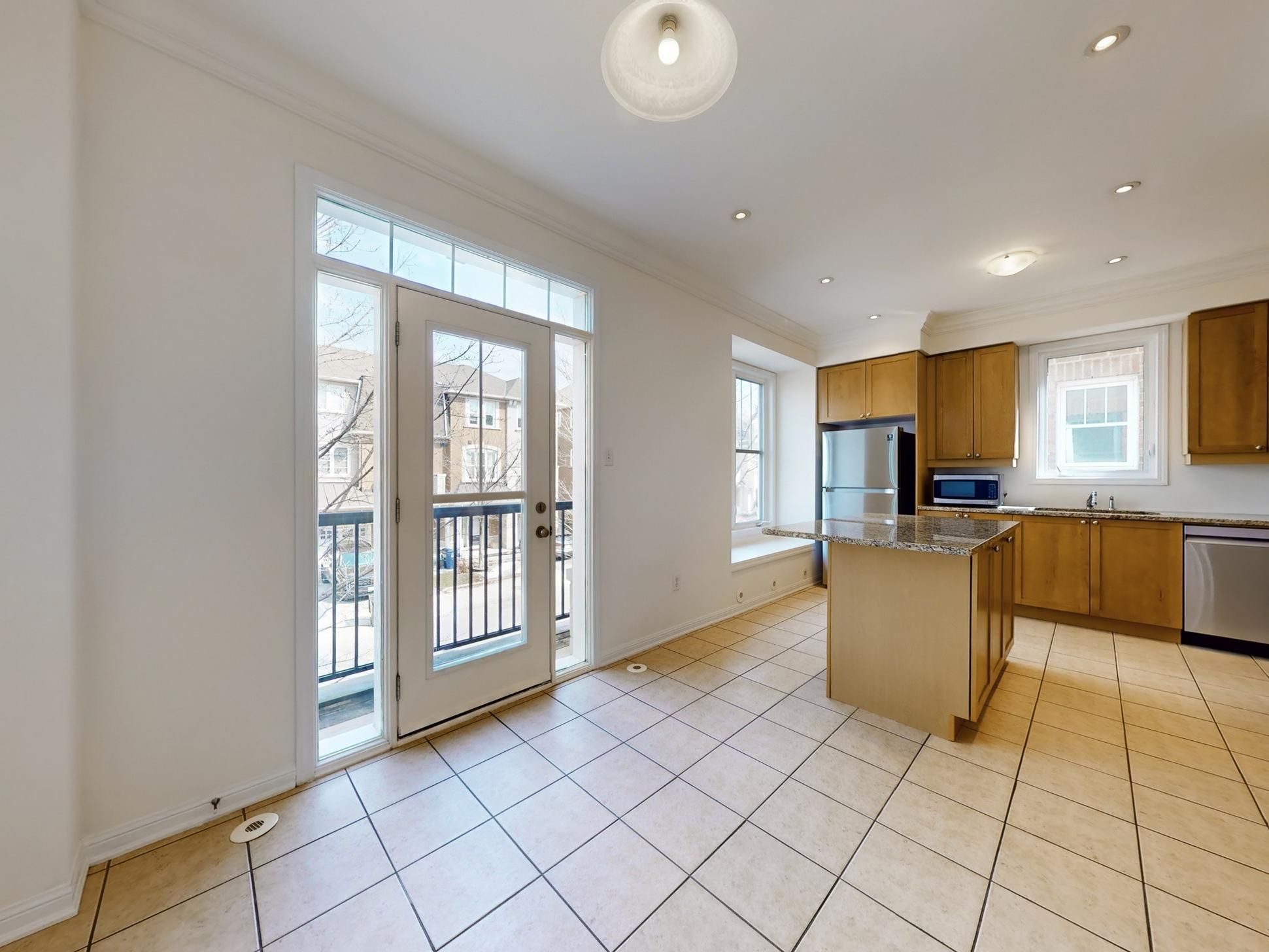 See virtual tour. This stunning, fresh-painted, lovingly maintained end-unit freehold townhouse, built by mattamy homes, offers bright, beautifully laid out living space in sought-after clairlea-birchmount. The main level is thoughtfully designed with a perfect office space, featuring a walk-out to your private backyard with a cherry tree and a pear tree. Direct access from the garage adds everyday convenience. Ascend to the second floor, a true entertainer's dream. An open-concept living, dining, and kitchen area is enhanced by soaring 9-foot ceilings and abundant natural light. The modern kitchen is finished with elegant granite counters and ample cabinetry, a heated floor in the breakfast. The third level showcases four bedrooms, including a spacious primary suite with a private ensuite bathroom. Most newer windows(2025). Great location w steps to all amenities, park, community centre, school & warden subway station.