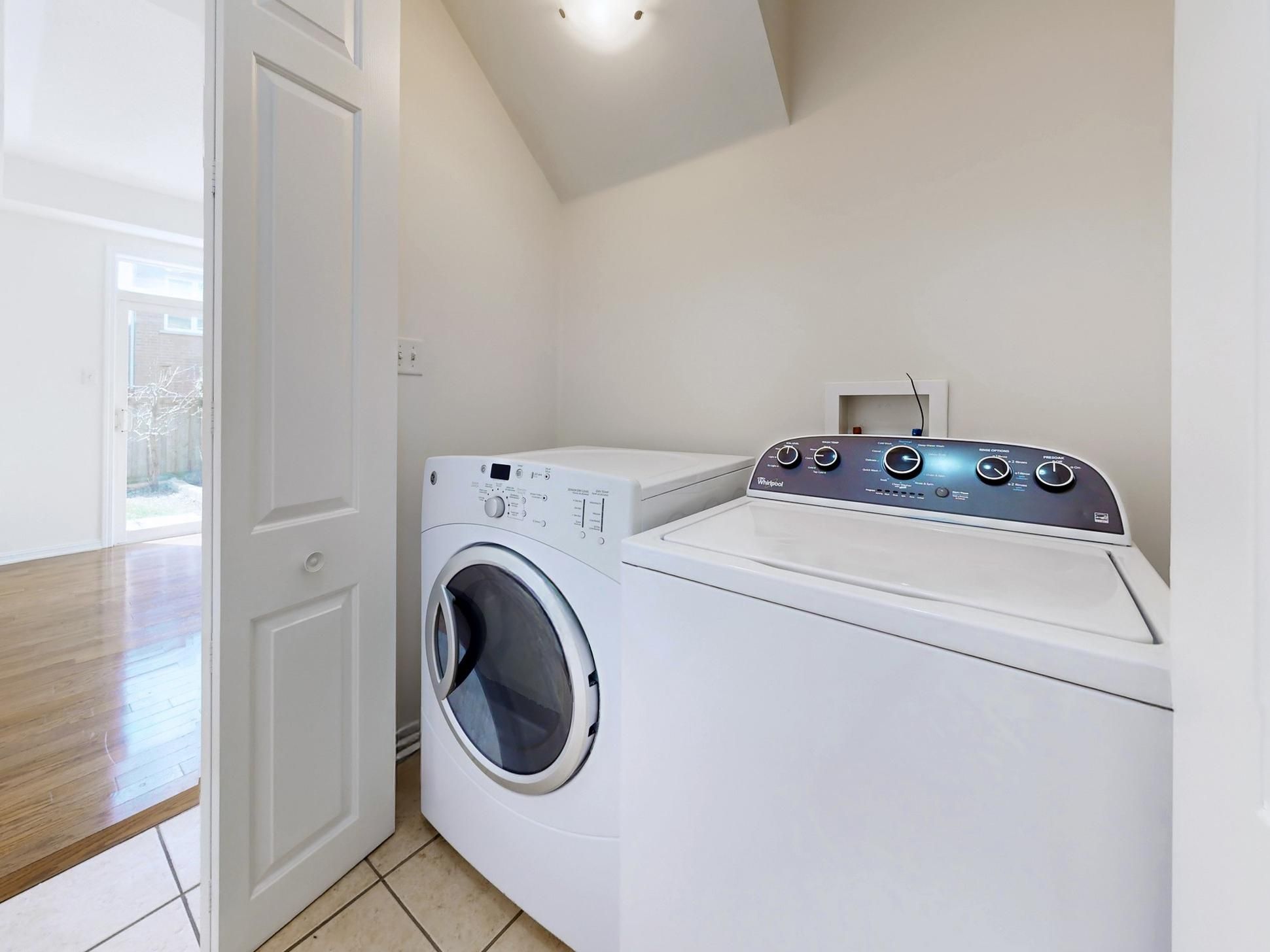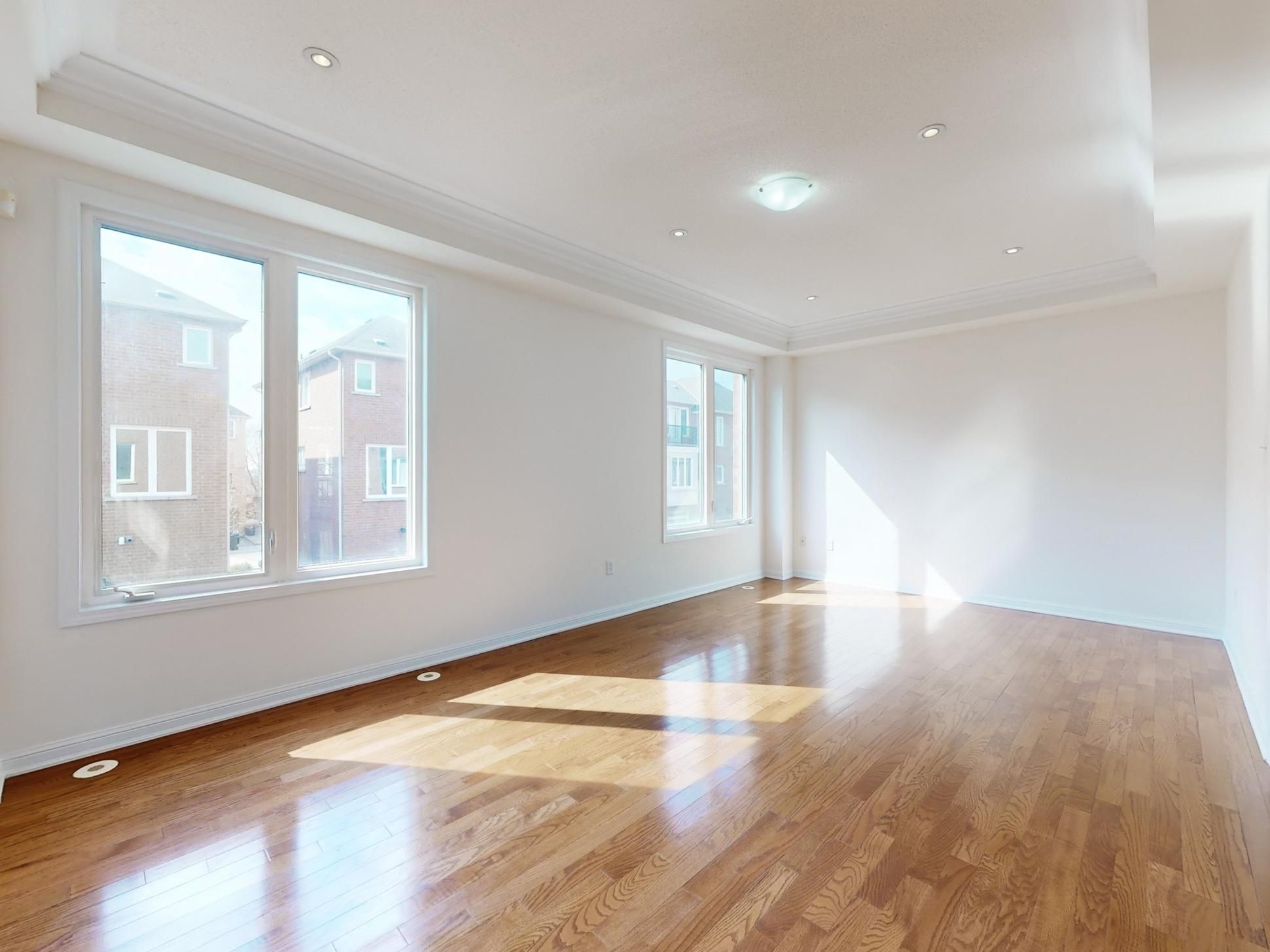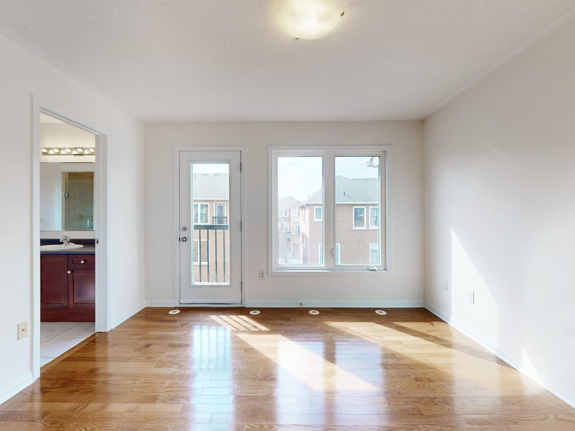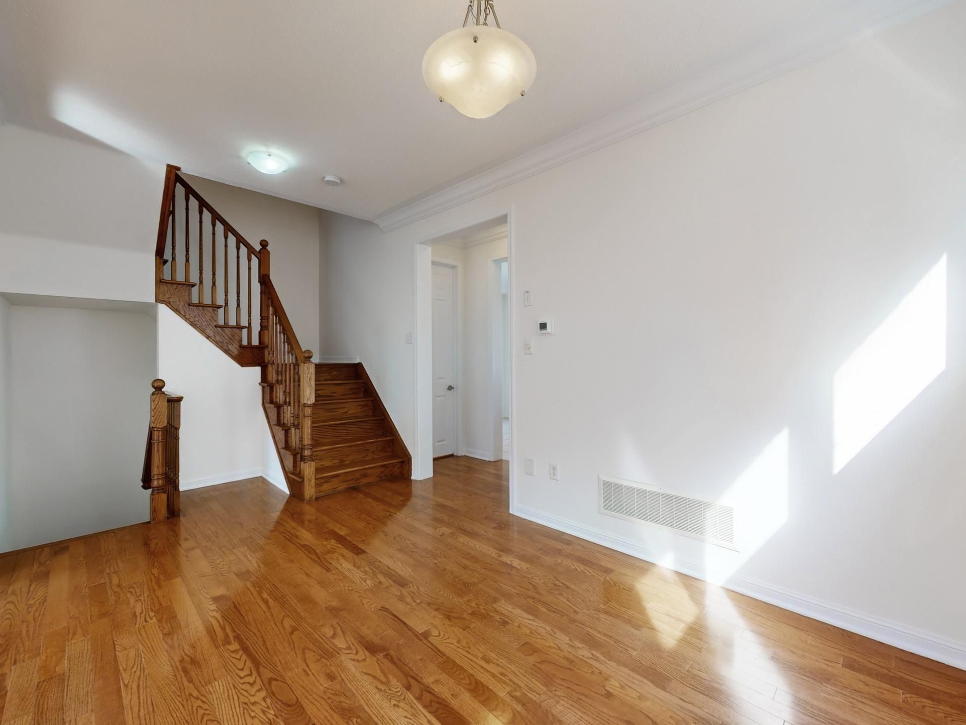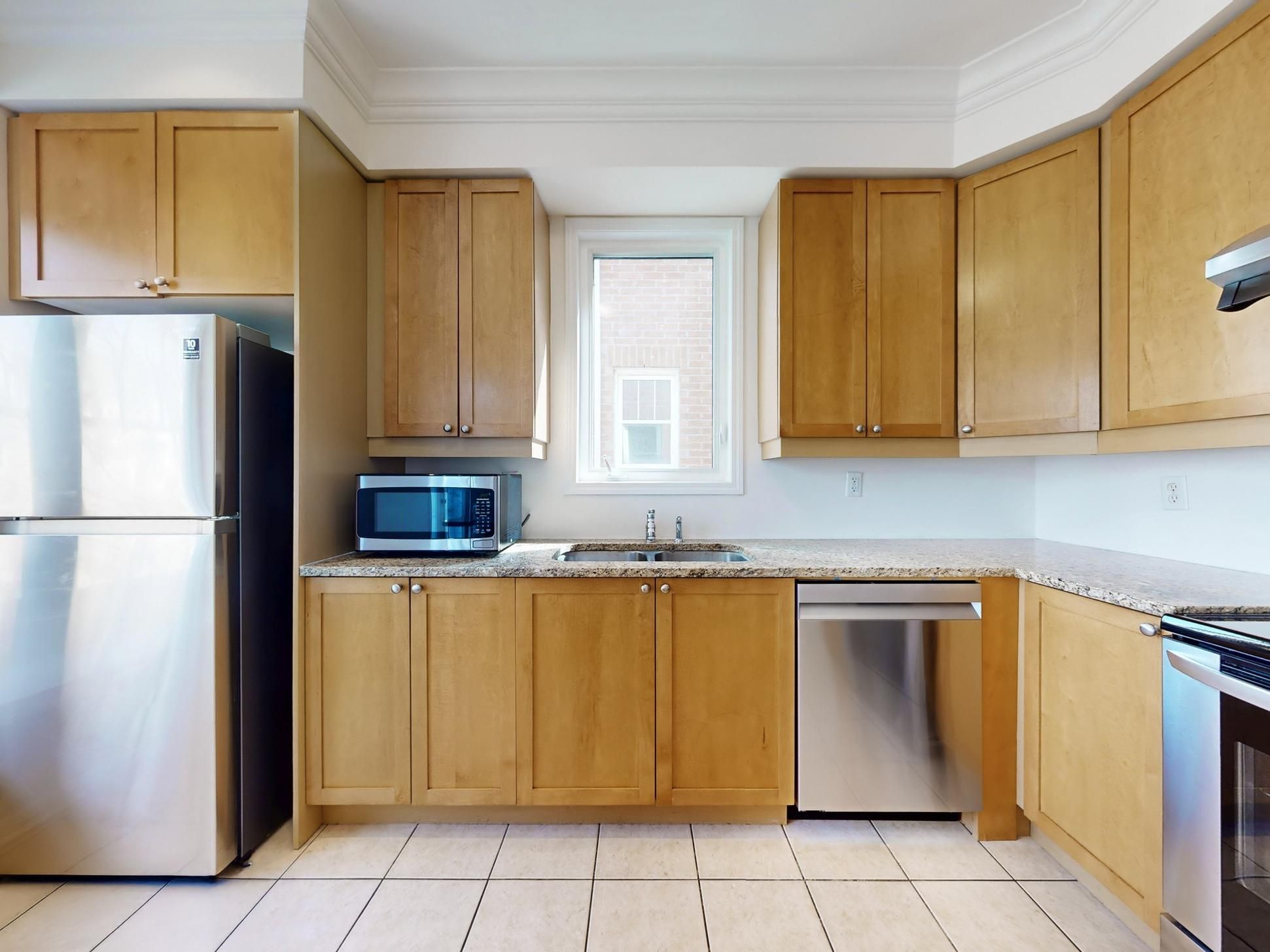 See virtual tour. This stunning, fresh-painted, lovingly maintained end-unit freehold townhouse, built by mattamy homes, offers bright, beautifully laid out living space in sought-after clairlea-birchmount. The main level is thoughtfully designed with a perfect office space, featuring a walk-out to your private backyard with a cherry tree and a pear tree. Direct access from the garage adds everyday convenience. Ascend to the second floor, a true entertainer's dream. An open-concept living, dining, and kitchen area is enhanced by soaring 9-foot ceilings and abundant natural light. The modern kitchen is finished with elegant granite counters and ample cabinetry, a heated floor in the breakfast. The third level showcases four bedrooms, including a spacious primary suite with a private ensuite bathroom. Most newer windows(2025). Great location w steps to all amenities, park, community centre, school & warden subway station.