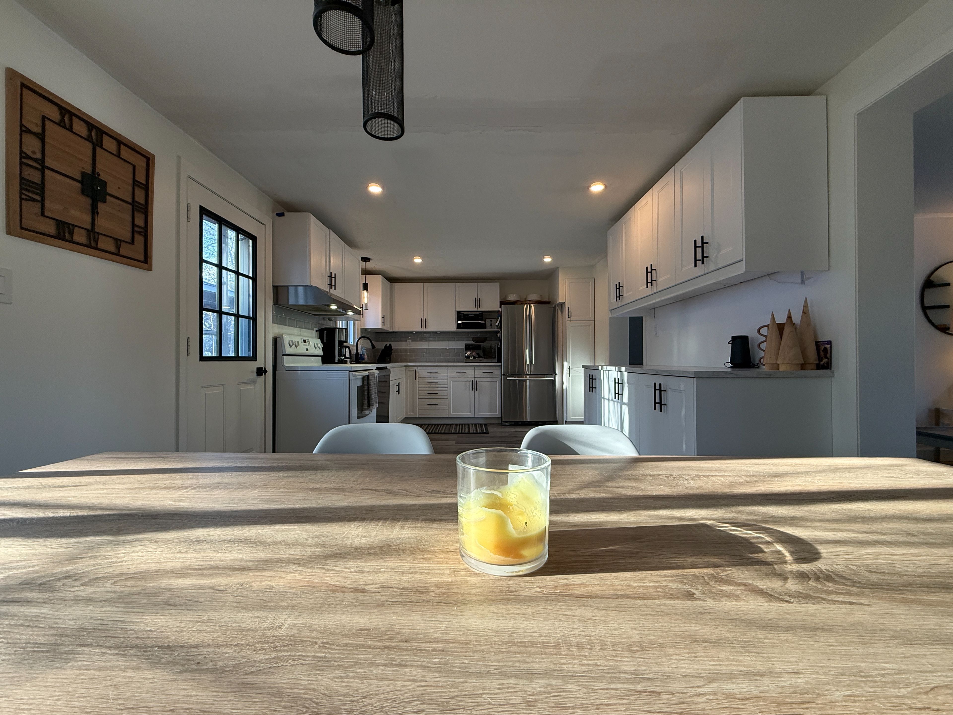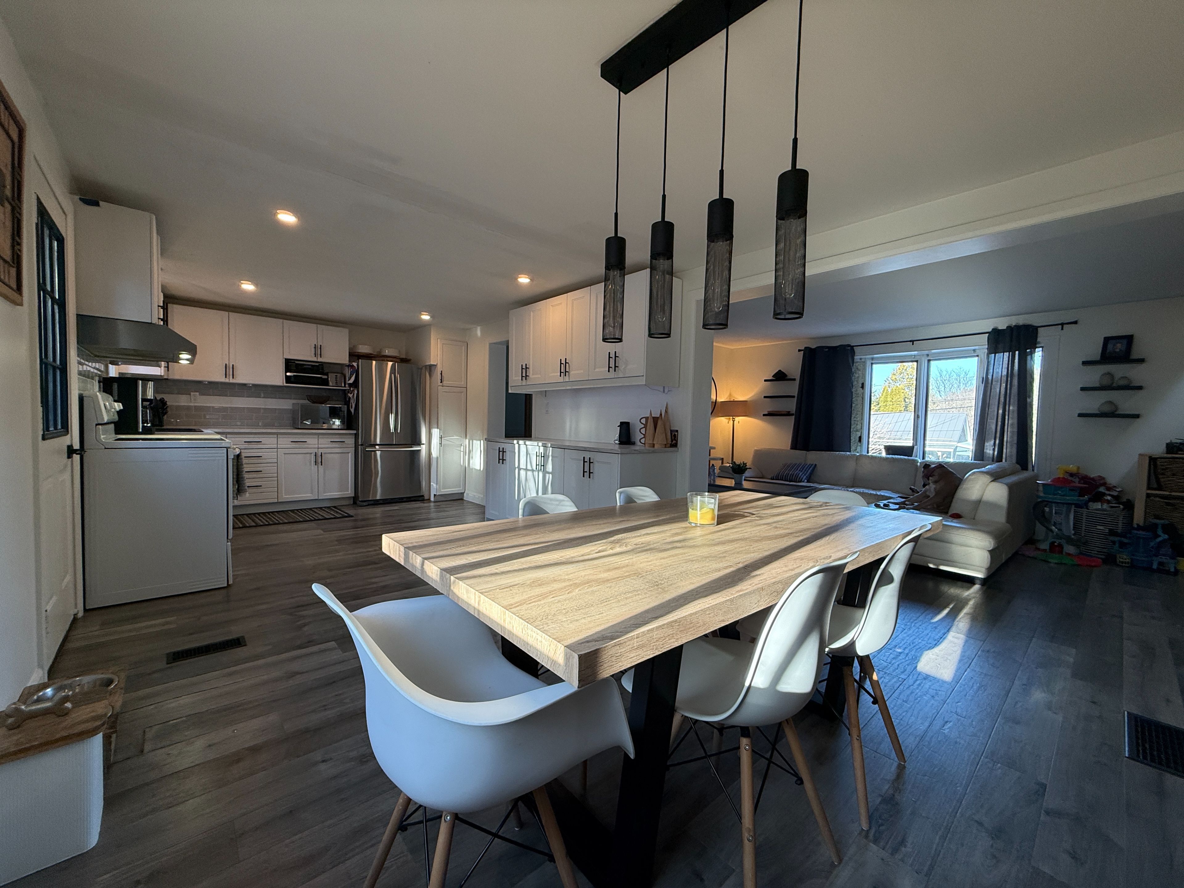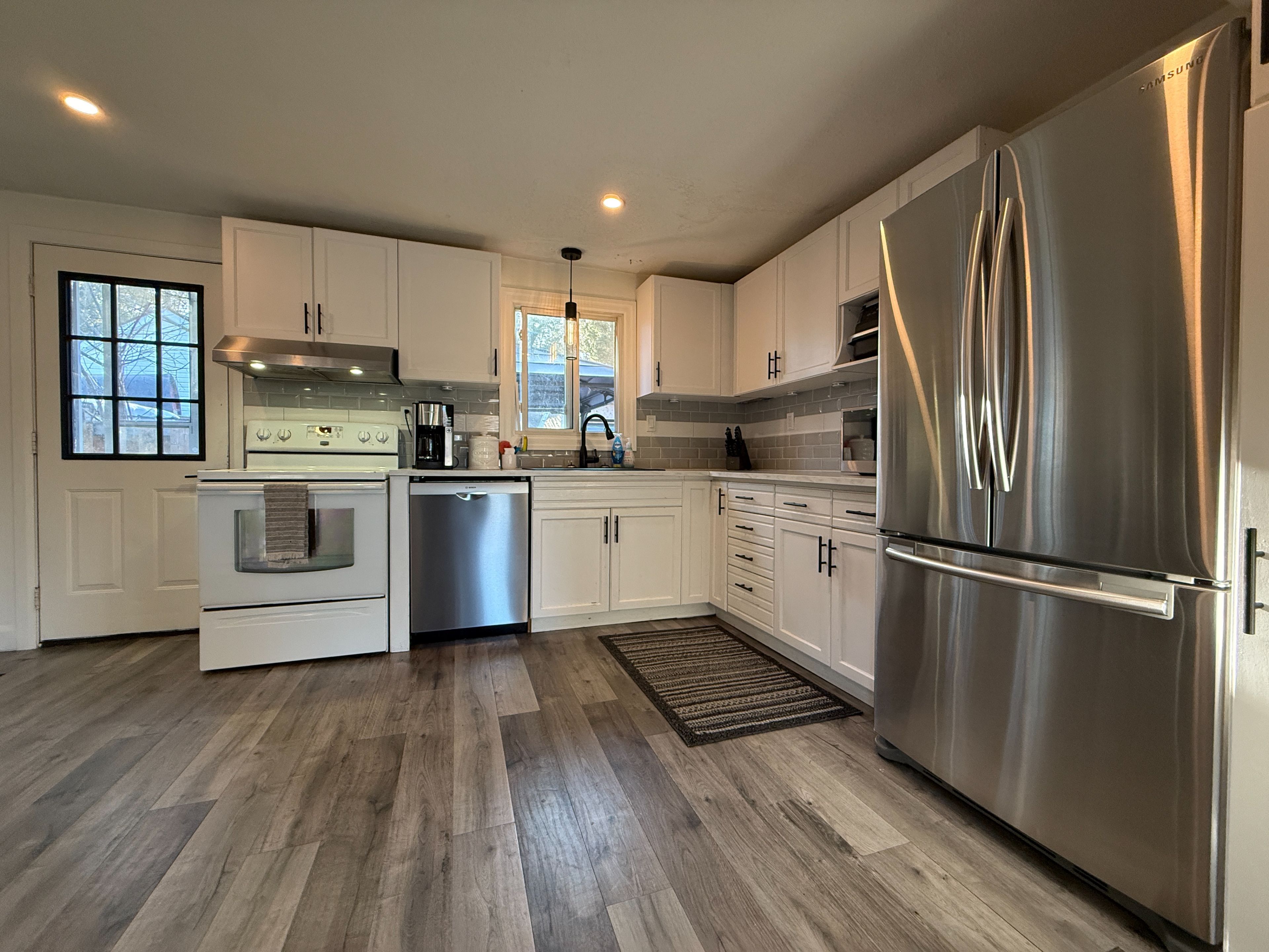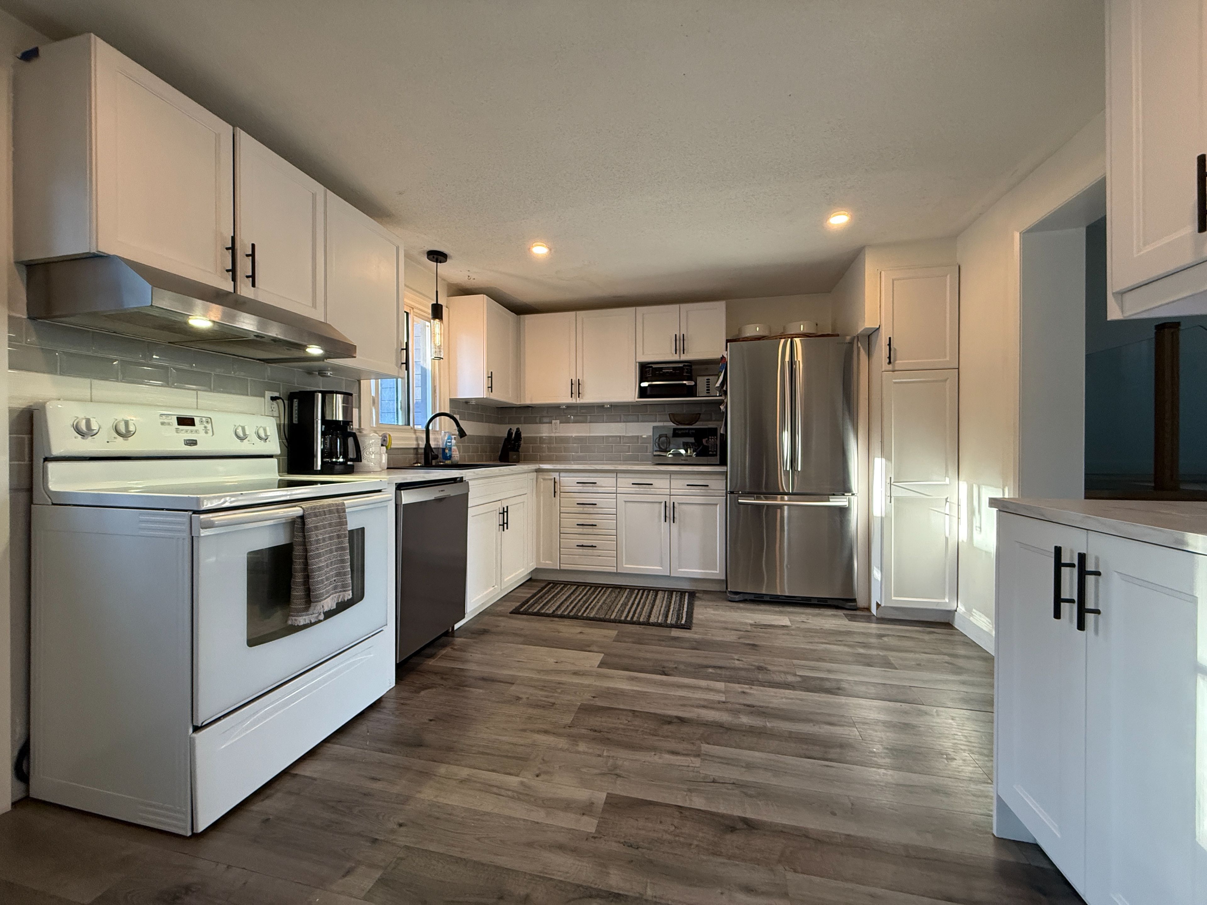 • Large kitchen with plenty of storage and workspace for meal preparation.