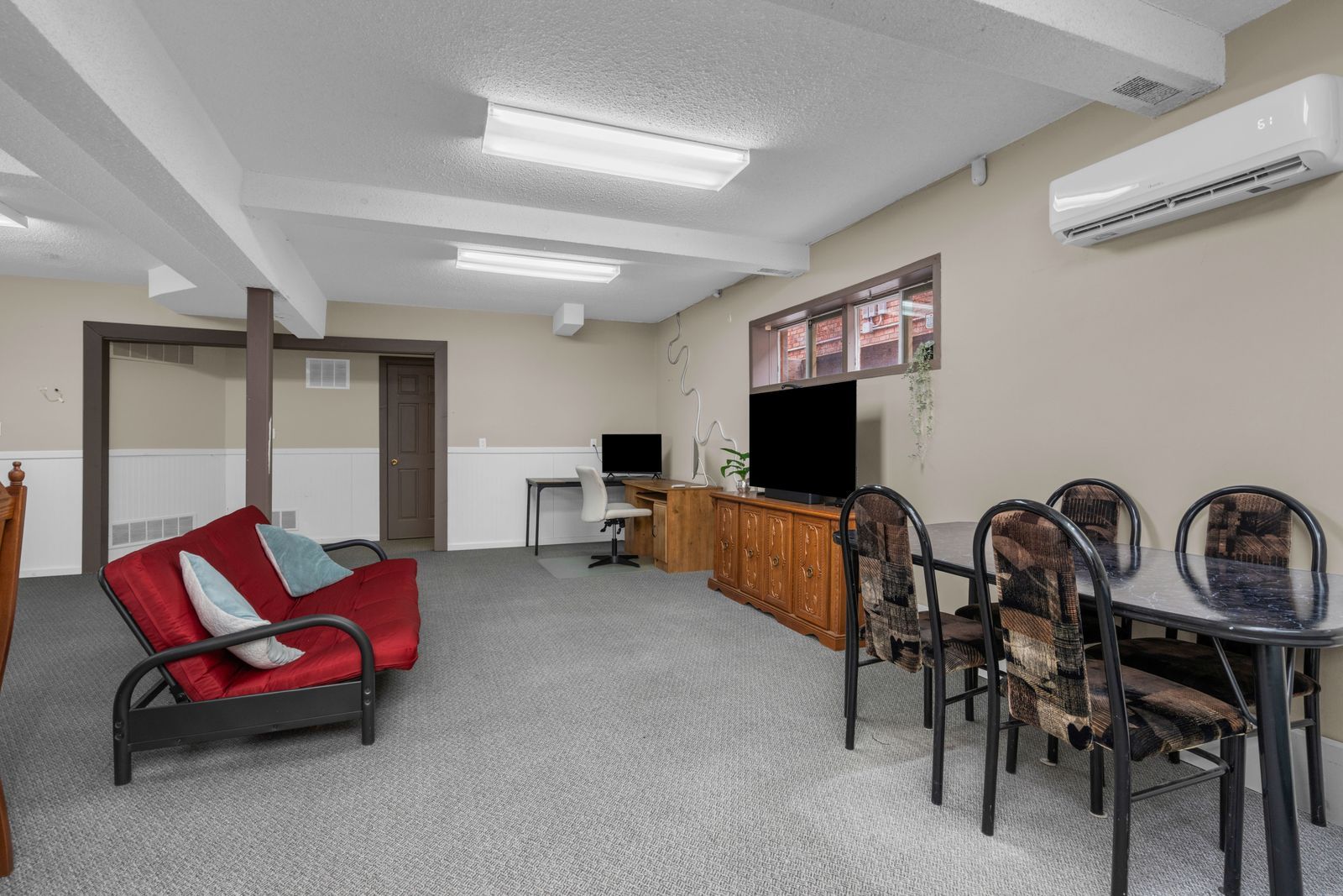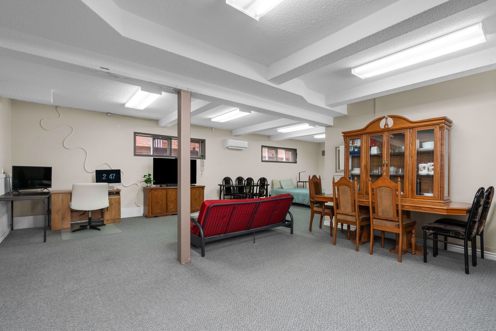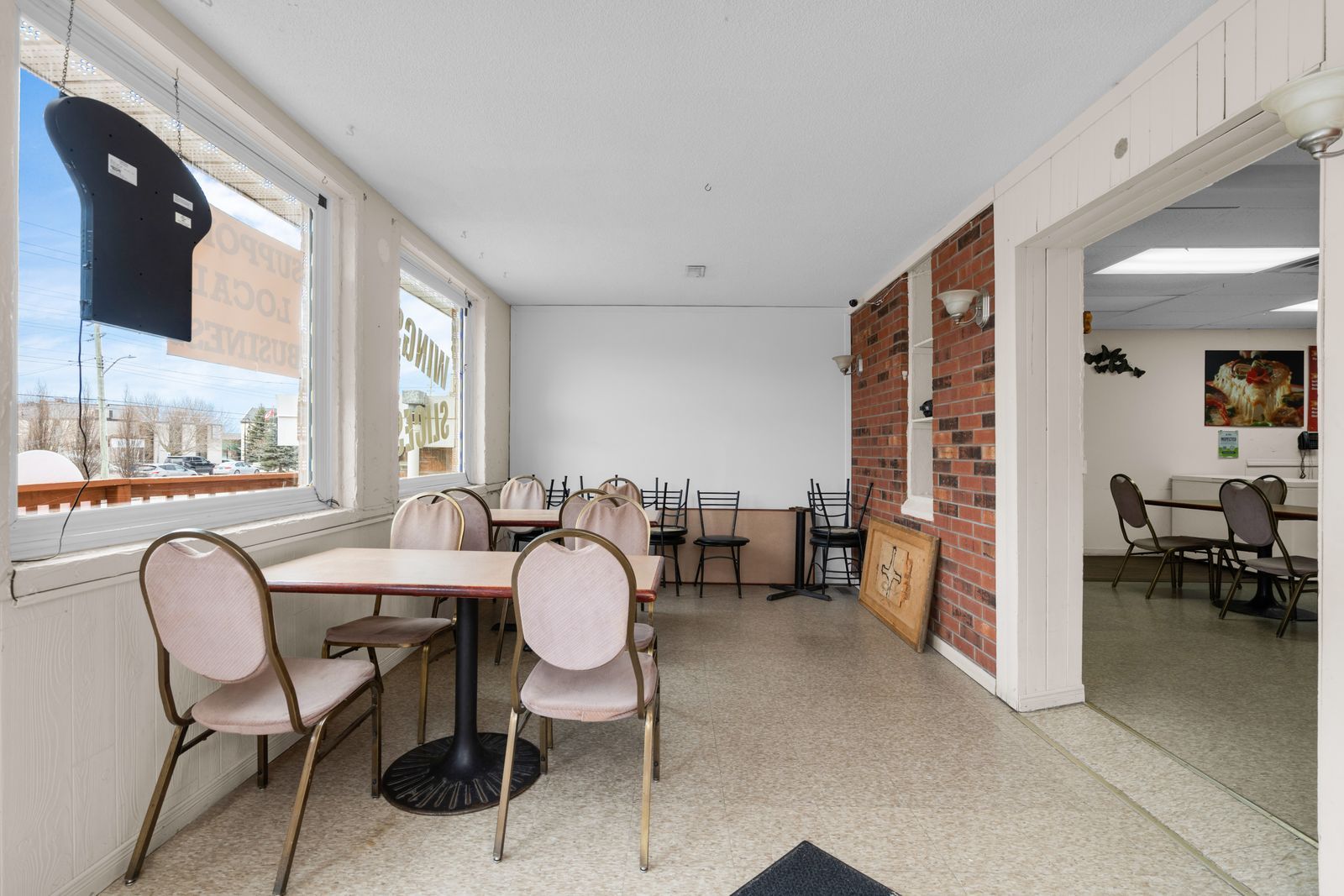 Flexible mixed-use building with downtown exposure, fully equipped commercial space, & upper living quarters! Positioned in the heart of downtown elmvale, this mixed-use commercial building presents a strategic opportunity for investors and business owners seeking visibility, flexibility, and rental potential in a prominent downtown location. Set along a well-travelled corridor, this property benefits from steady local traffic, seasonal cottage country flow, and two-street access. Cg zoning opens the door to a range of permitted uses, including restaurant or take-out, bakeshop, retail, personal service, office, clinic, and more. The main level, previously operated as a successful pizza shop, features a commercial kitchen with included equipment, multiple dining areas with generous seating space, and two washrooms. Upstairs, spacious residential quarters with two bedrooms, one full bathroom, and a private deck create flexibility for owner occupancy or future rental use. A finished basement adds even more usable space with a den, office area, extensive storage, and two bathrooms, while parking for 12 vehicles, three hot water tanks, multiple furnaces, and 400 amp service further strengthen the long-term value of the property. This is a smart downtown elmvale opportunity for investors and business owners seeking a well-positioned property with commercial presence and residential versatility.