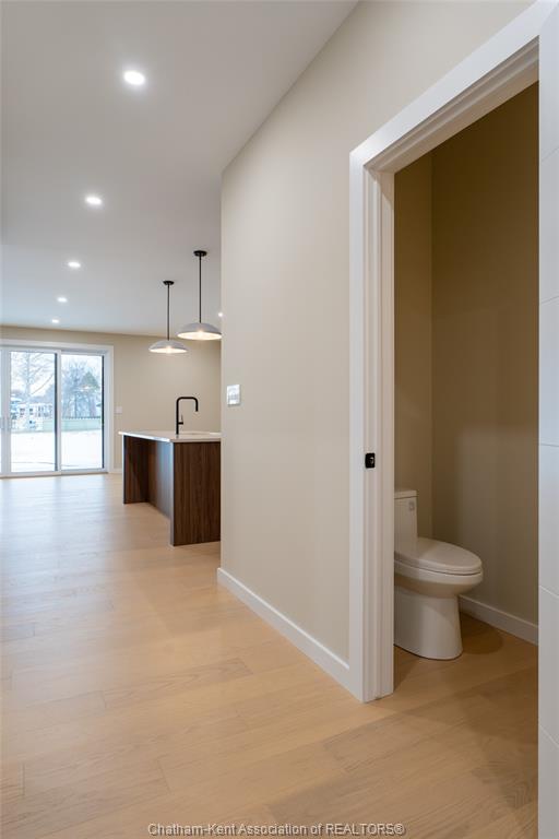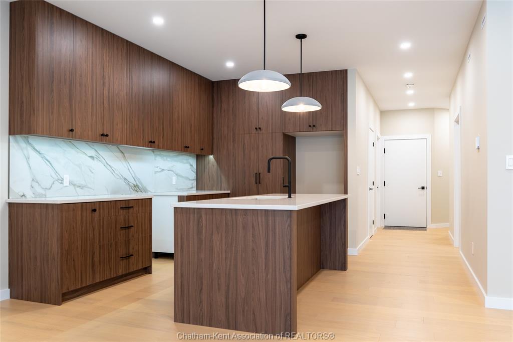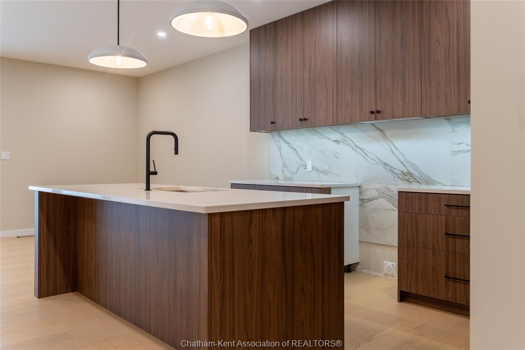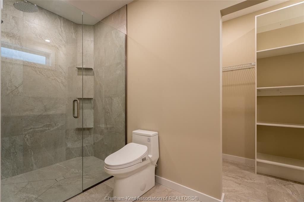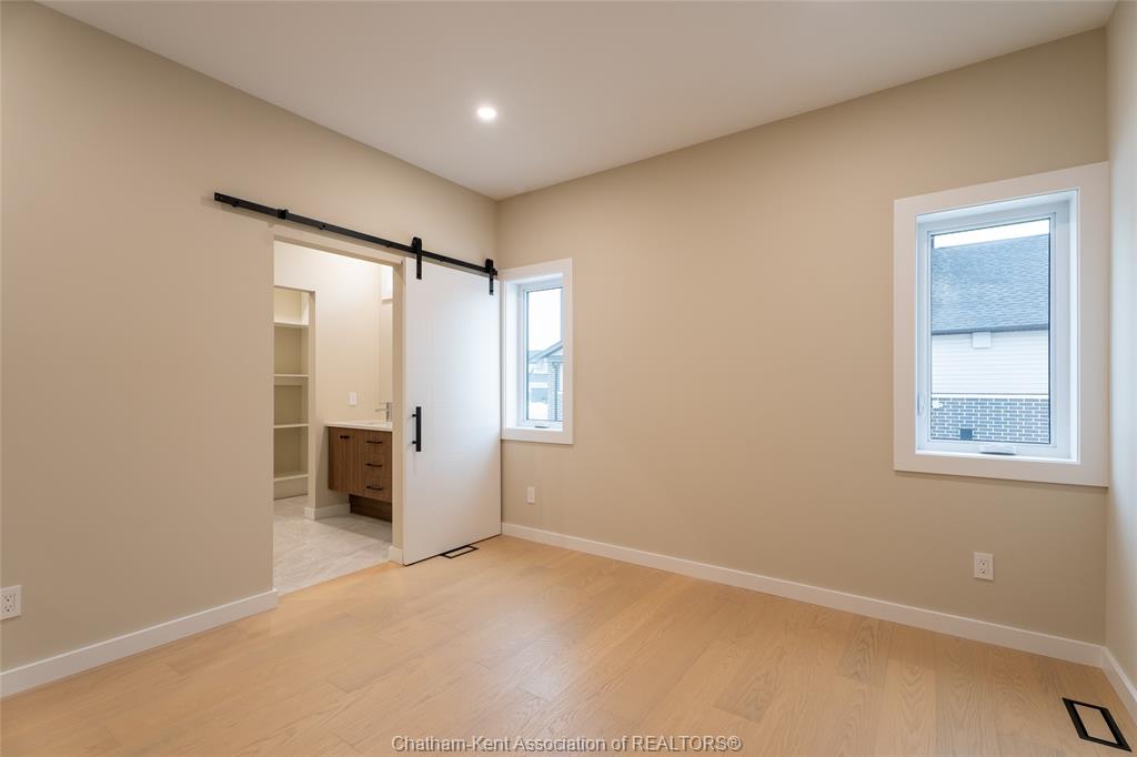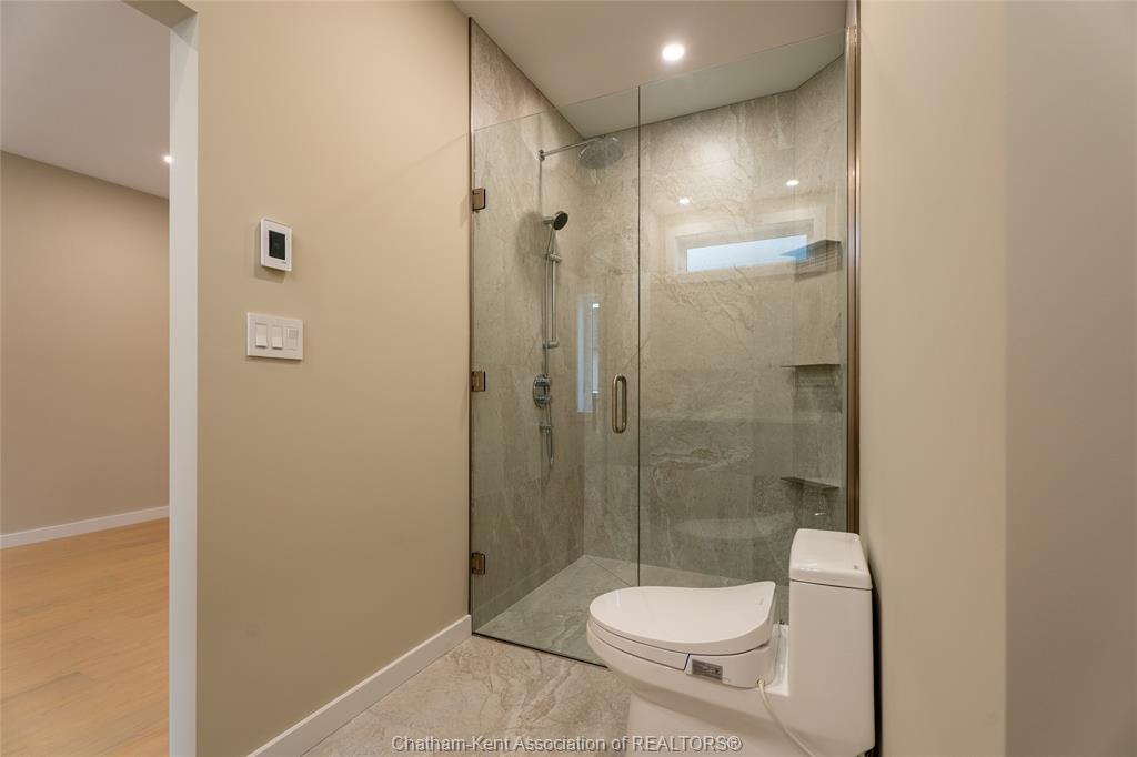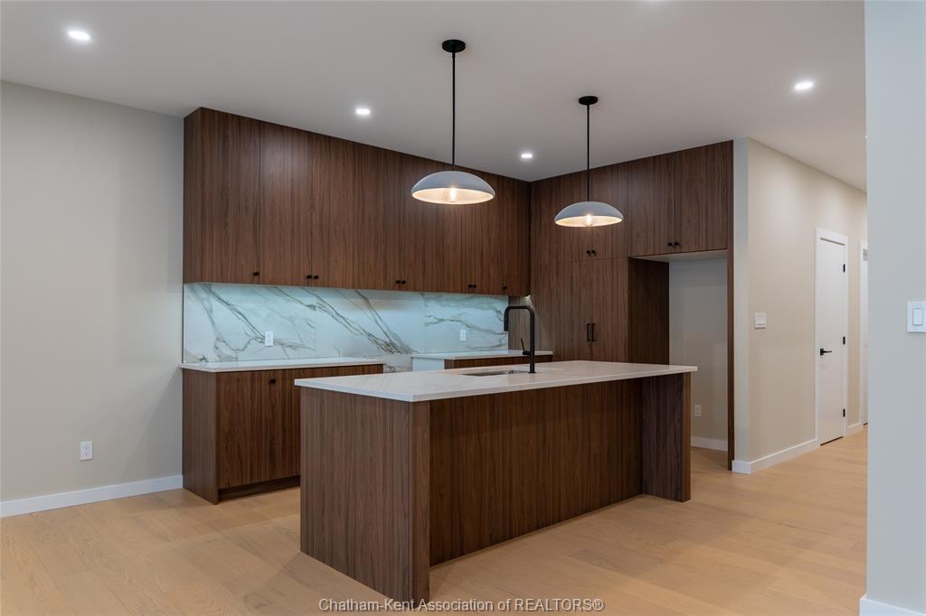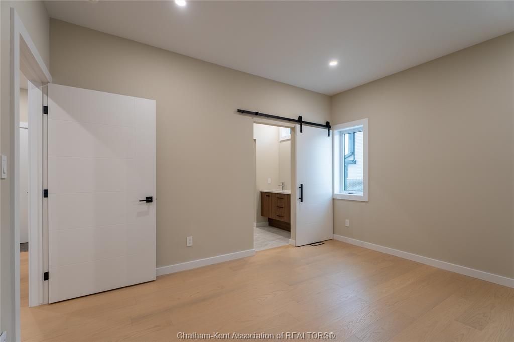Brand new ranch-style home showcasing the epitome of modern design and everyday convenience. Thoughtfully finished with numerous custom details, including live-edge shelving and a custom front bench that set the tone the moment you arrive. The main level offers a stunning open-concept layout with cathedral ceilings and an impressive 18-foot patio door leading to a covered rear porch. The jaw-dropping kitchen features sleek modern cabinetry, quality finishes, and a massive walk-in pantry—perfect for entertaining and everyday living. A convenient main-floor powder room adds to the functionality. The primary bedroom retreat is located on the main level and includes a full ensuite with heated floors, a no-touch toilet, and a spacious walk-in closet. The main-floor family room also features an electric fireplace, creating a warm and inviting space. A striking modern glass staircase leads to the fully finished lower level, offering a huge recreation room complete with an electric fireplace with multiple settings, a bar and sink area, two large bedrooms, and a third full bathroom—ideal for guests or family living. This home blends contemporary style with comfort and thoughtful design throughout. A must-see new build that truly stands out.
