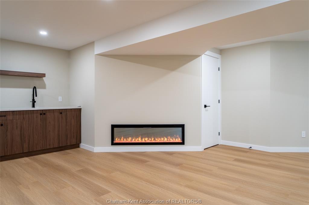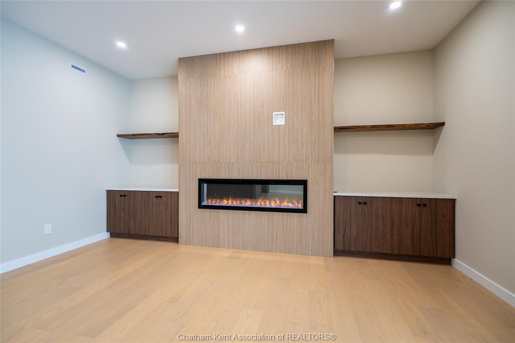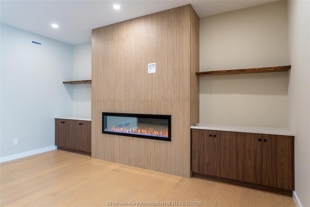 • Main-floor family room includes an electric fireplace for added warmth.