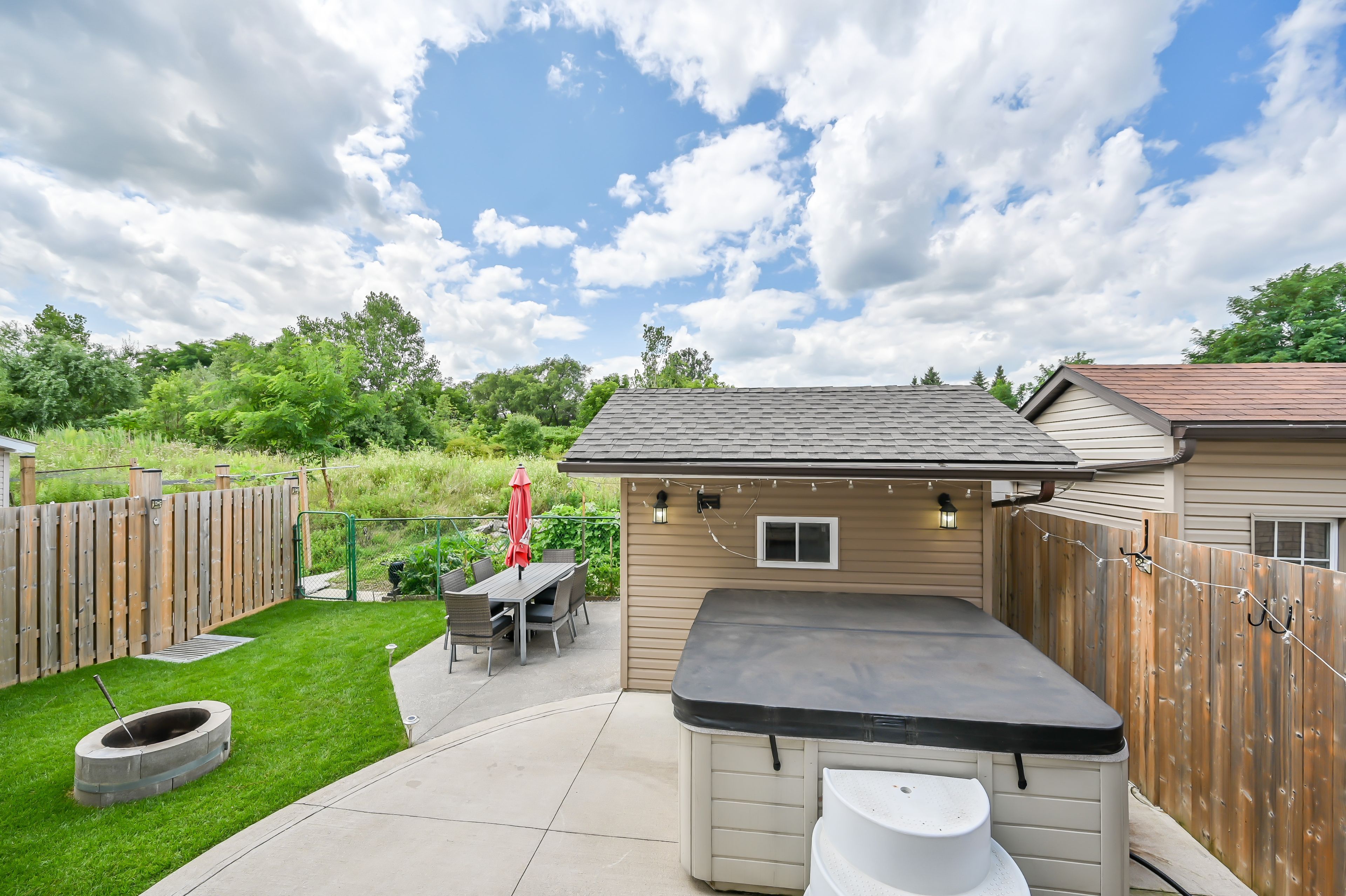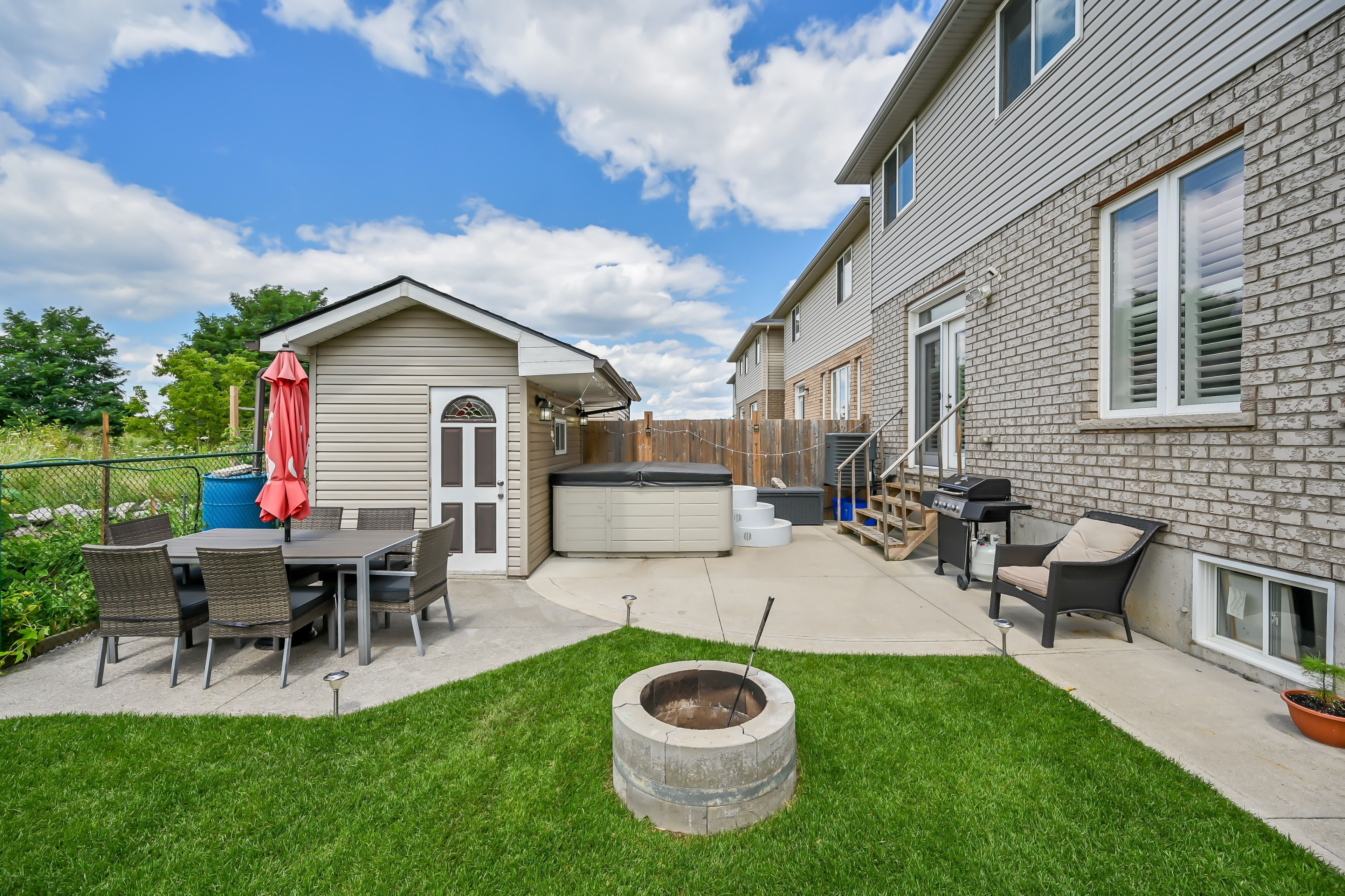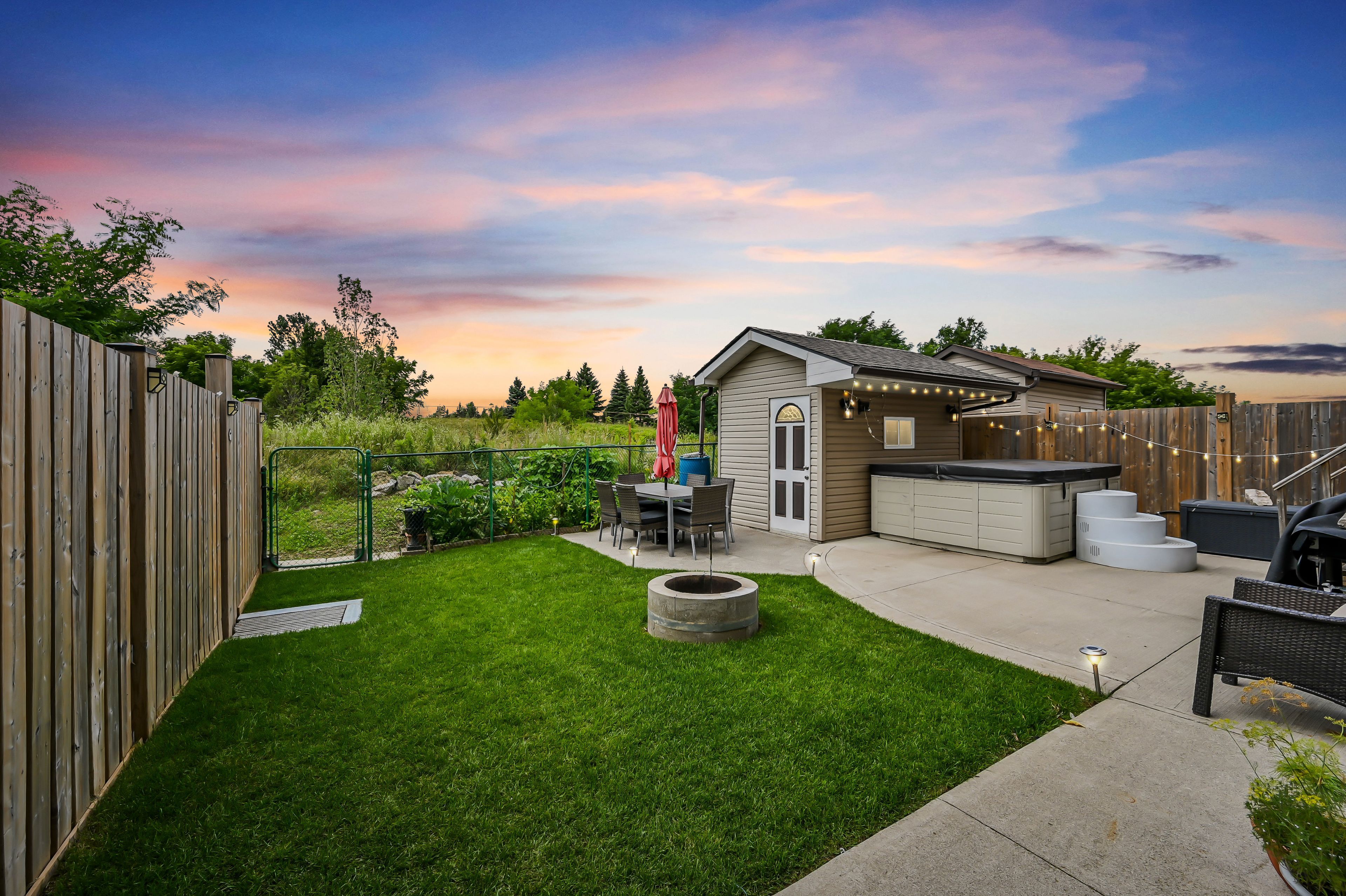 • West-facing backyard with patio, perfect for sunsets and family gatherings.