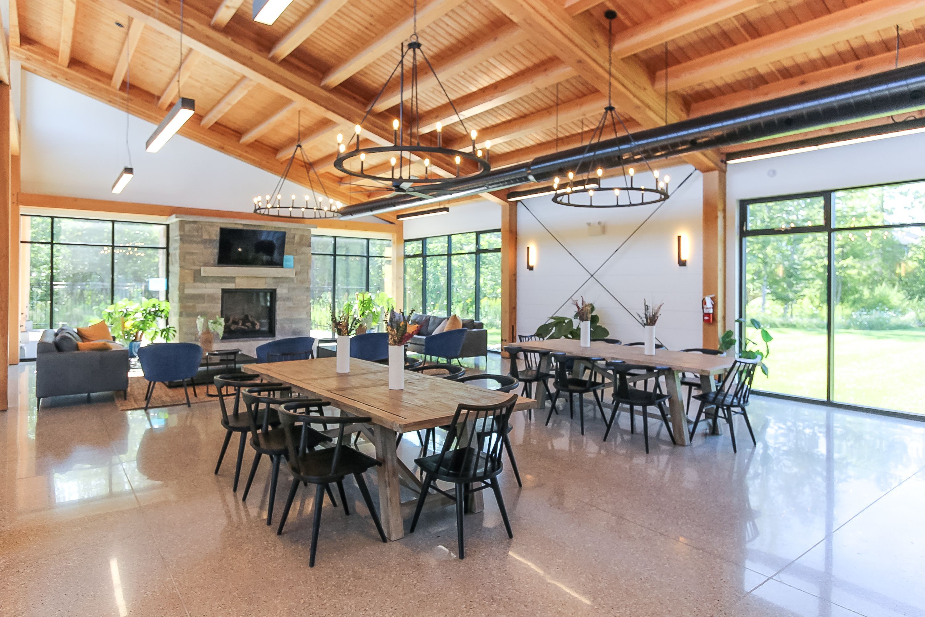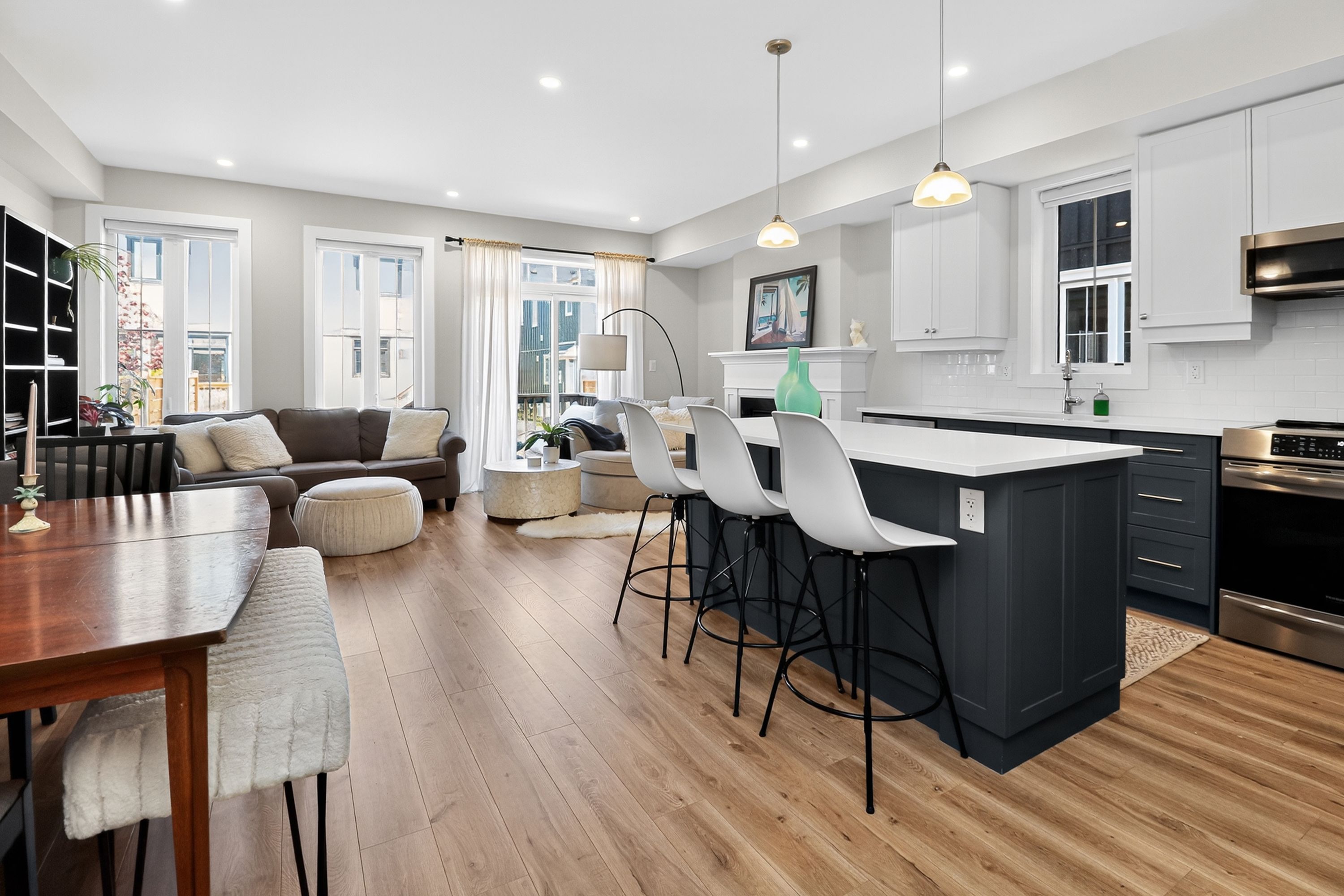 • Light-filled open-concept living spaces with a cozy gas fireplace.