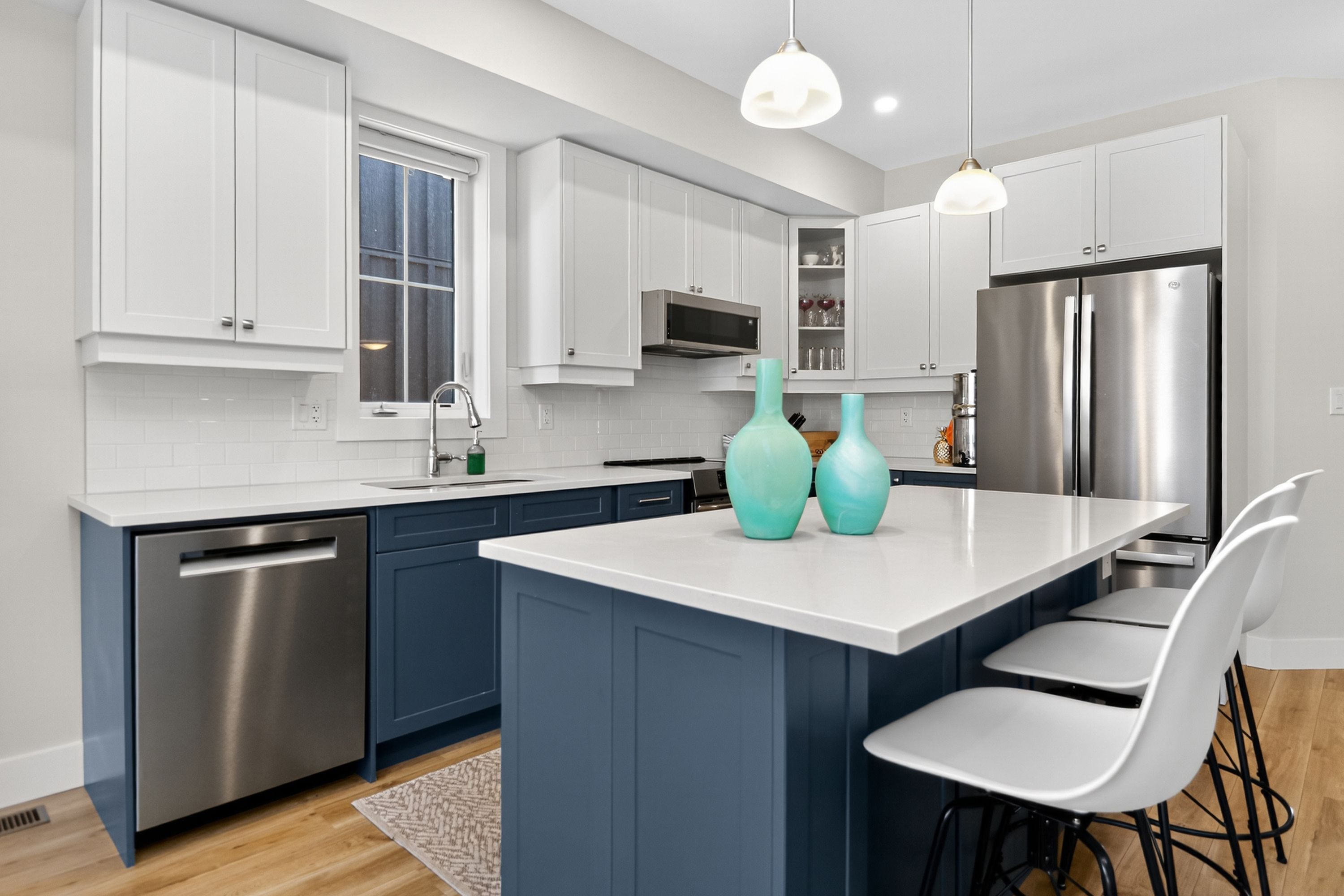 • Gourmet kitchen with high-end appliances and quartz countertops.