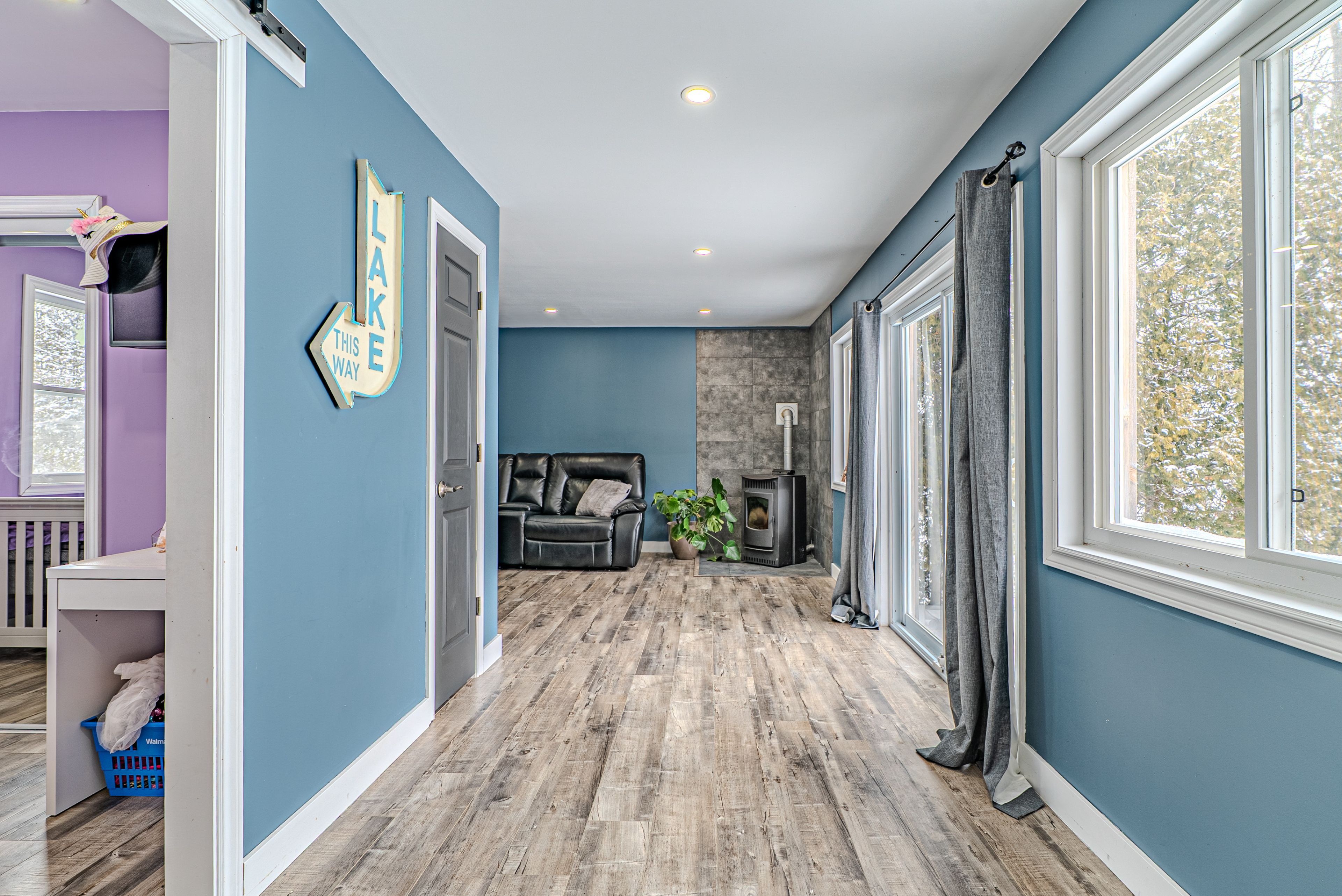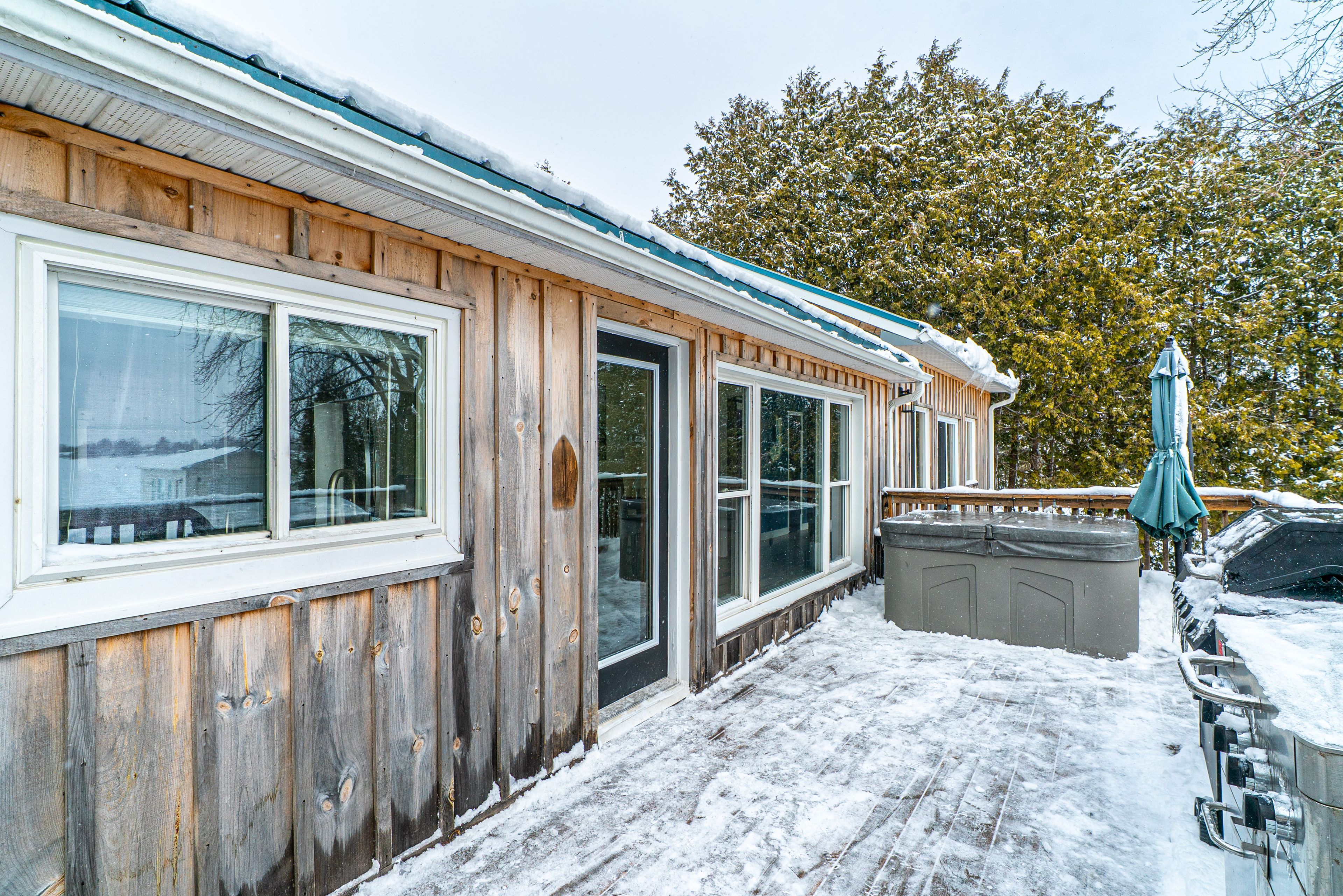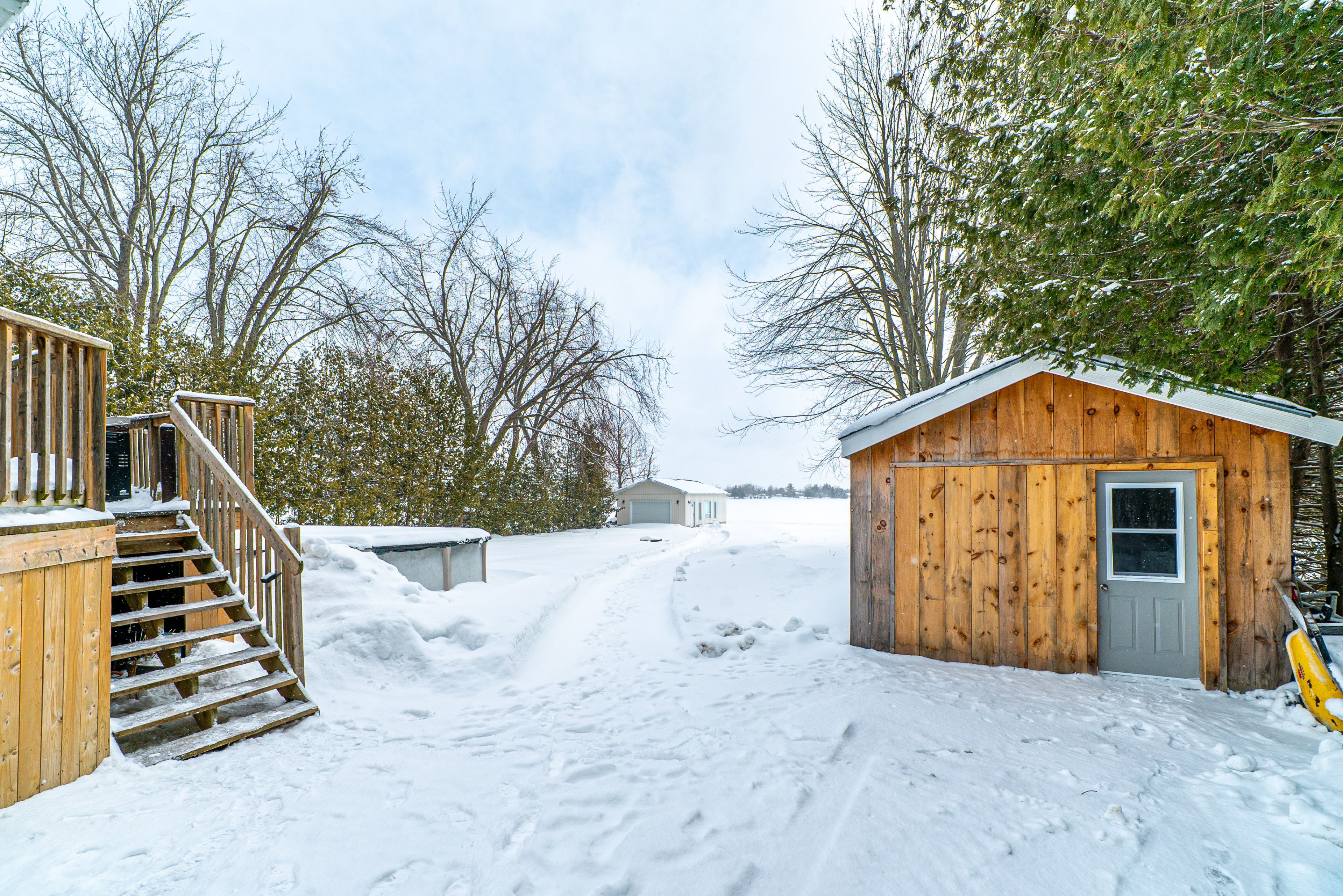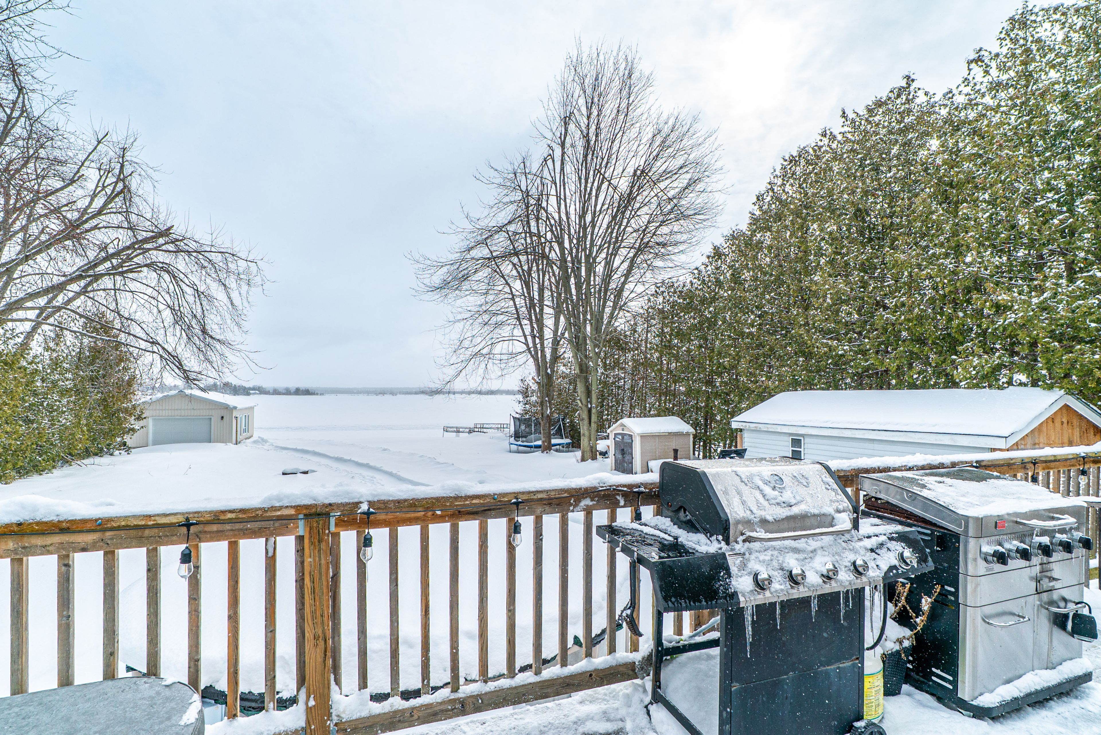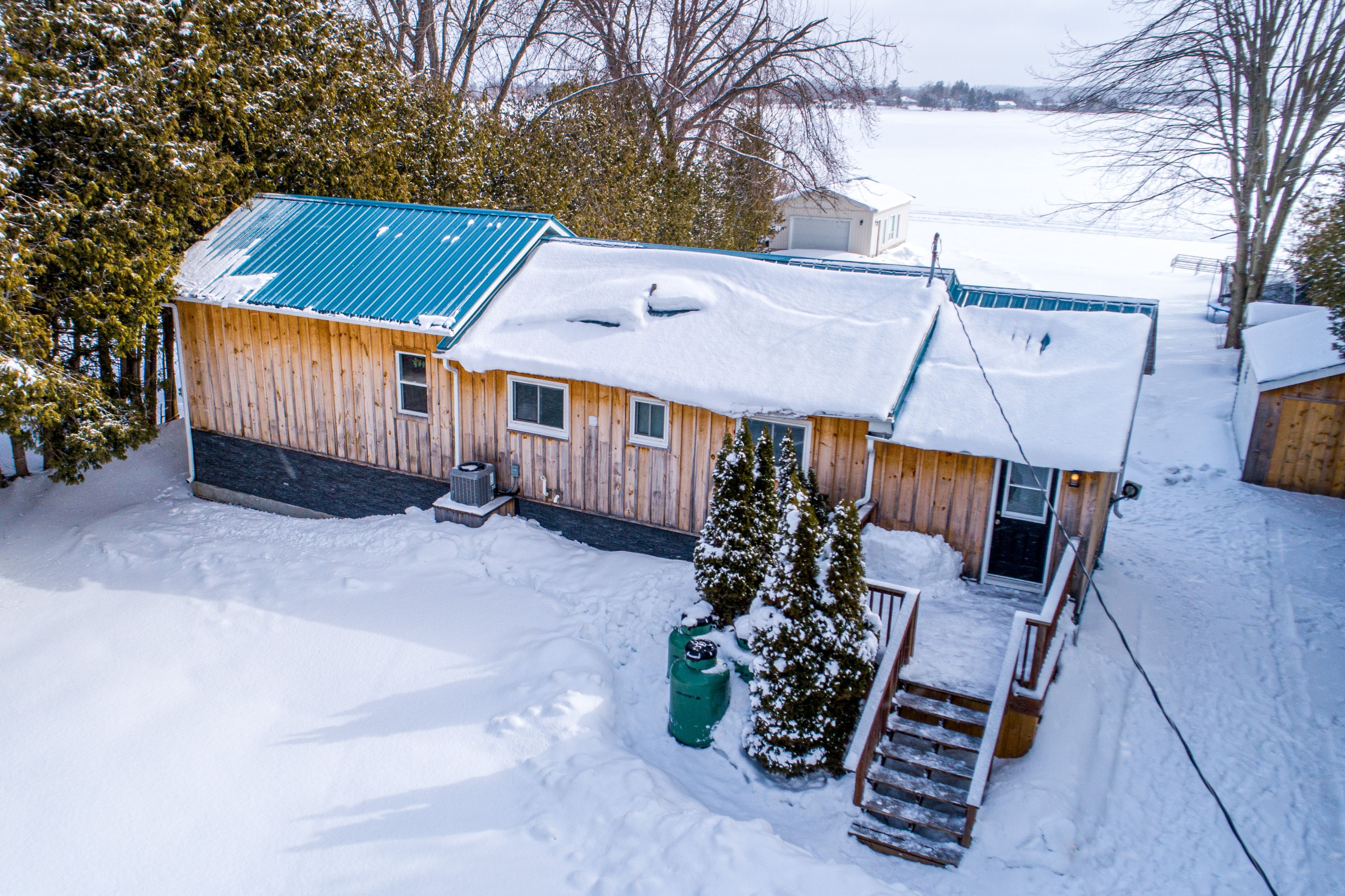 Rare opportunity on canal lake offering year round waterfront living on over half an acre with a rare 1,200 sq ft heated shop at the front of the property. A standout feature seldom found on waterfront homes. This bright, sun-filled bungalow is designed for relaxed lakeside living with stunning water views from the expansive deck, perfect for enjoying the hot tub or pool while overlooking the lake. The double-wide dry boathouse has been converted into an incredible waterfront hangout featuring two overhead doors, insulation, drywall, pot lights, flooring & pellet stove, creating the ultimate lakeside entertaining space. Inside, extensive 2021 upgrades include new ductwork, furnace, central air, quartz countertops, appliances, backsplash, sink, faucet, painted cabinetry, light fixtures, flooring and a beautifully updated bathroom, along with a 500 sq ft addition with pellet stove, living space, bedroom complete with large windows overlooking the lake. With direct access to the trent-severn waterway via canal lake, generous outdoor space and exceptional versatility for a home-based business, workshop or storage for vehicles and recreational toys, this property delivers the perfect blend of lifestyle, function and long-term value.