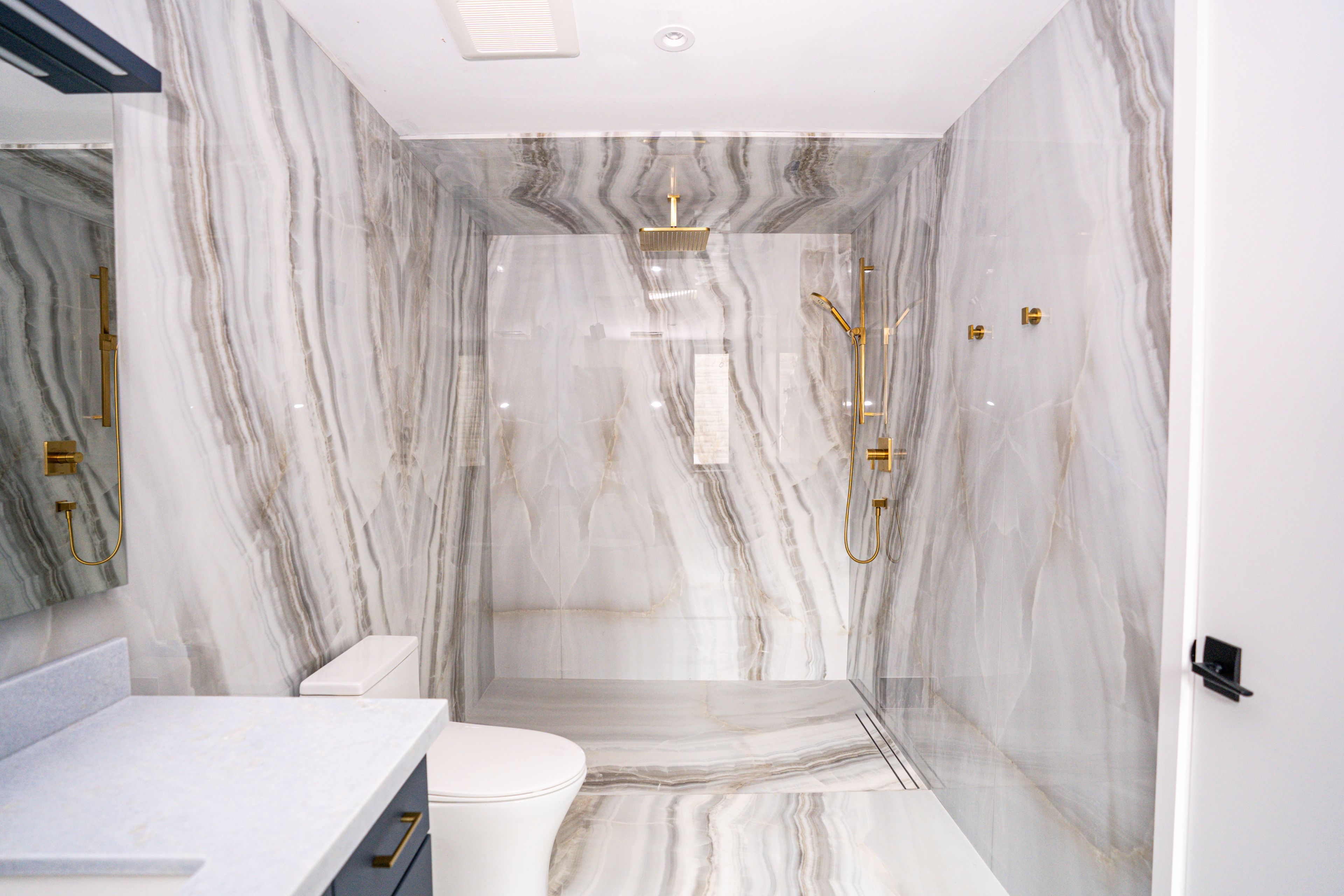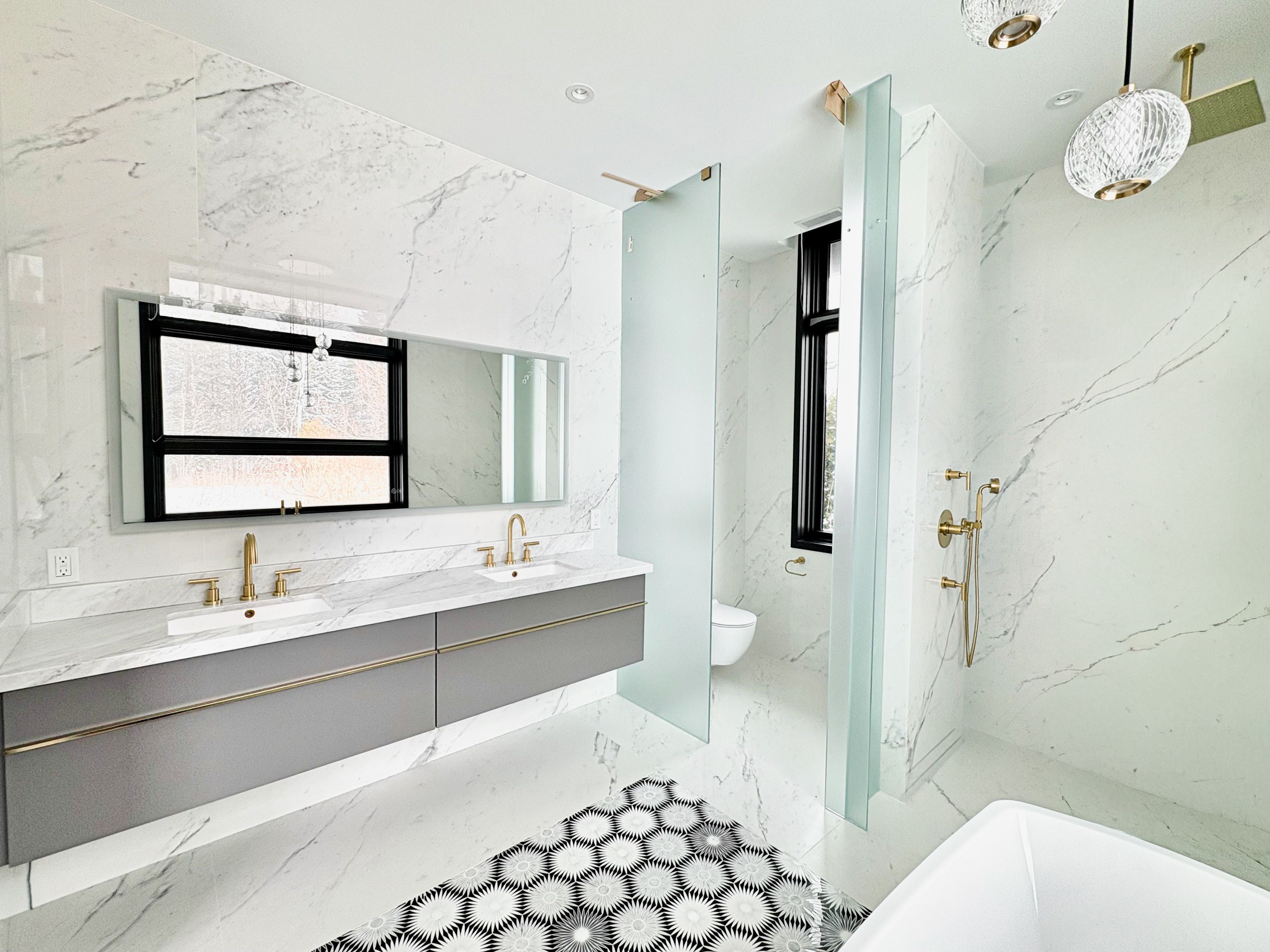 • Bright main living areas with floor-to-ceiling windows and heated tile surfaces.