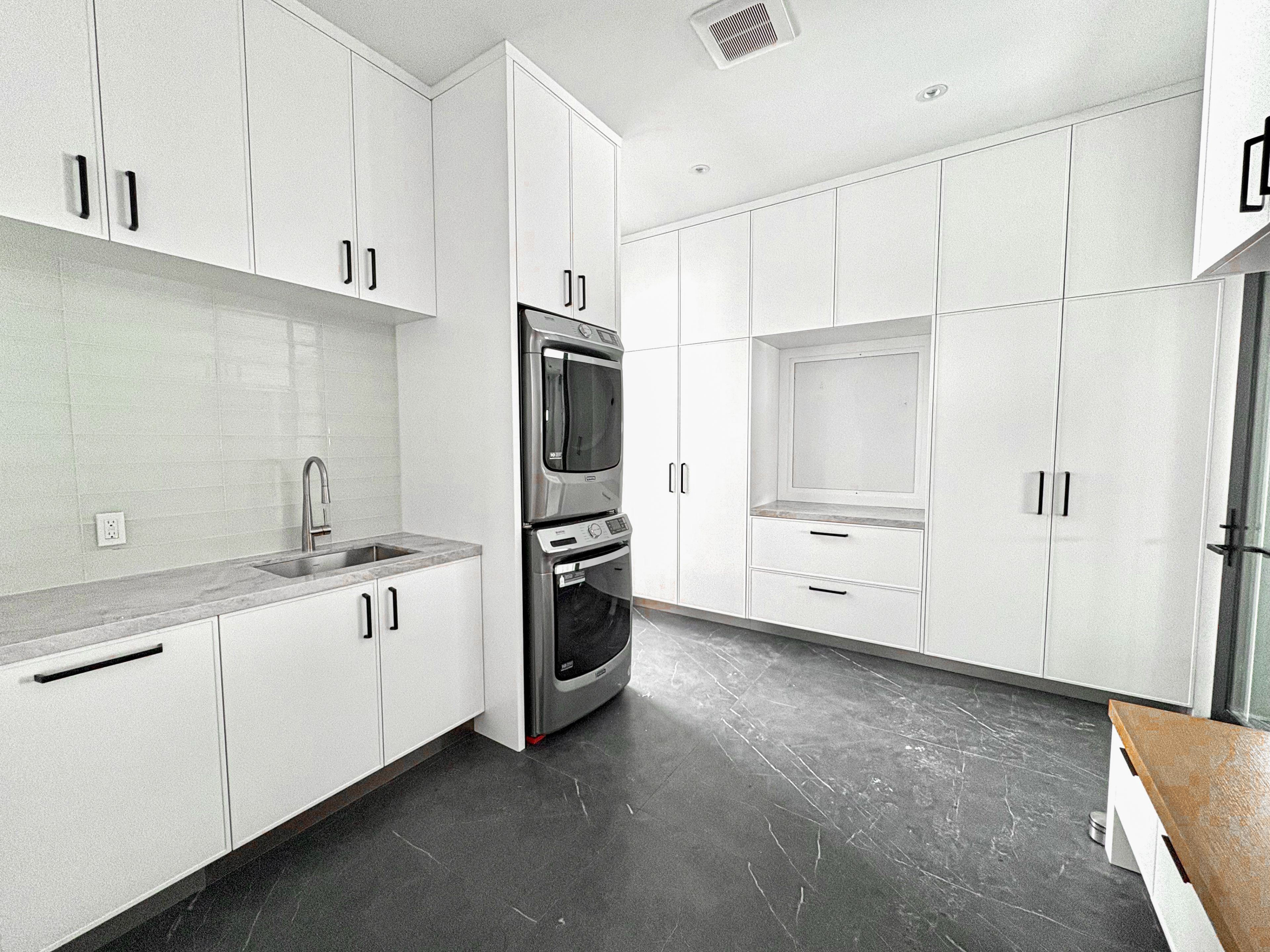 • High-end kitchen with custom cabinetry and a spacious walk-out pantry.
