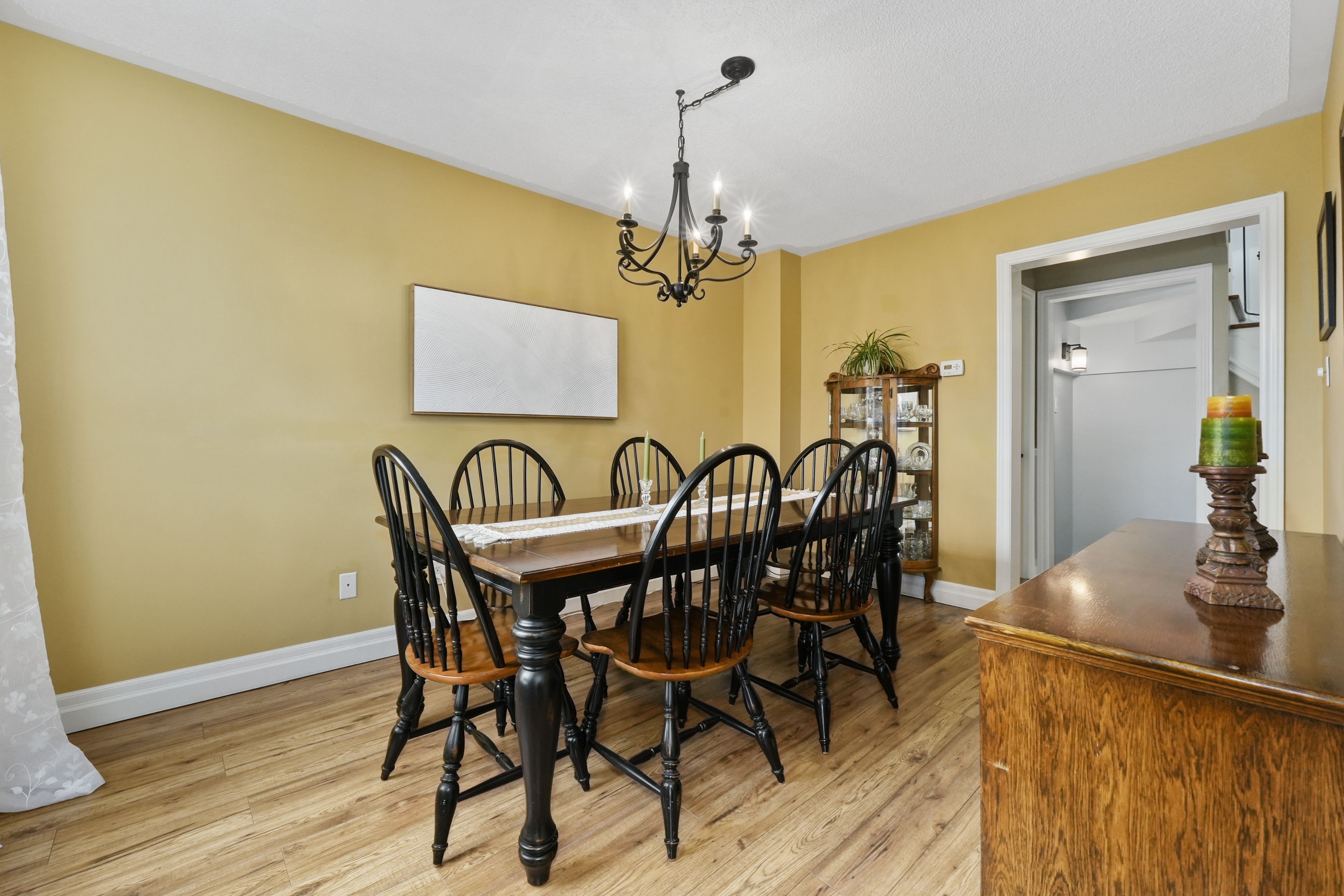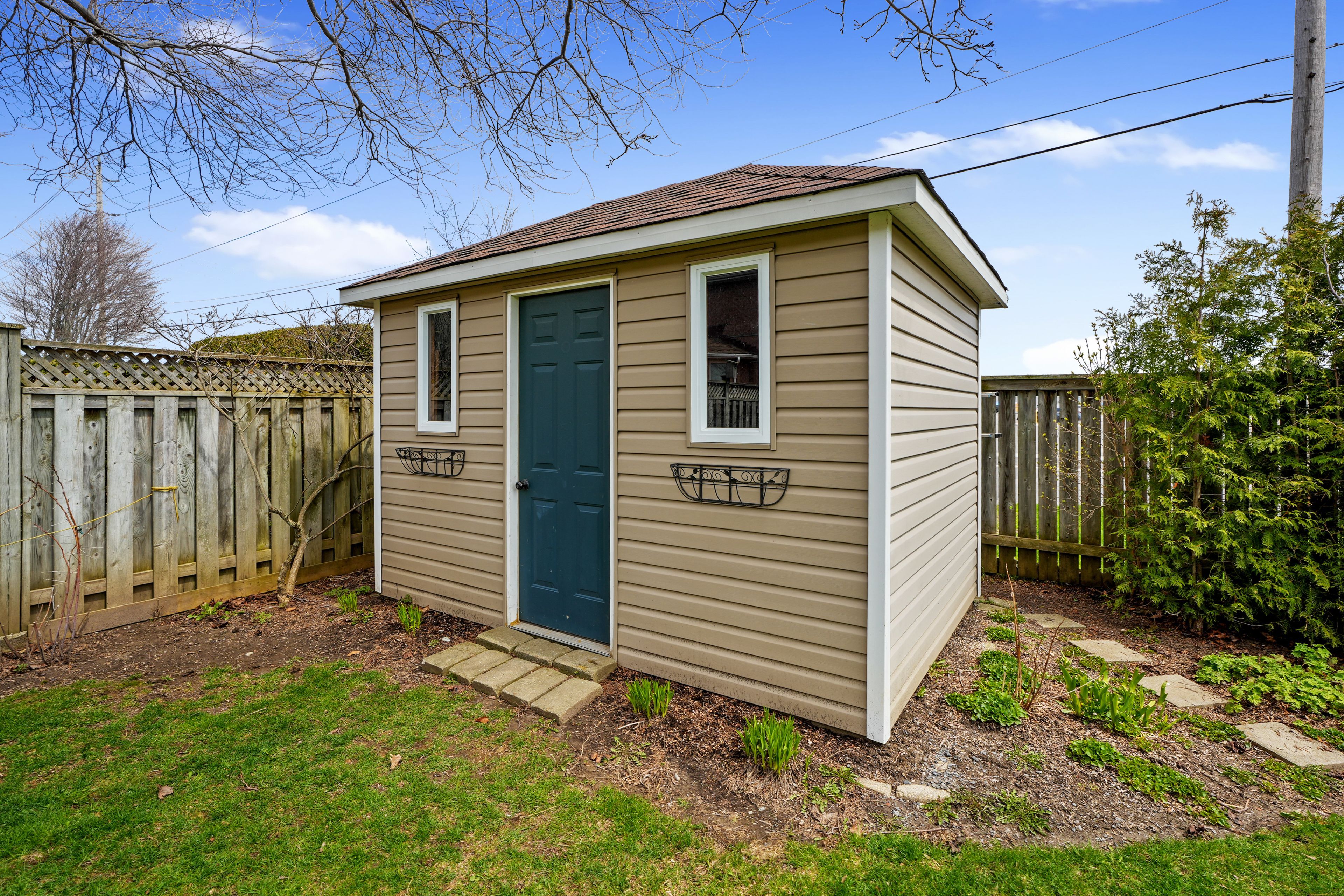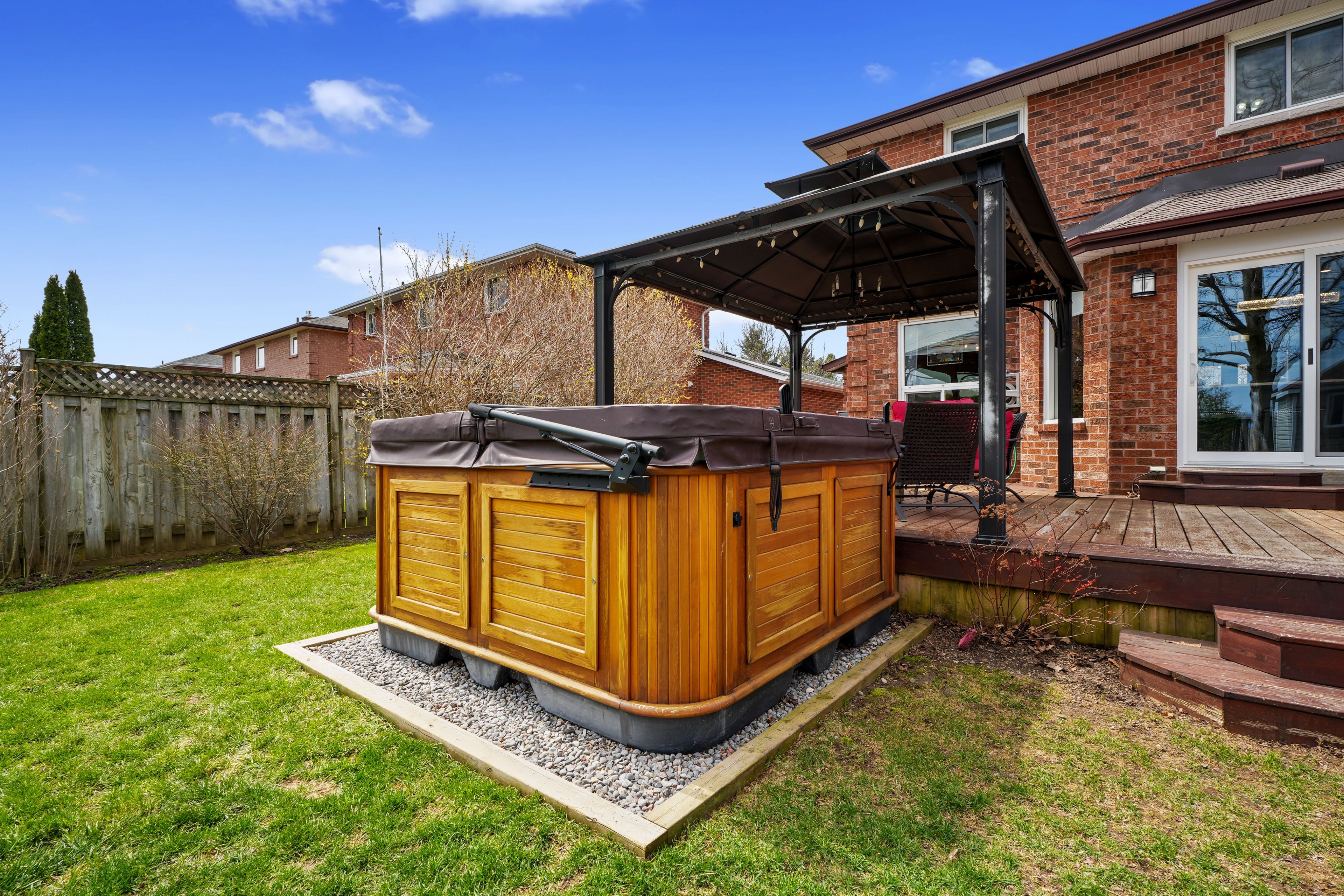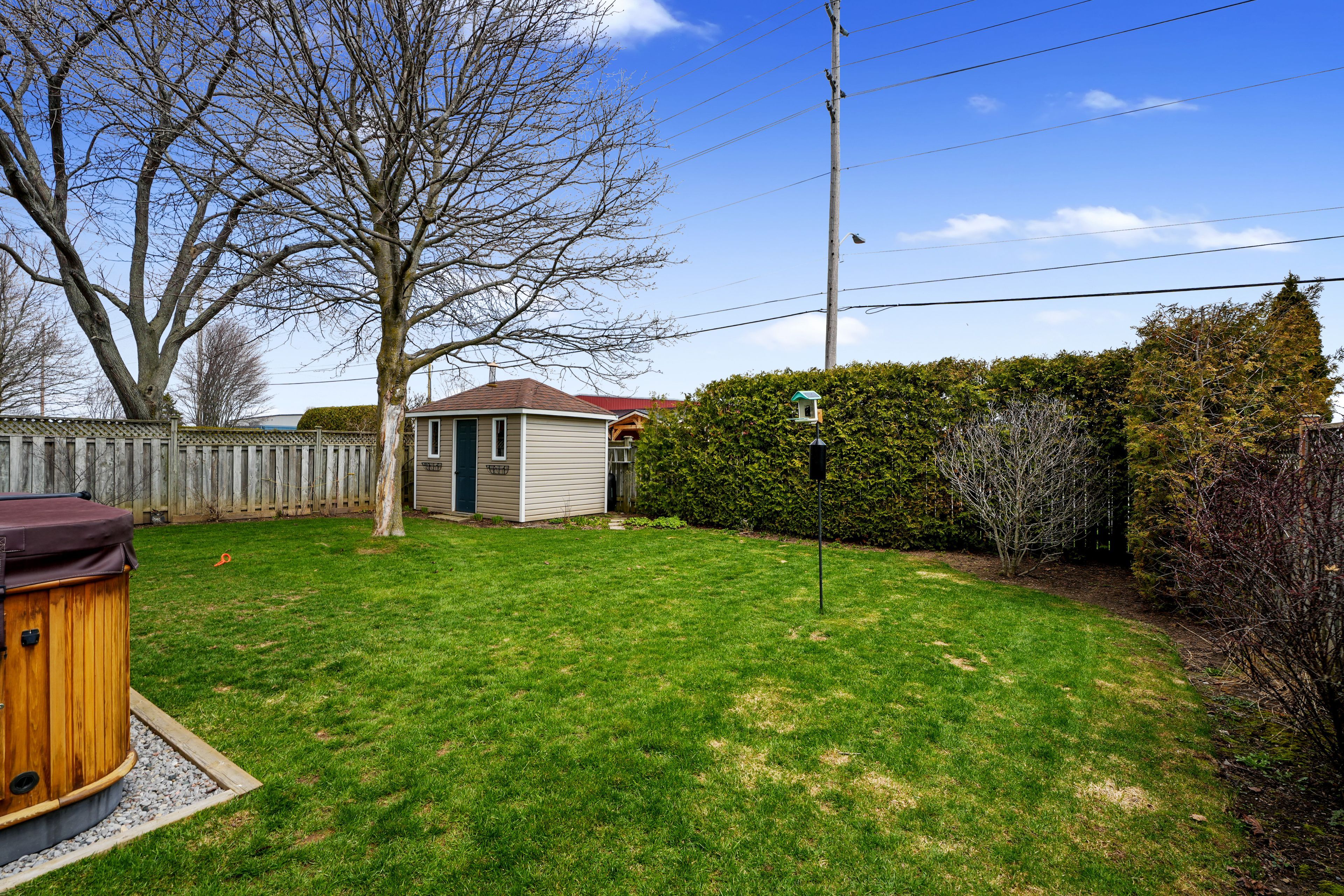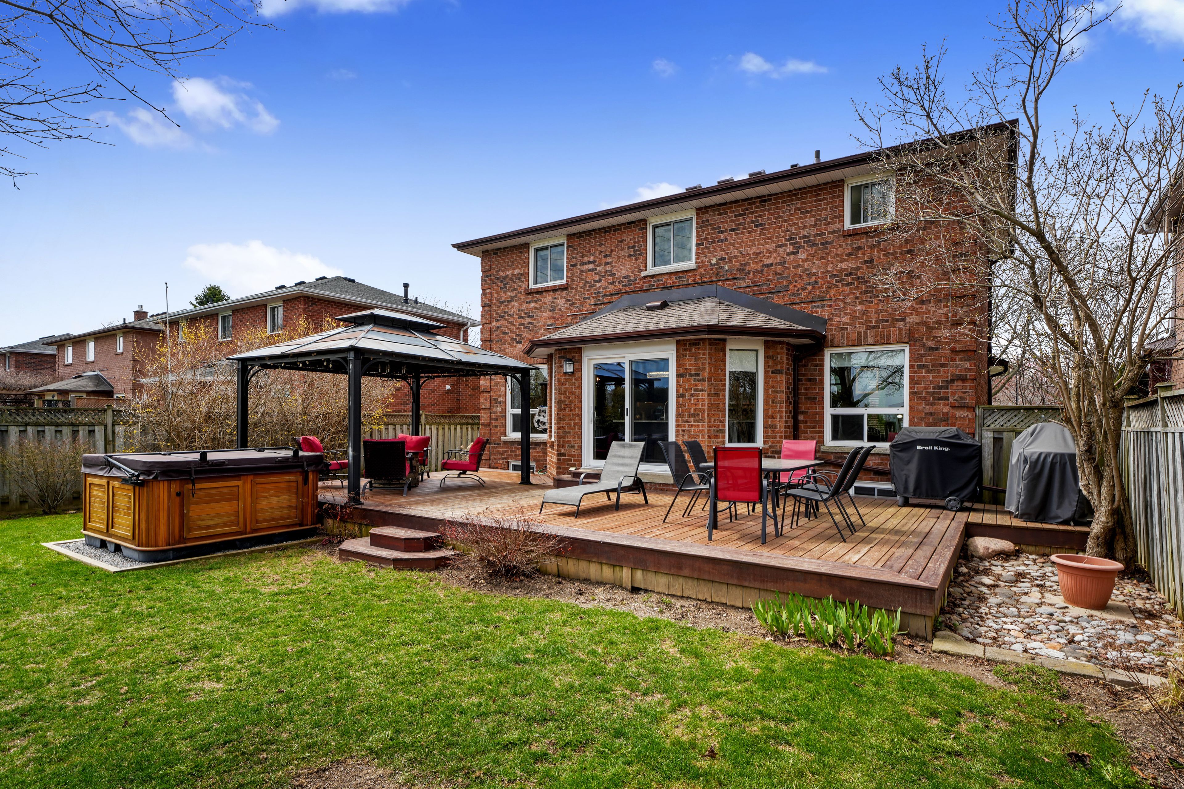 • Fully fenced backyard with mature trees, a large deck, and gardens.