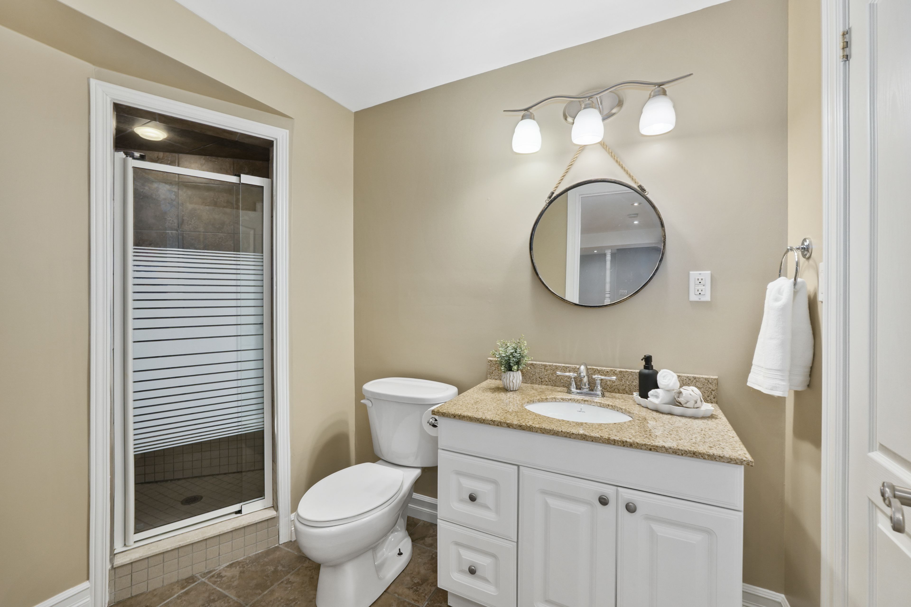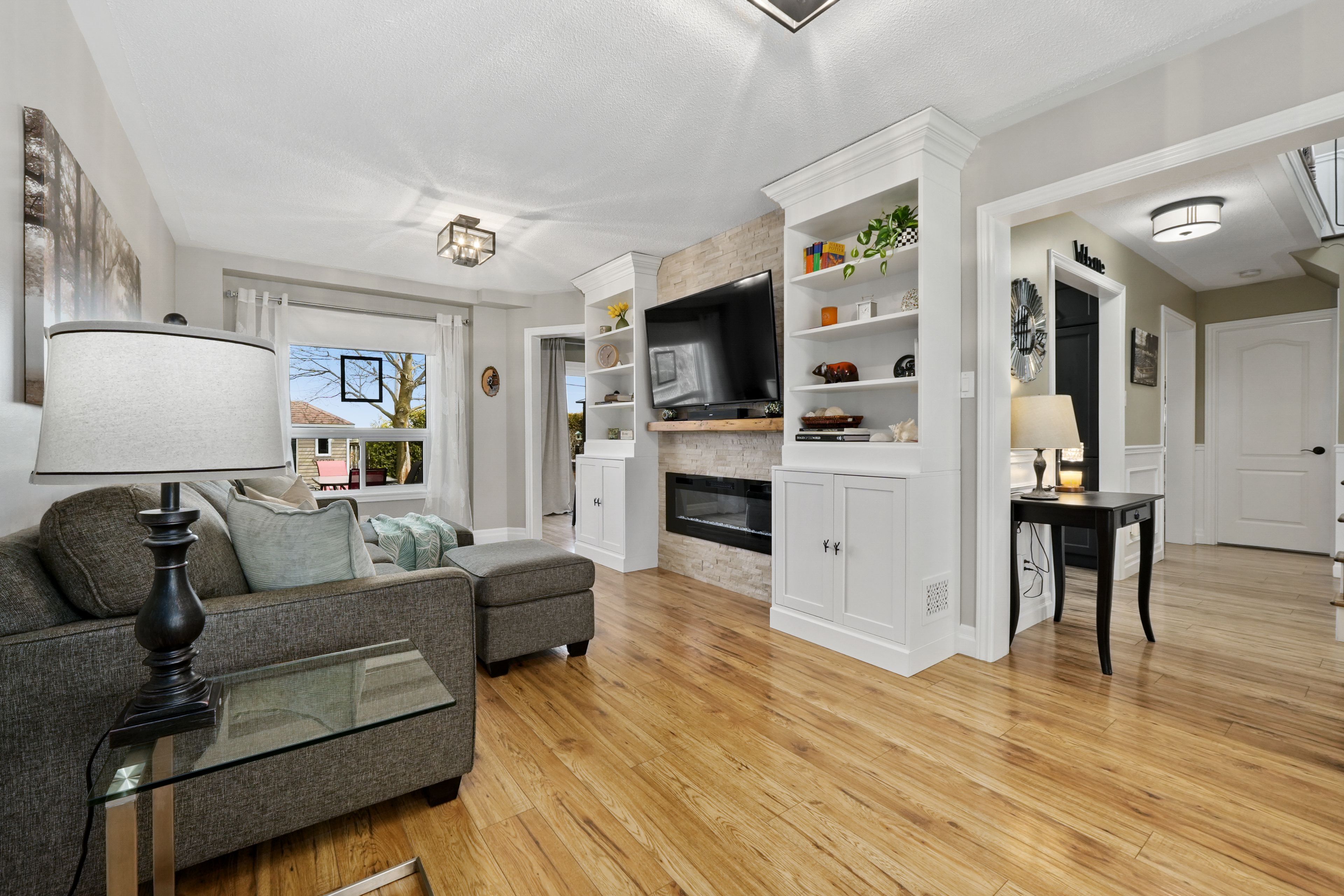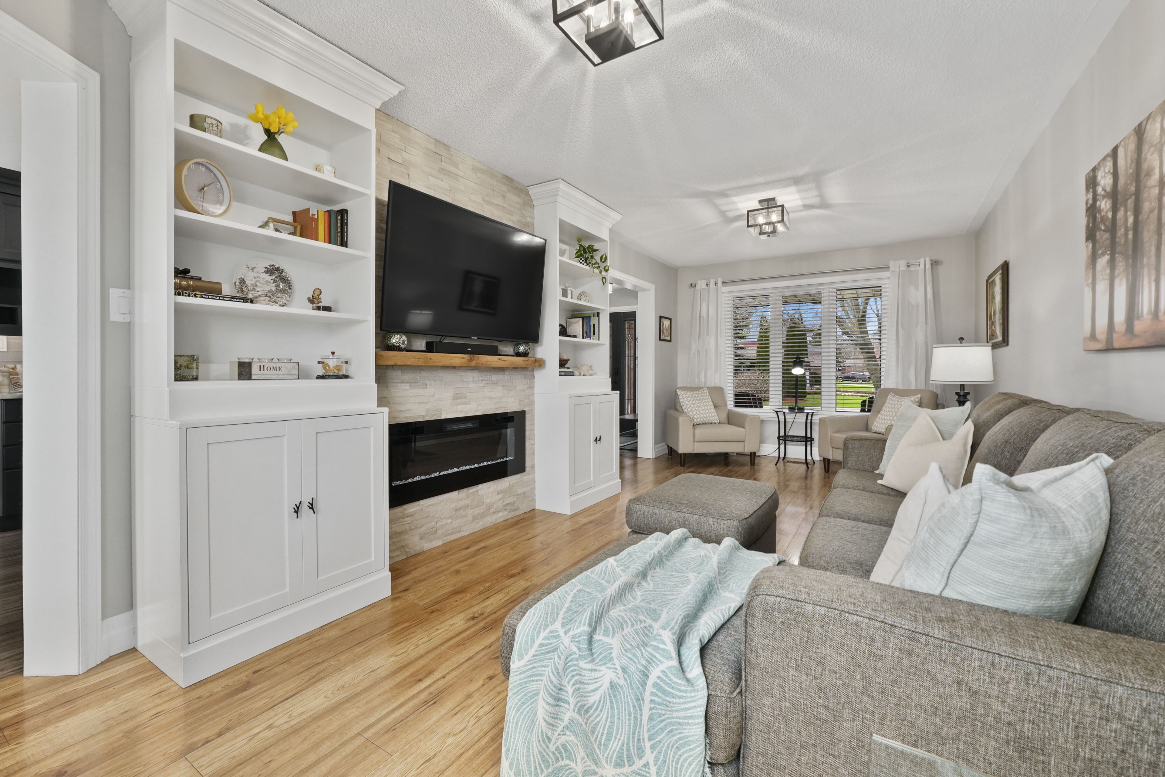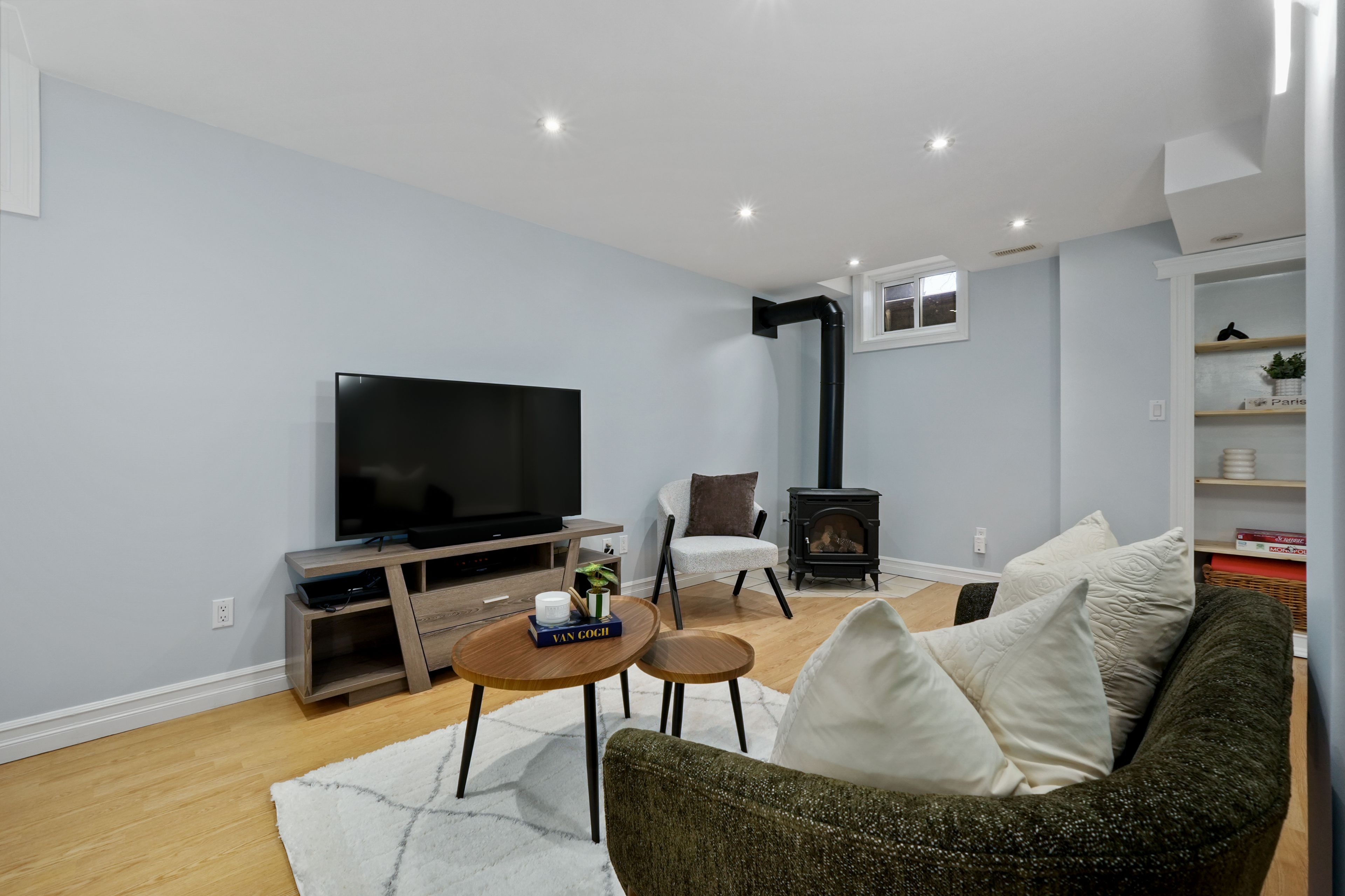 • Lower level recreation room with cozy fireplace, ideal for entertaining.