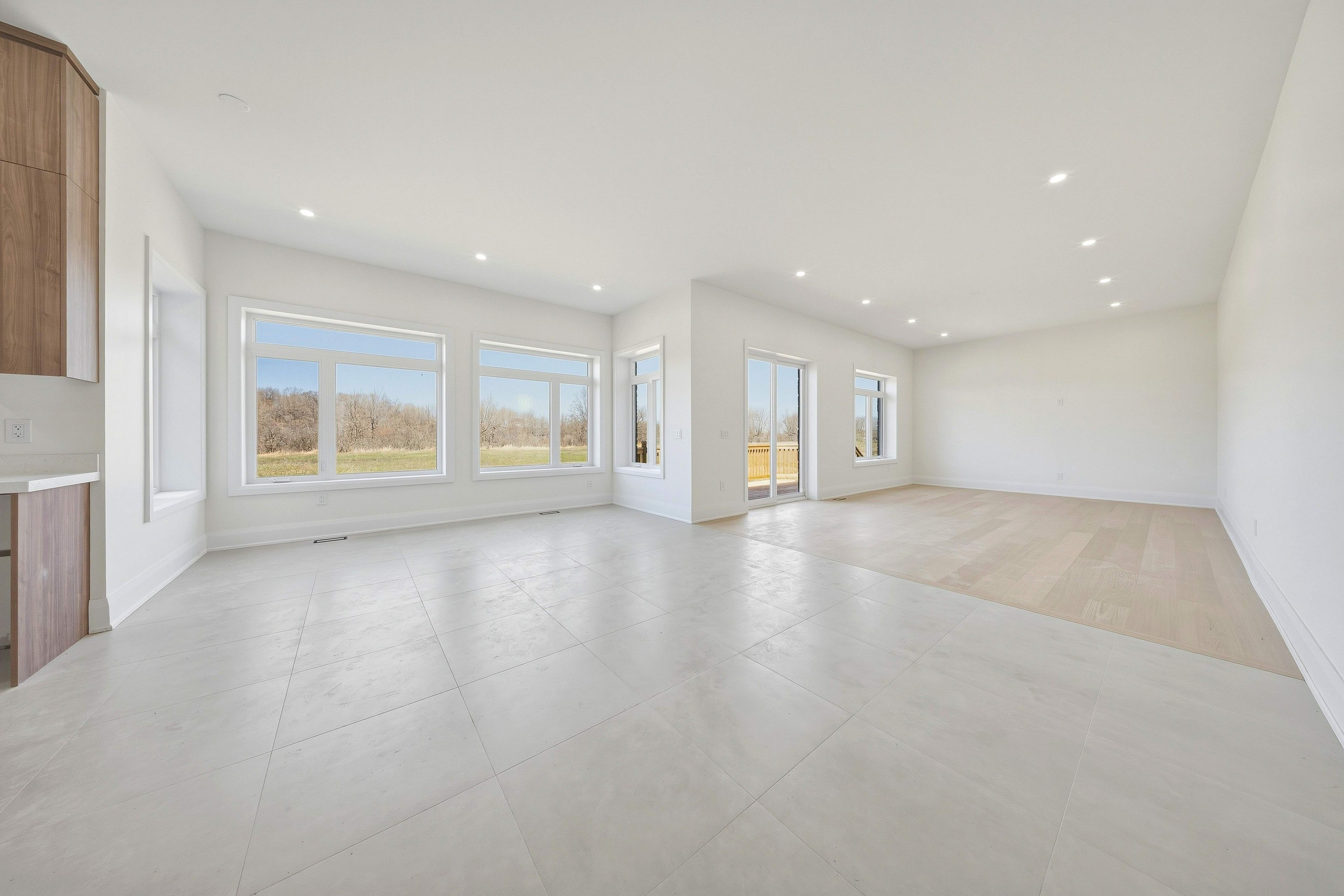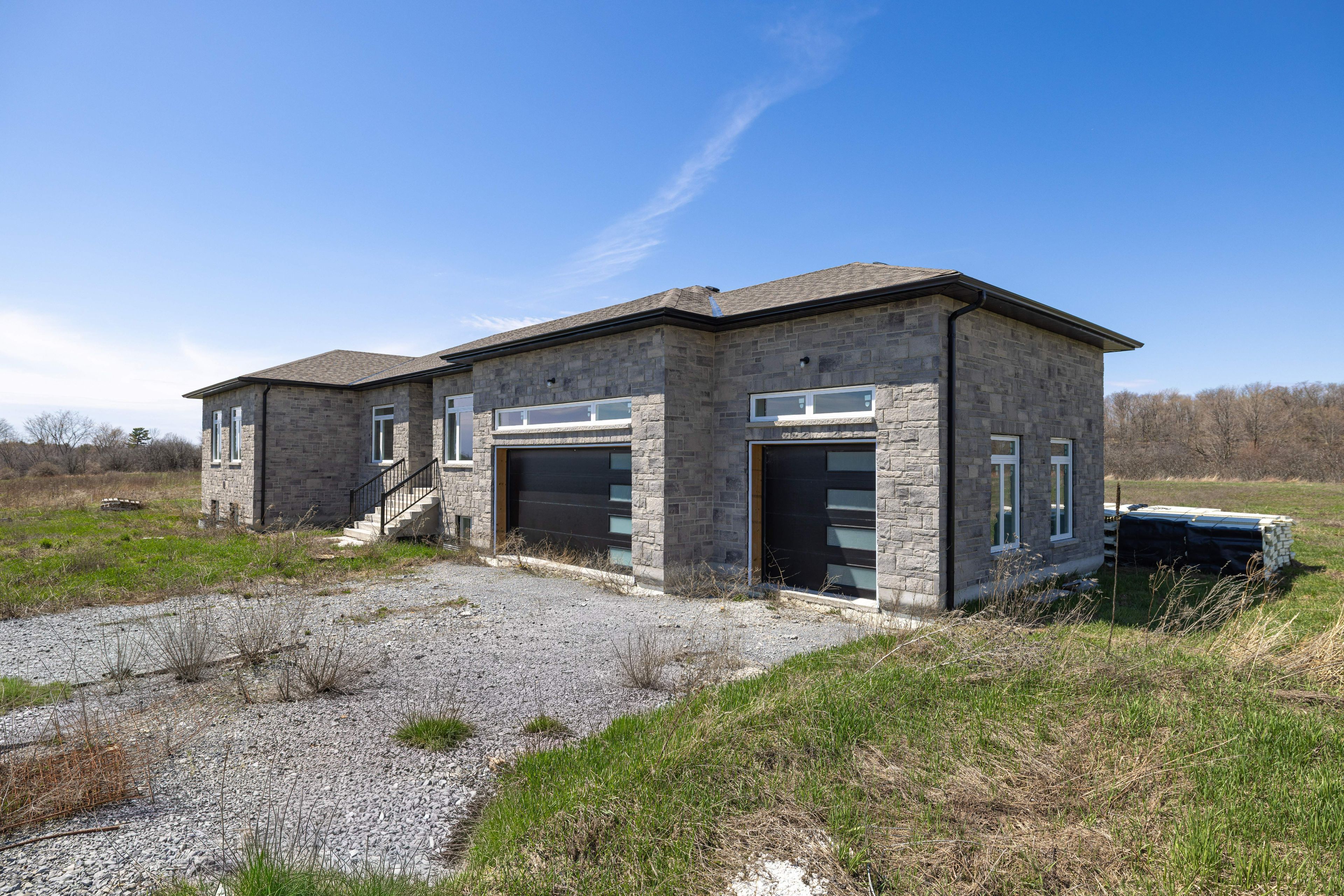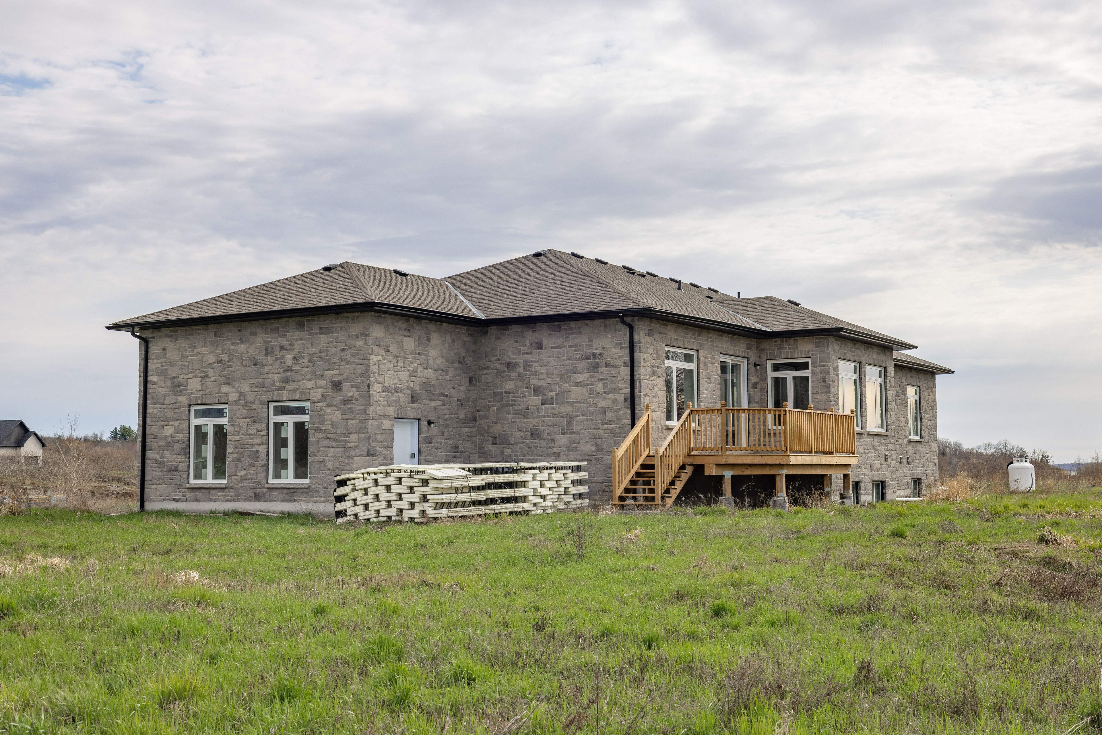 Located in gibraltar bay estates, one of kingston's newest waterfront estate communities, this brand-new elevated bungalow sits on just over 2 acres with frontage on the rideau canal. The main floor layout offers over 2700sqft with 3 bedrooms and 2. 5 baths including an ensuite and walk-in closet in the primary bedroom, 10ft ceilings throughout with many pot lights, a large kitchen open to an eating area and family room overlooking the backyard, a separate dining room, a living room and laundry room finish off the main floor. The bright and spacious lower level is framed and drywalled, featuring 2 more three-piece bathrooms, additional bedrooms, a rec room and more living space. Other features include quartz counters throughout, hardwood and large tiled floors(no carpet), a three-car garage, icf construction up to the roof with a full brick exterior, a deck off the kitchen, and 2 separate basement entrances, which allows for many options such as an in-law, nanny, or teenager suite. Being sold as-is where-is.