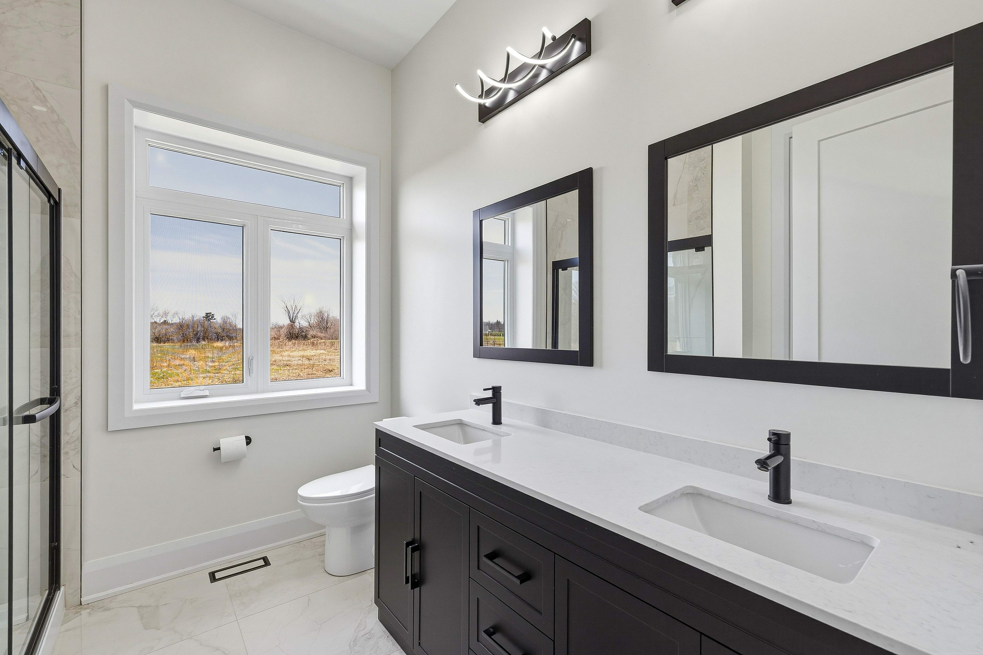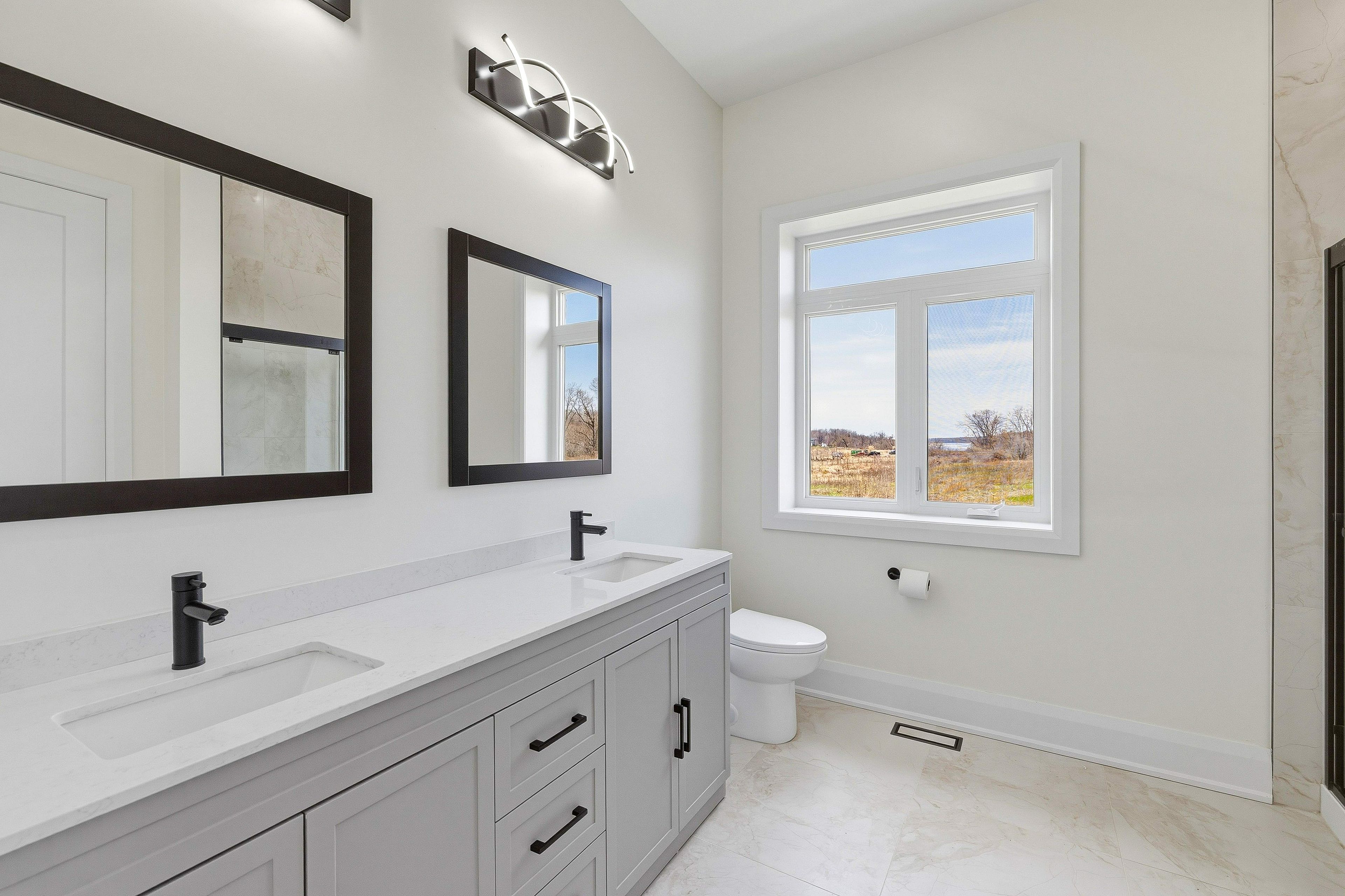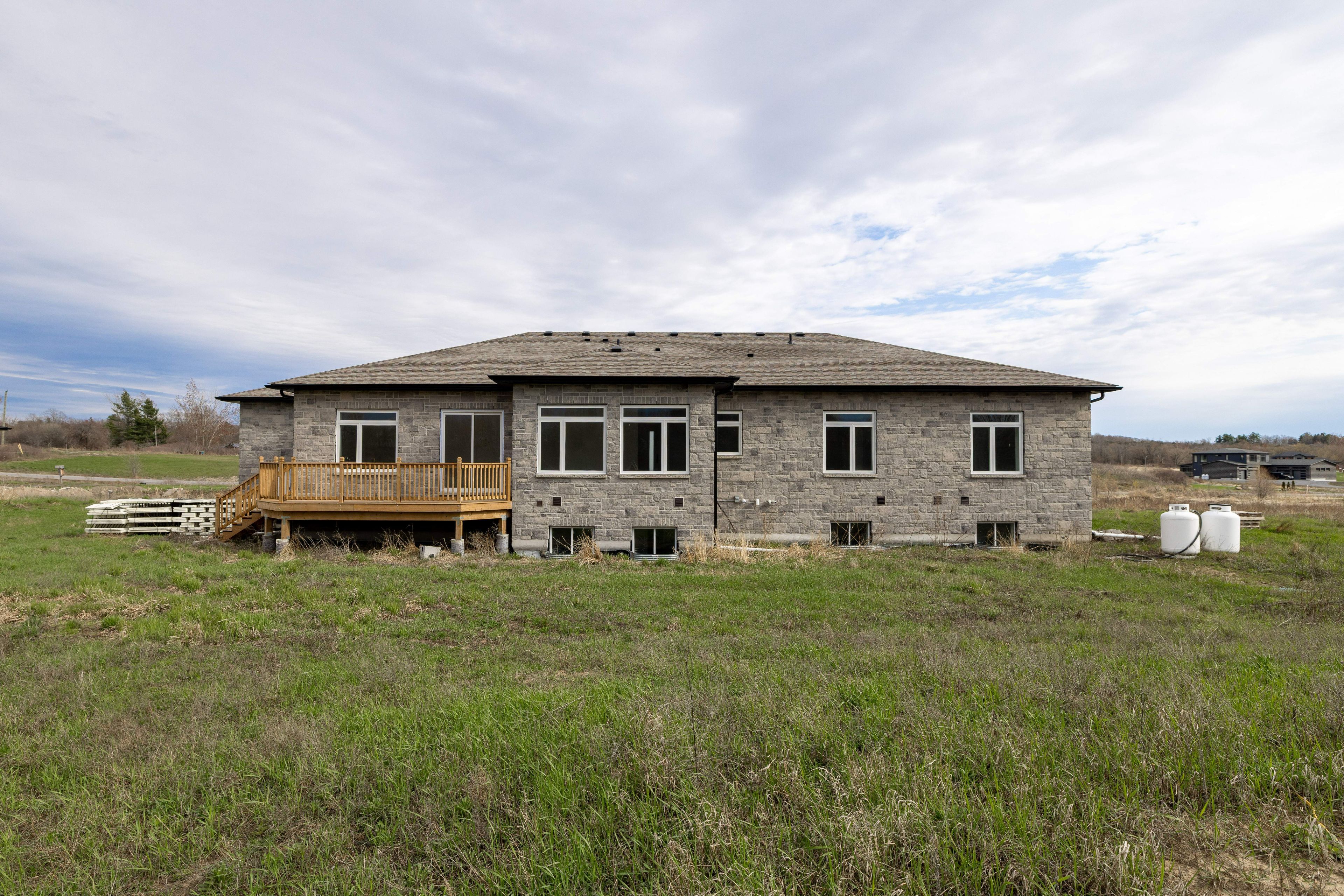 Located in gibraltar bay estates, one of kingston's newest waterfront estate communities, this brand-new elevated bungalow sits on just over 2 acres with frontage on the rideau canal. The main floor layout offers over 2700sqft with 3 bedrooms and 2. 5 baths including an ensuite and walk-in closet in the primary bedroom, 10ft ceilings throughout with many pot lights, a large kitchen open to an eating area and family room overlooking the backyard, a separate dining room, a living room and laundry room finish off the main floor. The bright and spacious lower level is framed and drywalled, featuring 2 more three-piece bathrooms, additional bedrooms, a rec room and more living space. Other features include quartz counters throughout, hardwood and large tiled floors(no carpet), a three-car garage, icf construction up to the roof with a full brick exterior, a deck off the kitchen, and 2 separate basement entrances, which allows for many options such as an in-law, nanny, or teenager suite. Being sold as-is where-is.