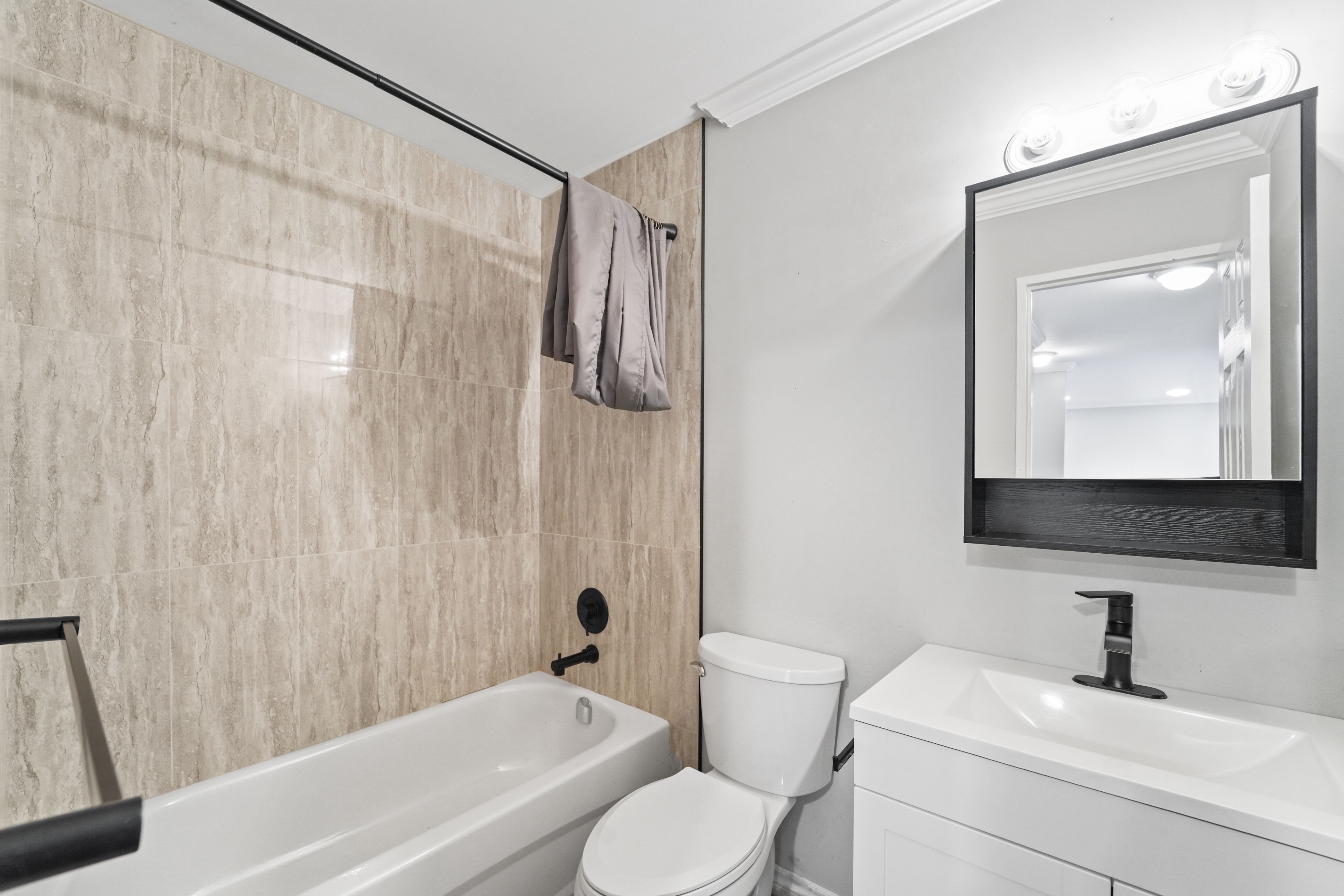 • Modern kitchen with full-size appliances for easy entertaining.