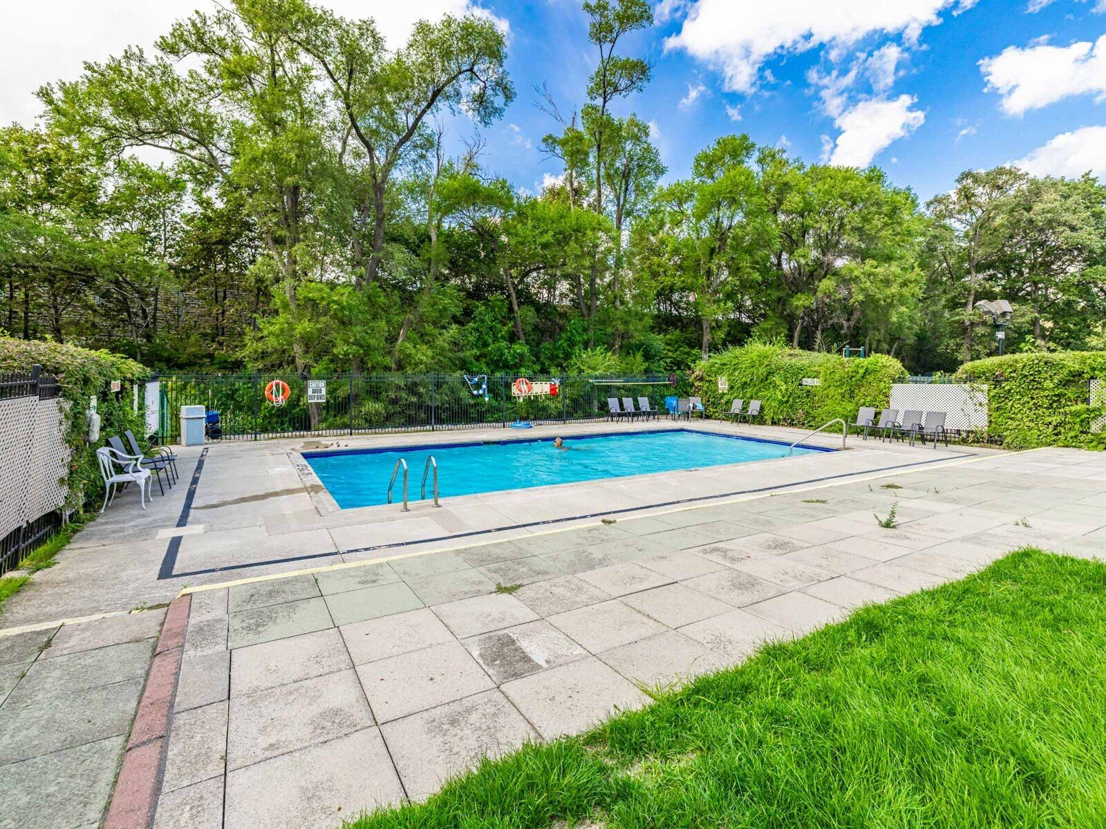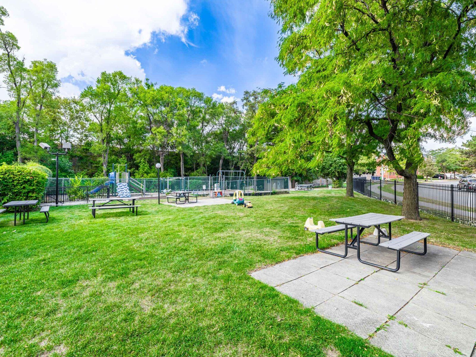 • Building features gym, outdoor pool, sauna, and playground for recreation.
