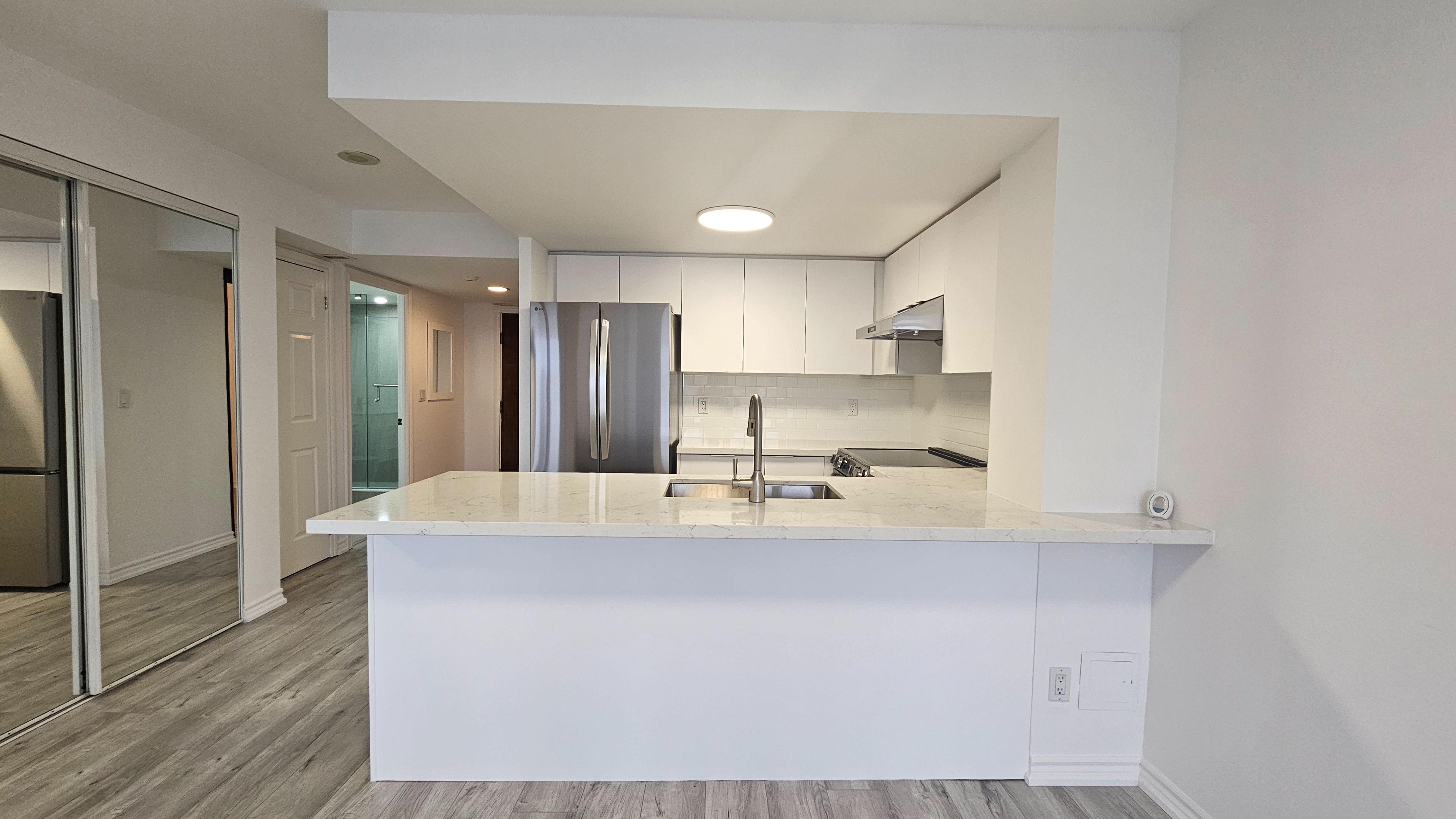 Derby tower condo for lease! 1 bedroom + den & 1 bath very spacious open concept and bright unit. All new stainless steel appliances and quartz countertops. New laminate flooring throughout. Den is very spacious and can be treated as a second bedroom with sliding door. 1 oriented neighborhood with parks and greenery. Convenient location with minutes walk to public transportation, restaurants and more!