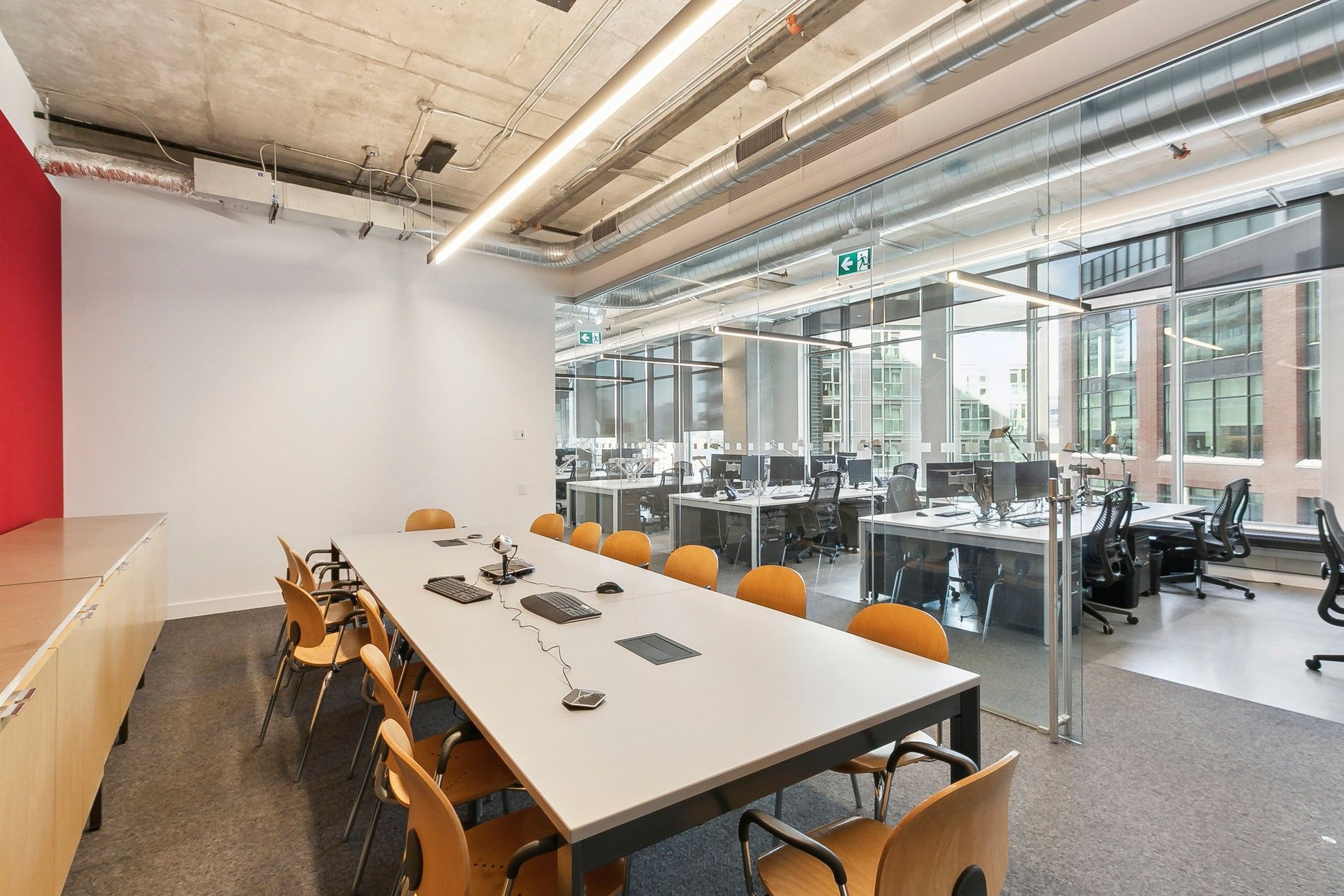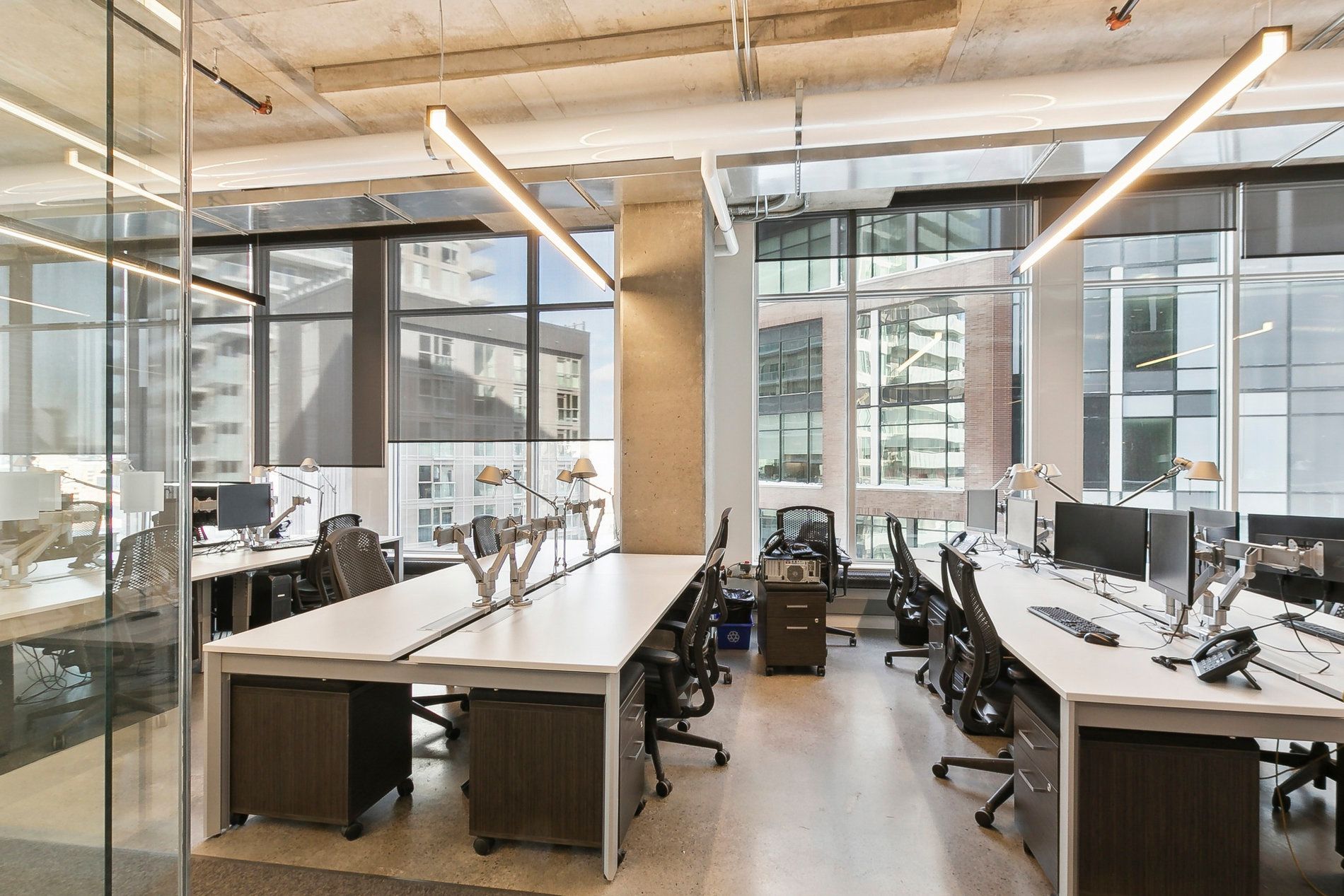 A portion of the 7th floor, fully built-out and furnished with elevator exposure. Features exposed columns, ceilings and ducting, glass partitions, high-end finishes and window throughout. Layout consists of an open area with room for approximately 40 workstations, four private office/call rooms and a boardroom along the interior, a foyer and kitchenette. Property highlight include: underground parking, bike storage, concierge, change rooms and shower facilities, networking lounges, high-tech boardrooms, outdoor terraces with lake views and "the yard" - a laneway of restaurants and shops nestled in the heart of the complex. Term expires january 26, 2029.