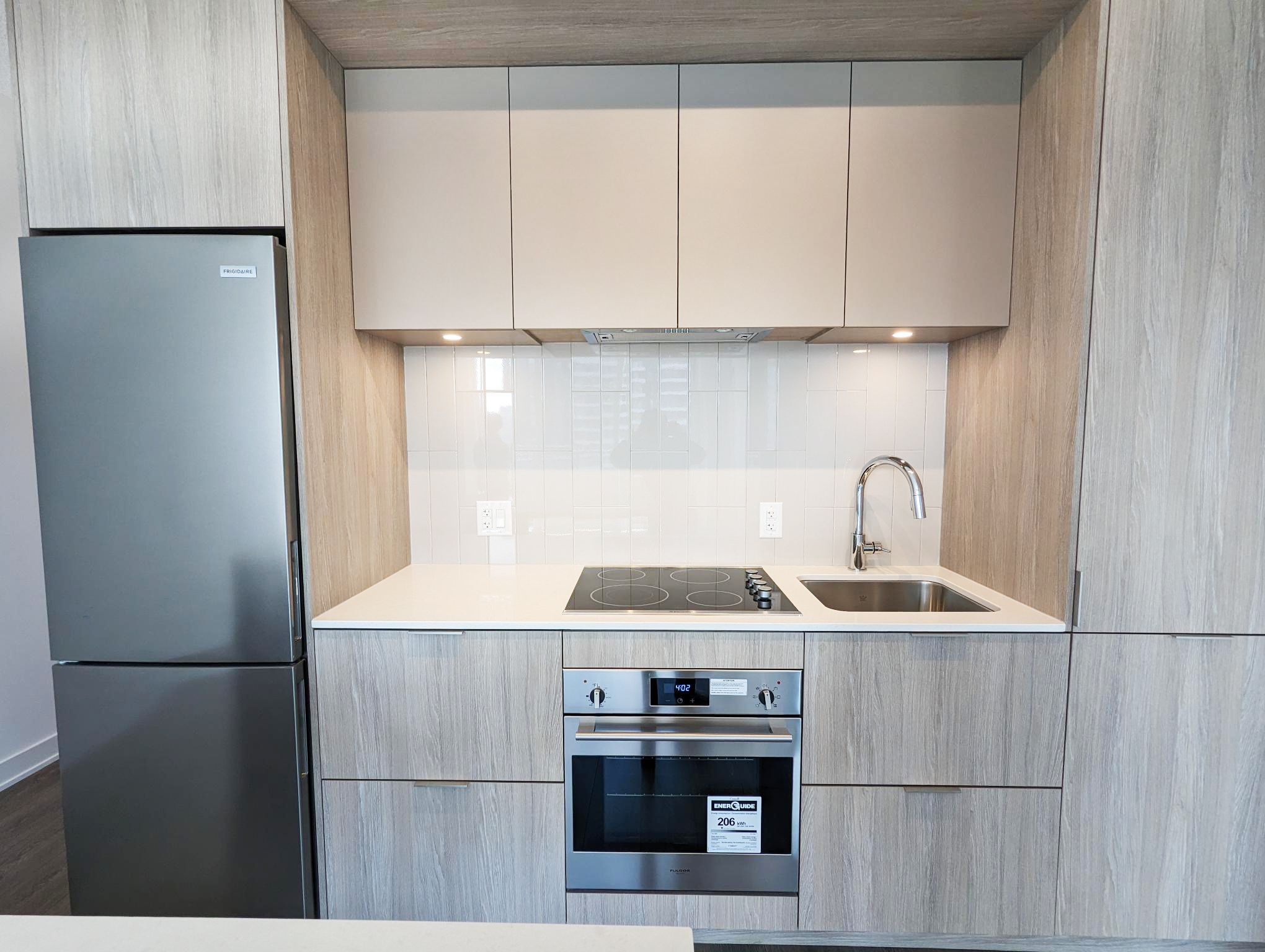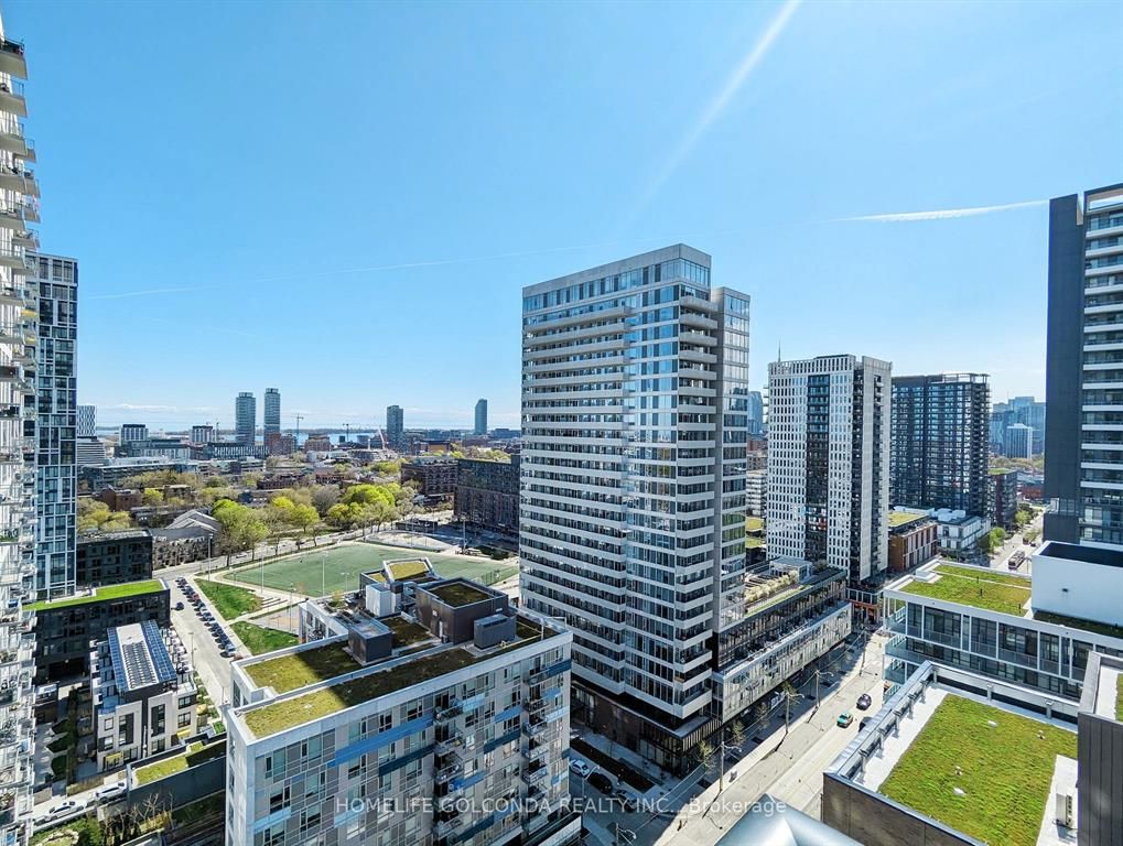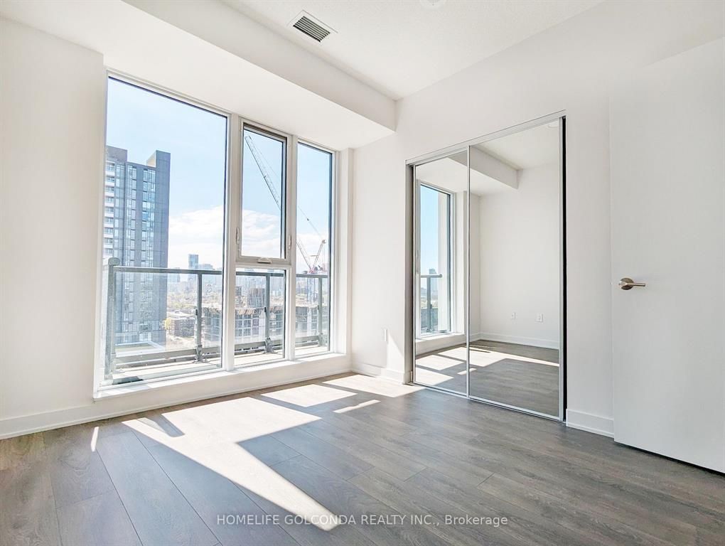 Welcome to artwork condo by daniels! This bright and well-designed 1-bedroom unit features an efficient open-concept layout with 9 ft ceilings and floor-to-ceiling windows, bringing in plenty of natural light. Enjoy unobstructed west-facing views of vibrant toronto from the spacious private balcony. The modern kitchen is equipped with quartz countertops, a center island, and stainless steel appliances - perfect for everyday living and entertaining. Conveniently located just steps to ttc, and minutes to the dvp, distillery district, tmu, parks, aquatic/community centre, and don river trail. Building amenities include 24-hour concierge, gym, co-working space, party room, rooftop terrace, and more. Ideal for professionals or students.