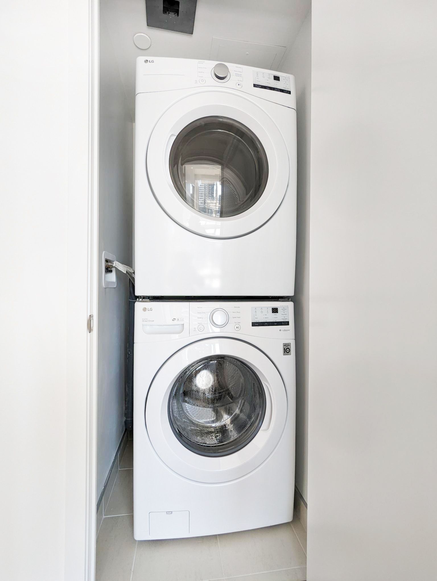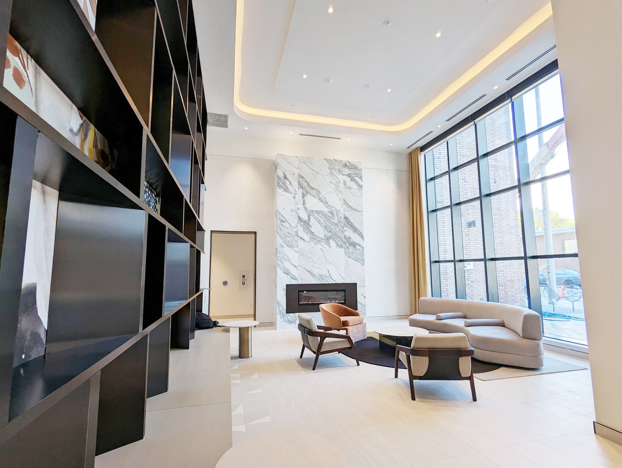 • Building offers 24-hour concierge, gym, and rooftop terrace.