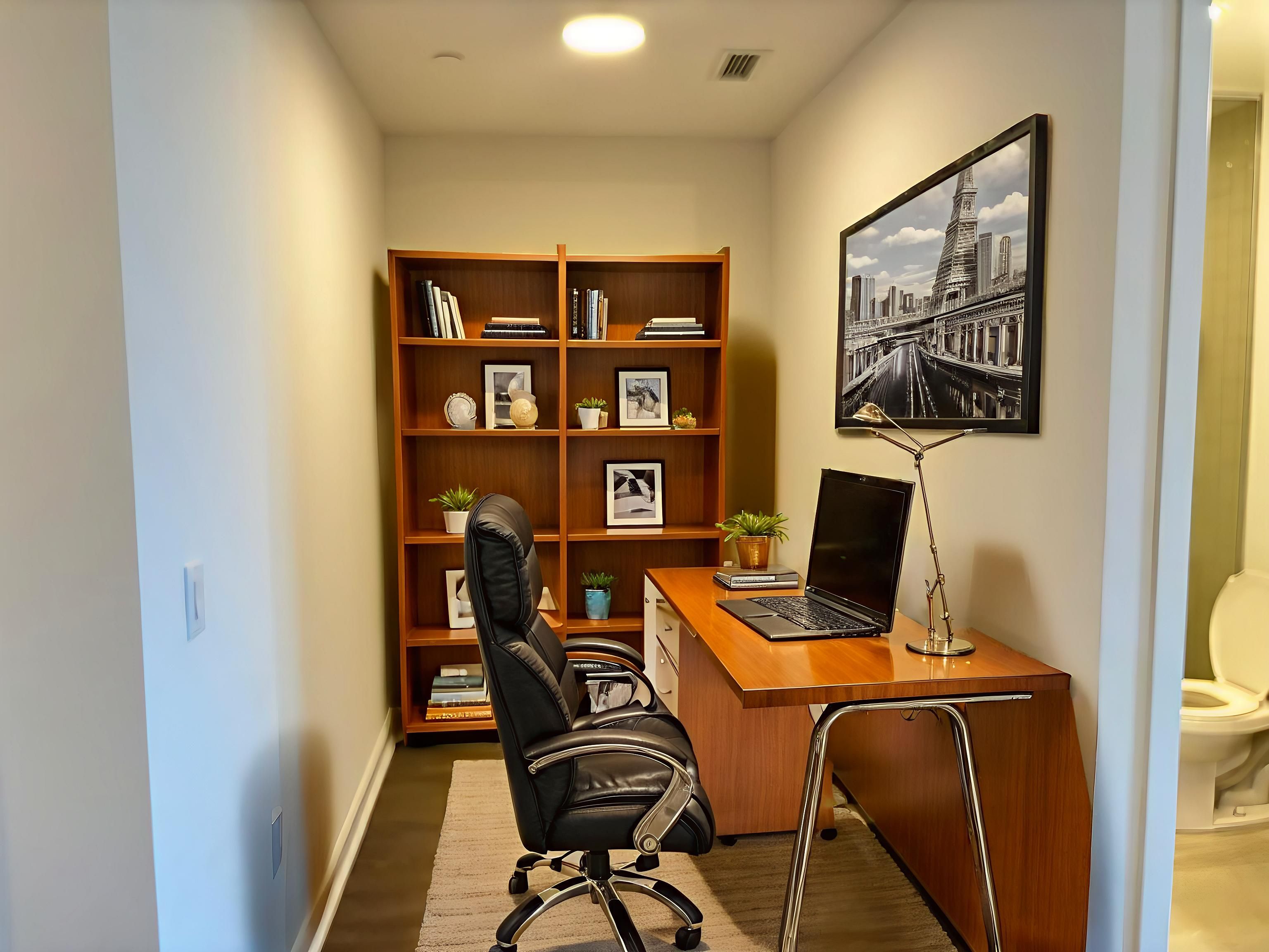 • Stylish kitchen with built-in appliances and quartz countertops.