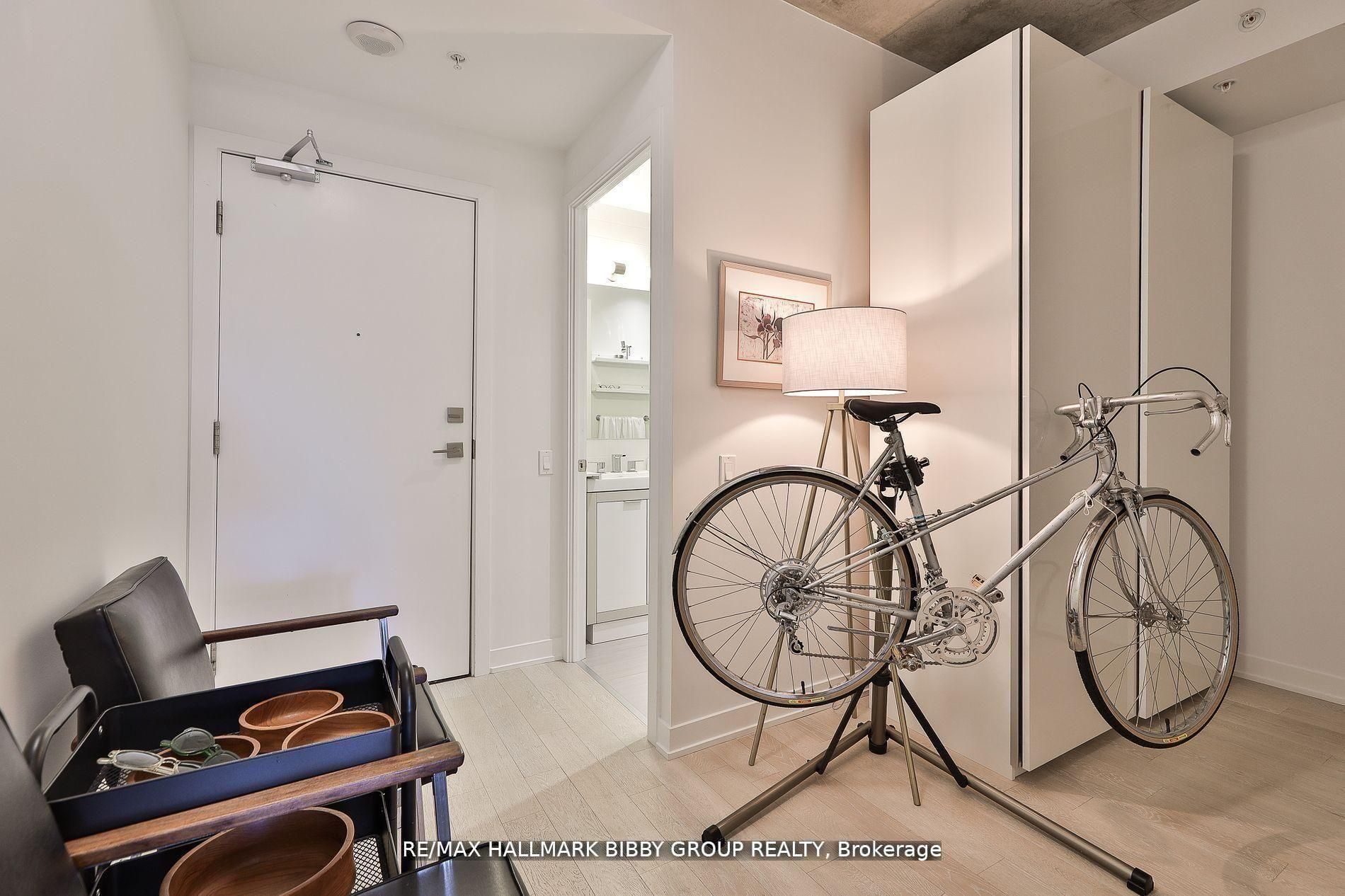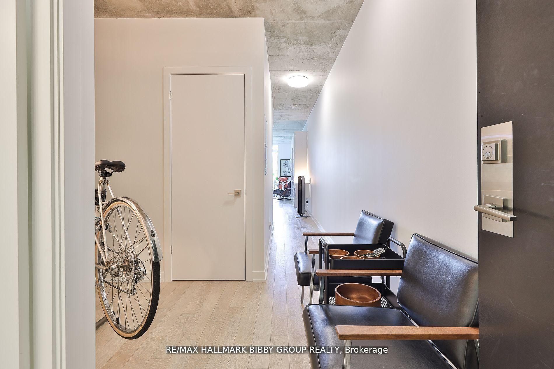 A unique opportunity to own in one of toronto's most tastefully designed buildings - it lofts! This ingeniously designed, sun-drenched, one-bedroom + den residence delivers comfort, privacy as well as an artful aesthetic with white-oak flooring and exposed concrete ceilings. The living & dining room are designed for seamless entertaining and provide a comfortable lifestyle. The modern kitchen features top of the line appliances including a gas range & large center island. The spacious primary bedroom retreat includes a large double closet. The convenient den is perfect for those in need of a private home office or studio space. The tranquil juliette balcony provides dramatic sunsets & exceptional tree-lined residential views! Steps to shopping & restaurants of little italy, dundas west & college street. Easy access to fred hamilton, george ben & trinity bellwood parks. Easy access to west-end ymca.